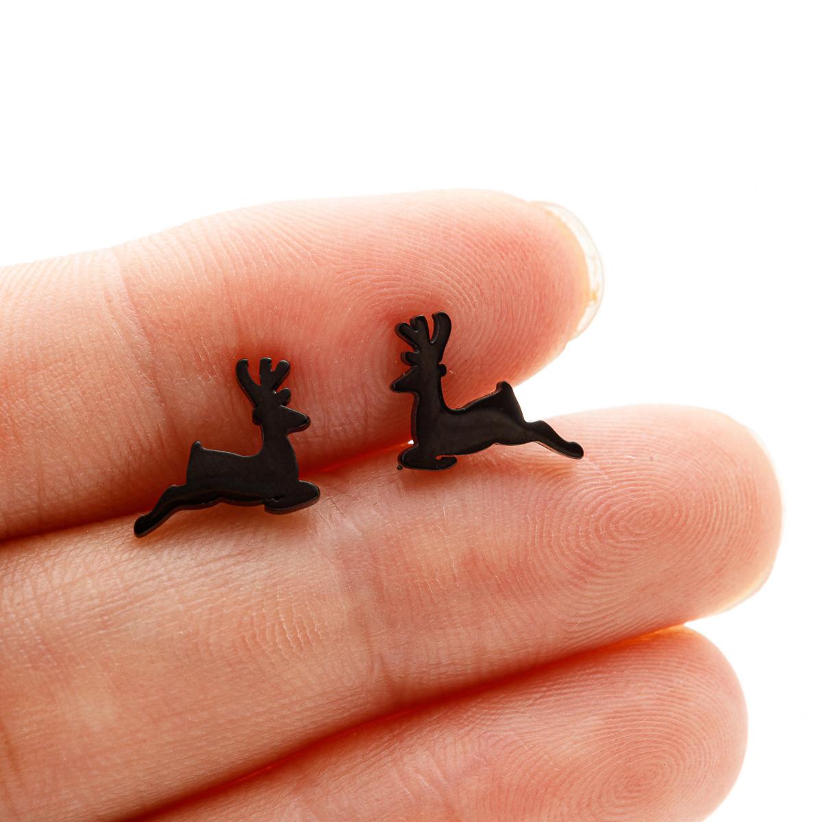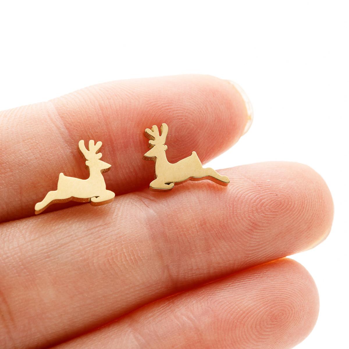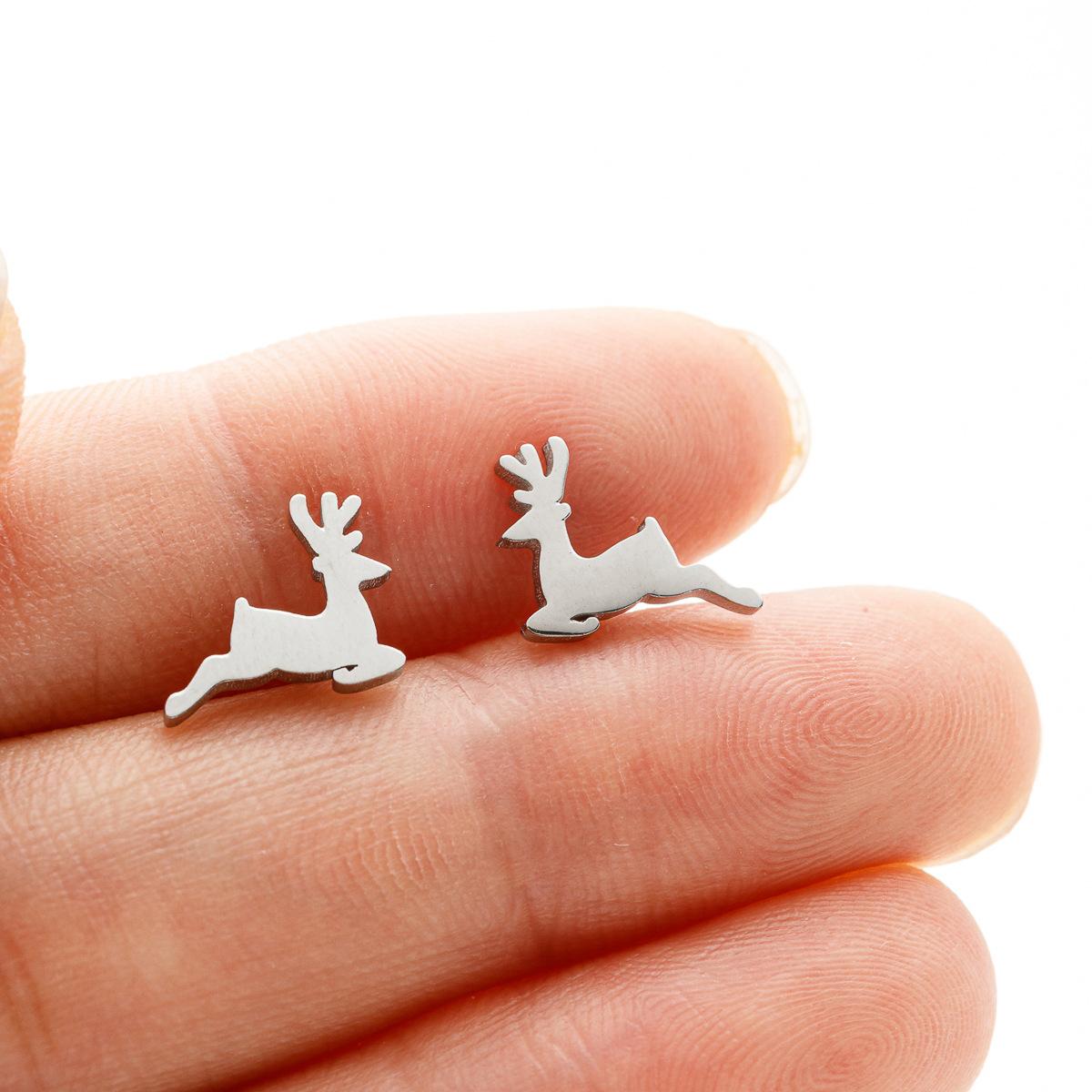 Pendientes navideños transfronterizos de acero inoxidable con diseño de alce, pequeños pendientes de animales para mujer, disponibles en stock.