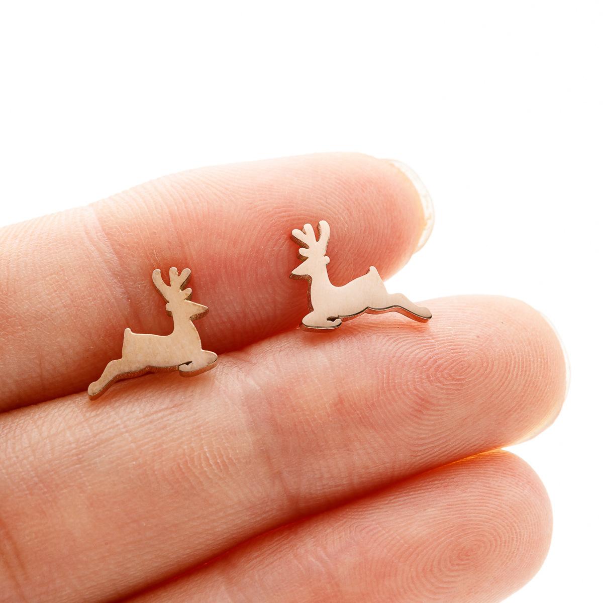 Compra Pendientes navideños transfronterizos de acero inoxidable con diseño de alce, pequeños pendientes de animales para mujer, disponibles en stock. al por mayor en Joom.pro