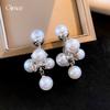 Pendientes de aguja plateada, ligeros, de lujo, retro, de alta gama, geométricos, cuadrados, sencillos, elegantes y exquisitos, con perlas de diamantes.