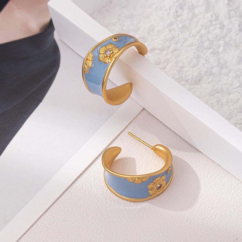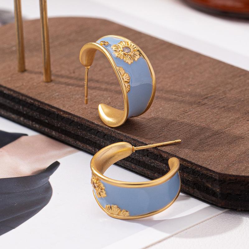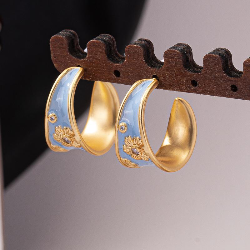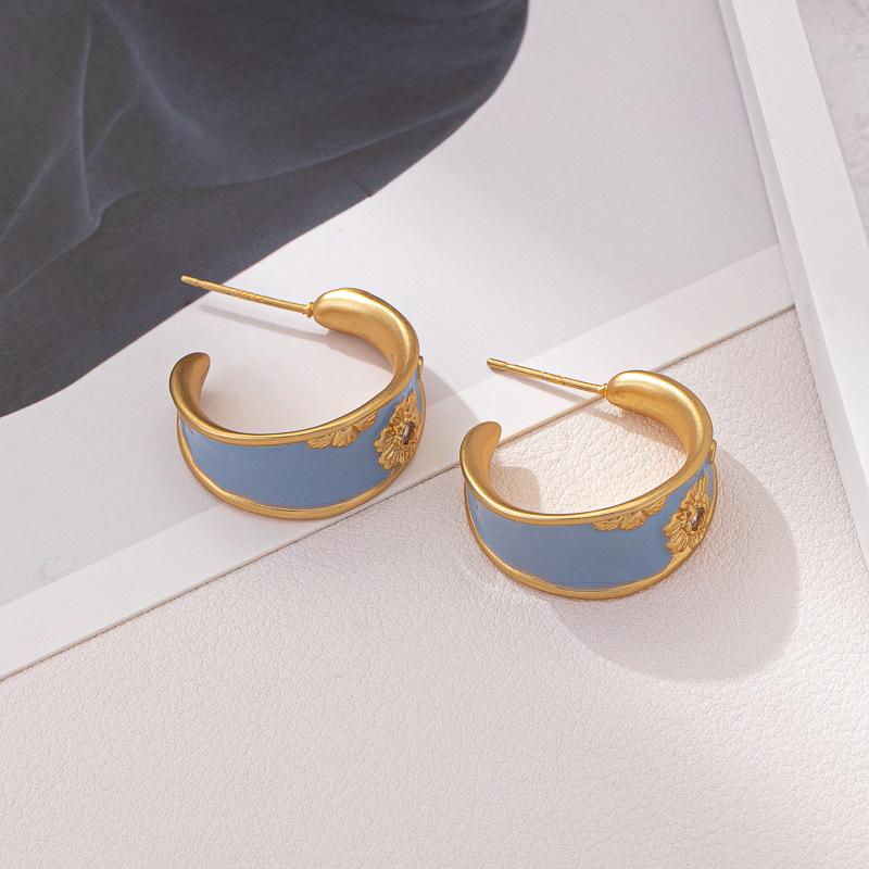 Compra Pendientes de Aguja de Plata S925 Esmalte Azul Cielo con Goteo de Glaseado Pendientes Vintage con Atmósfera de Margarita Pendientes en Forma de C Pendientes de Lujo Ligero para Mujer al por mayor en Joom.pro