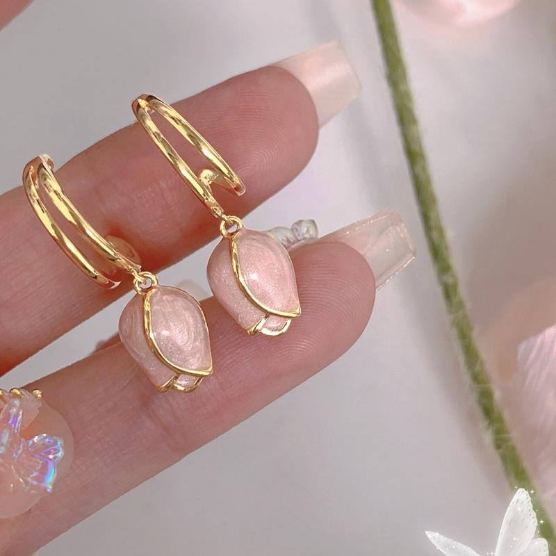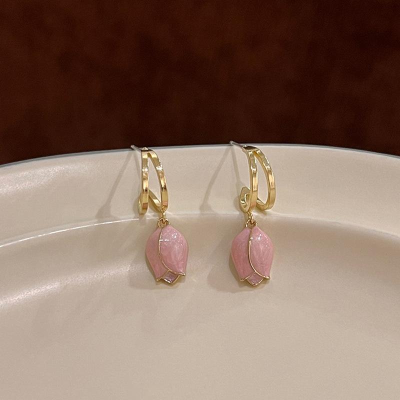 @ Oferta Especial Corea del Sur Tulipán Goteo de Aceite Pendientes Largos de Moda Nicho Franceses con Sentido de Diseño Avanzado Pendientes