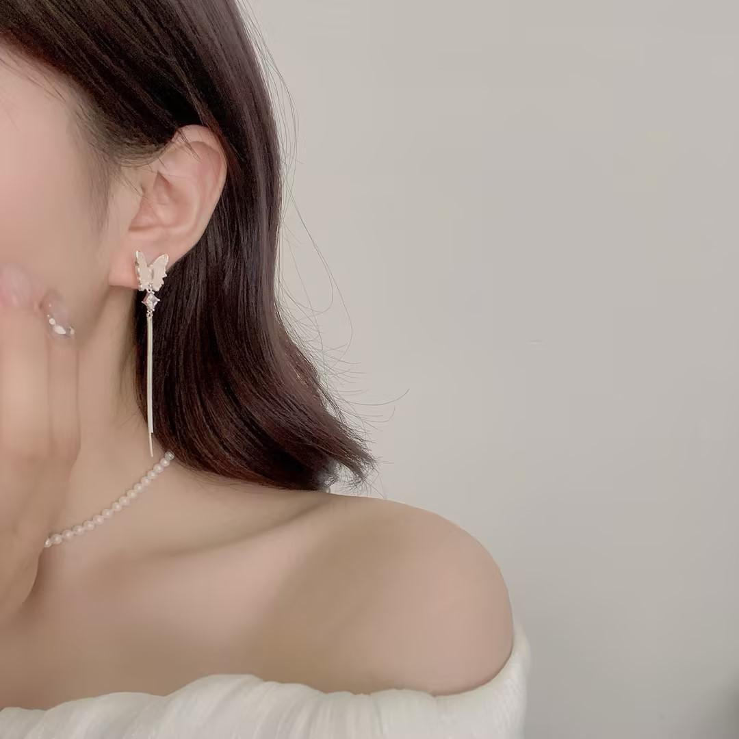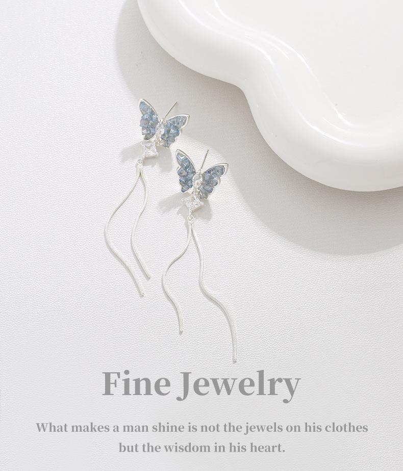 Compra Aretes de Mariposa de Cristal Estilo Hada Estilo Bosque Aretes Pequeños Frescos y Dulces Nicho de Alta Gama Aretes Largos con Borlas para Mujer al por mayor en Joom.pro
