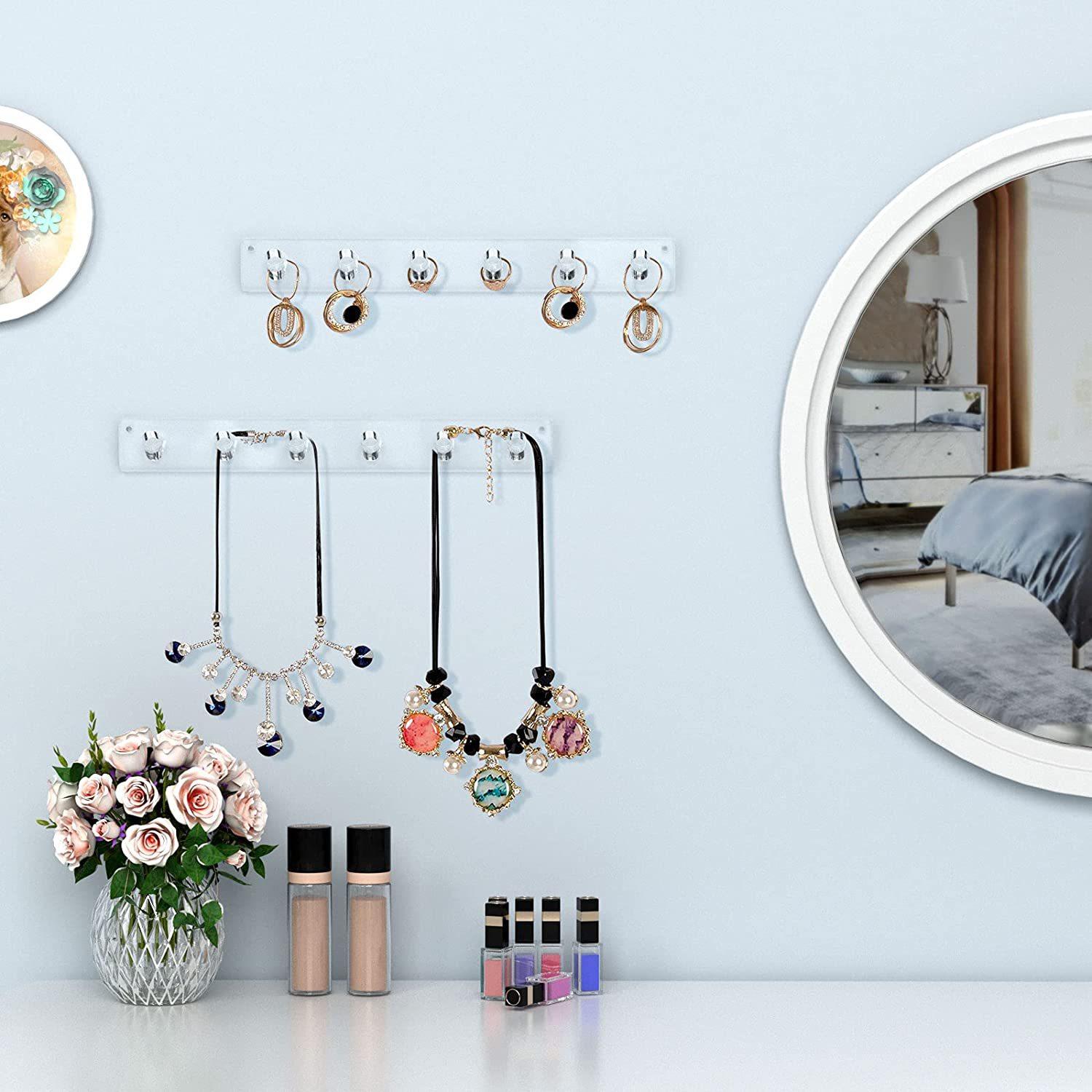 Exhibidor de Collar Acrílico Transparente Montado en la Pared con 6 Ganchos para Colgar Joyería Pulsera Estante de Almacenamiento Fábrica