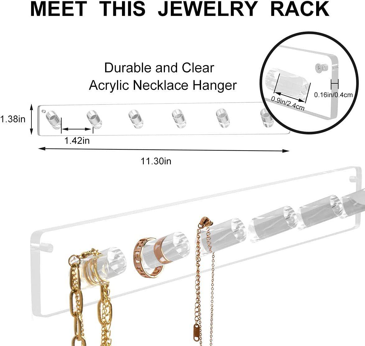 Este es un excelente collar de almacenamiento de joyería acrílico que puede resaltar su joyería y hacerla más sofisticada. Puede almacenar collares, pulseras, llaves, diademas, anillos y más.
