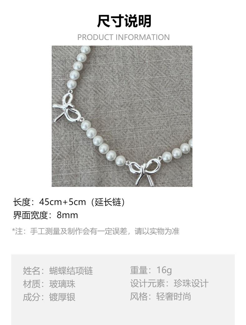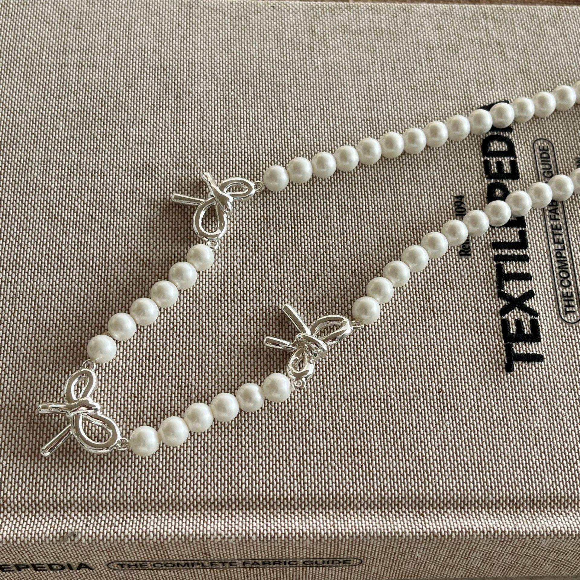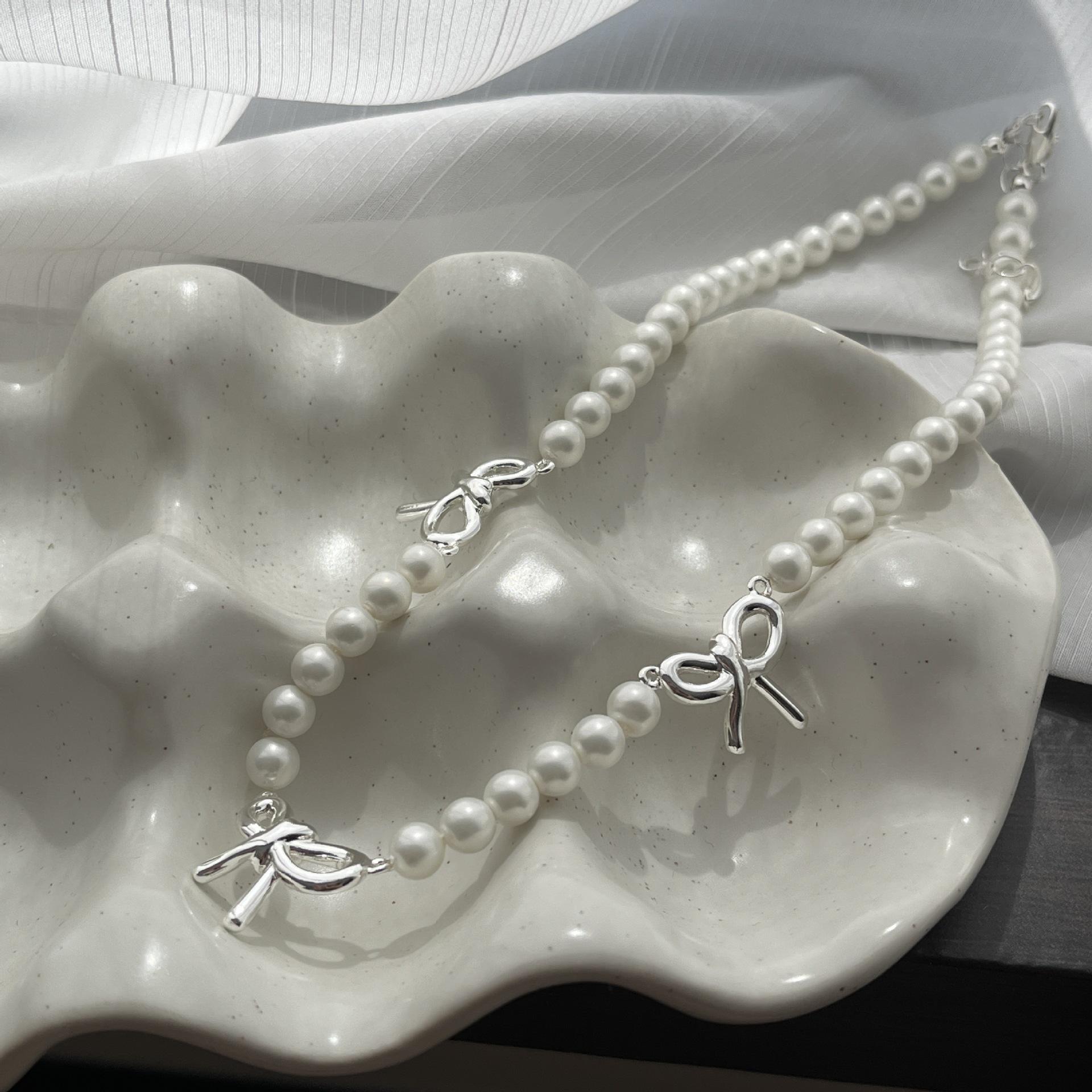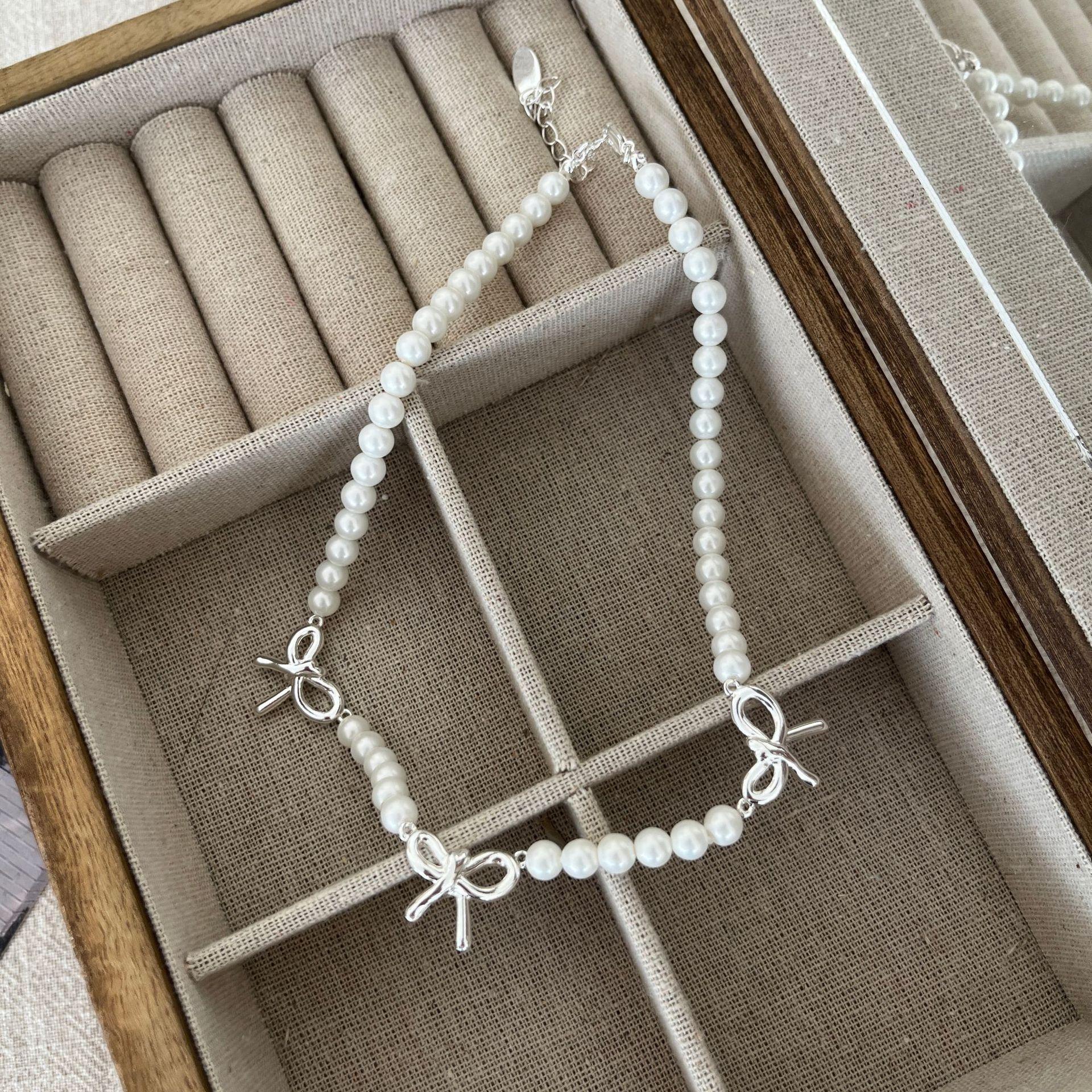 Collar de Perlas Nicho Elegante de Lujo Ligero de Alta Gama con Lazo Plateado para Mujer Verano 2025 Nuevo Collar Cadena Clavícula