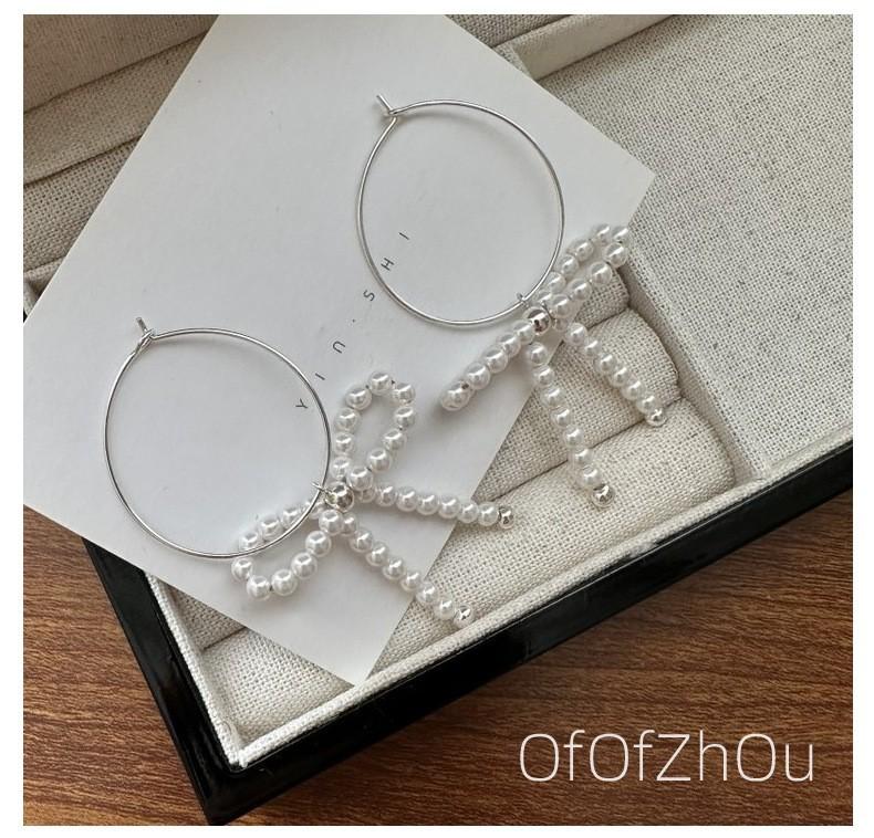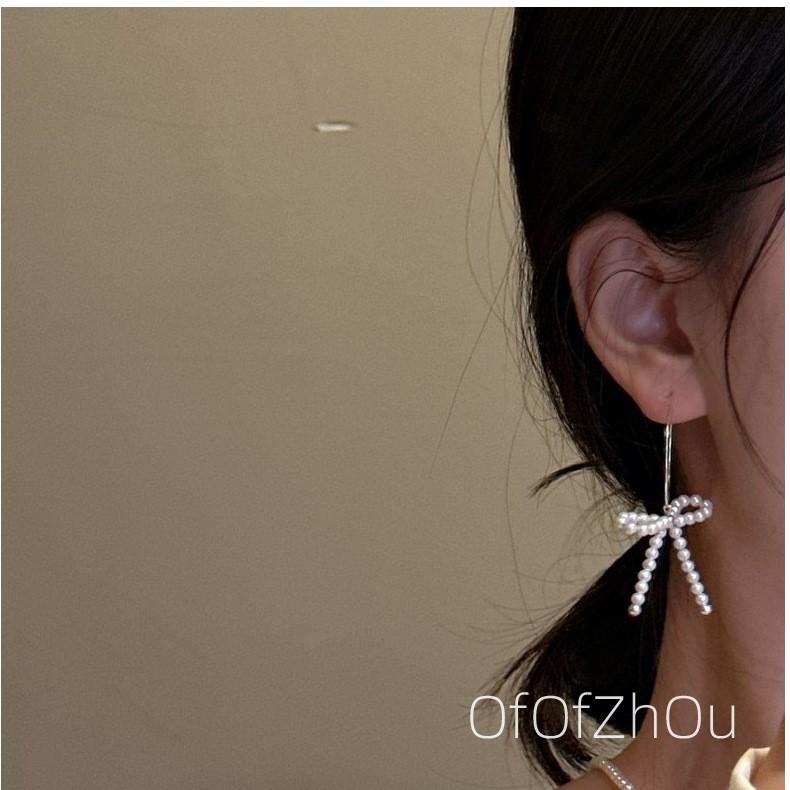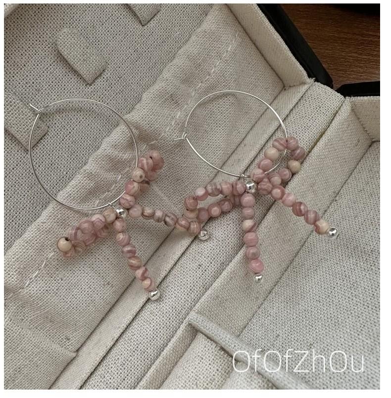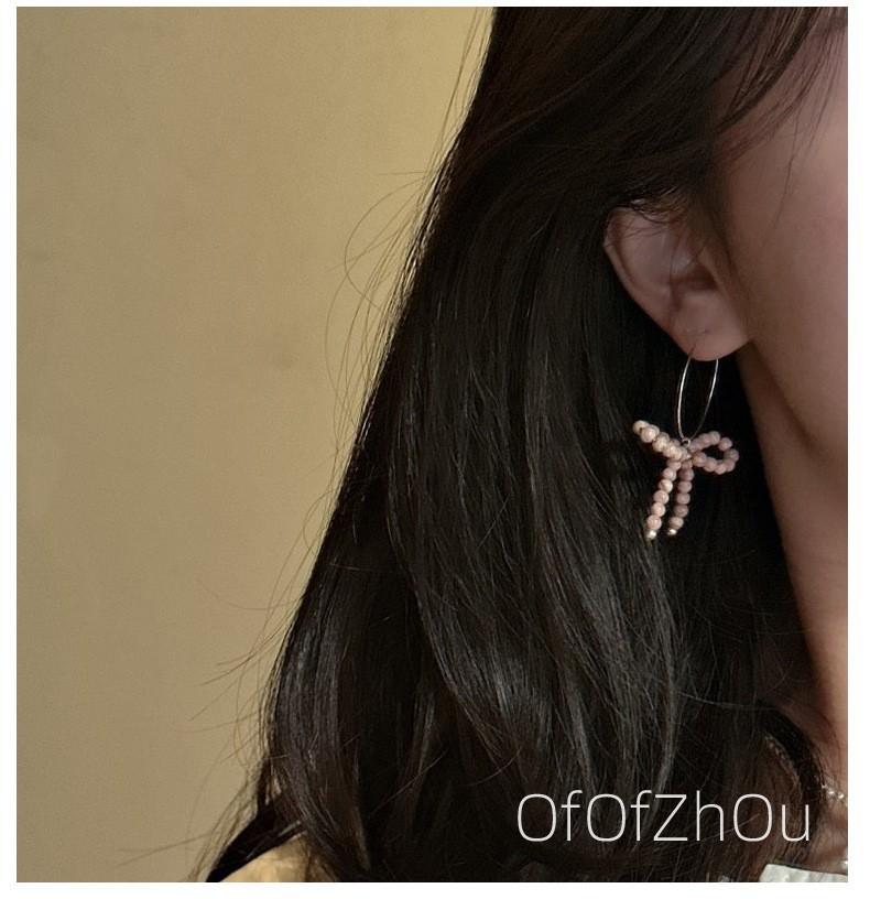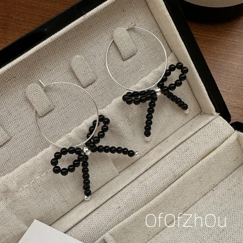 Pendientes con cuentas de lazo y diseño de nicho en plata esterlina S925 de Zhou De, versión coreana, dulces y modernos, joyería para las orejas INS