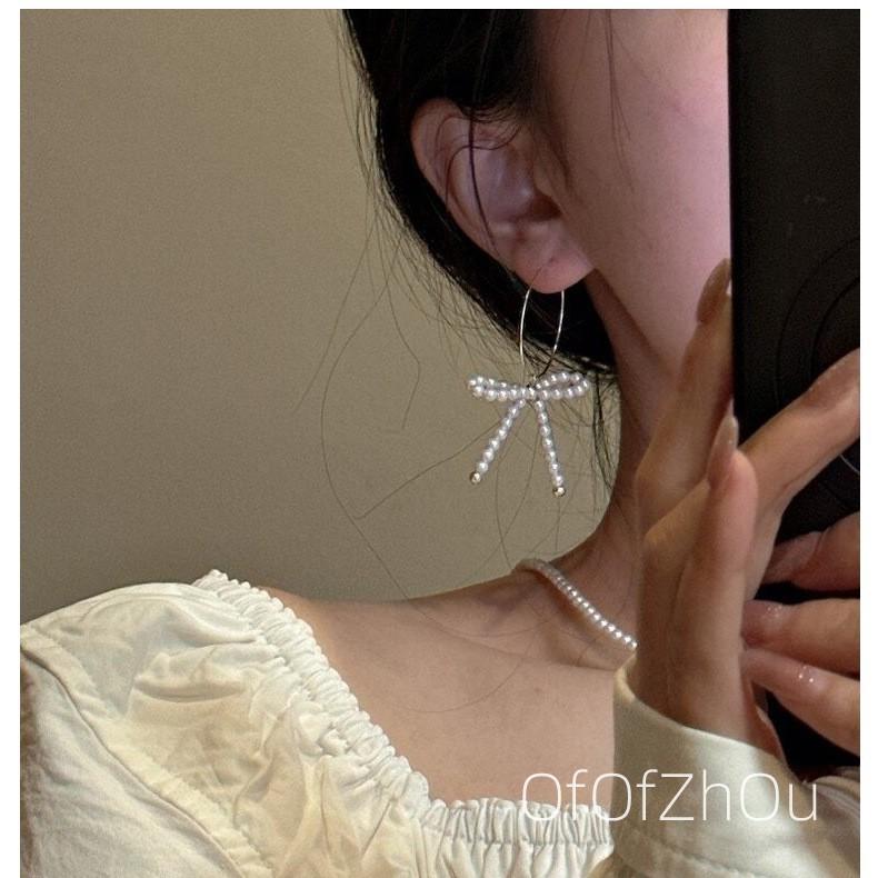 Pendientes de estilo coreano con diseño de nicho y lazo, con cuentas, bonitos y modernos, para mujer.