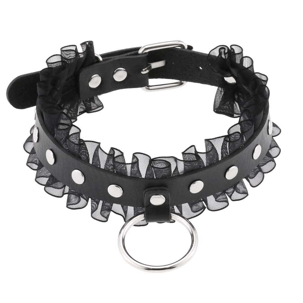 Collar de Encaje con Remaches Diablo para Mujer, Correa para el Cuello, Gargantilla, Cadena para el Cuello, Punk, Lolita Pura
