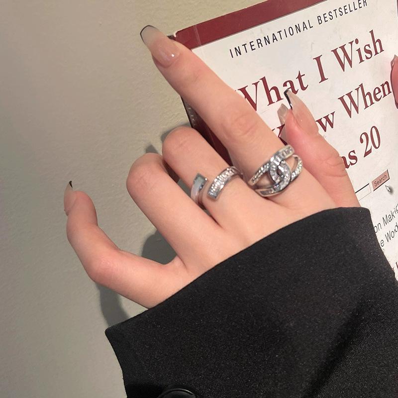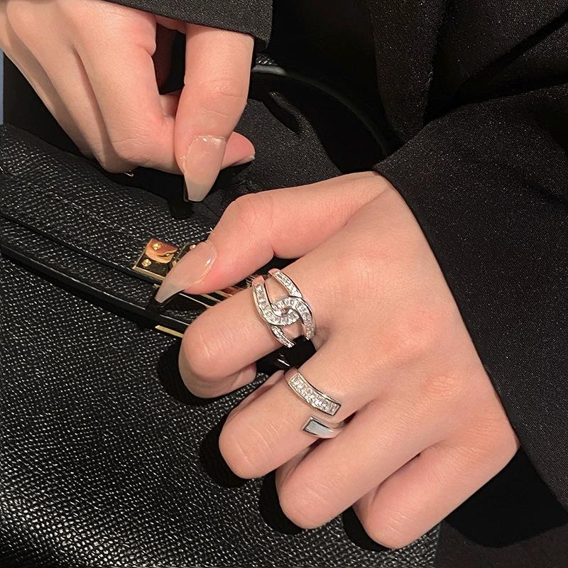 Corea del Sur Temperamento Celebridad de Internet Lujo Ligero Anillo de Diamantes Flash para Mujer 2024 Nueva Moda Personalidad Alto Sentido Anillo para Dedo Índice