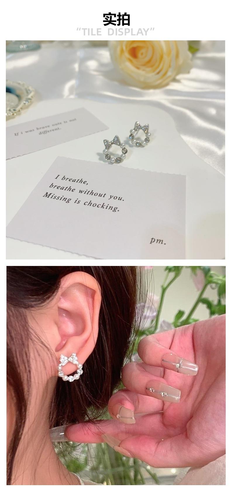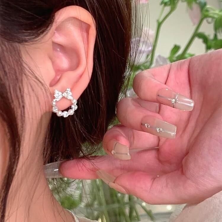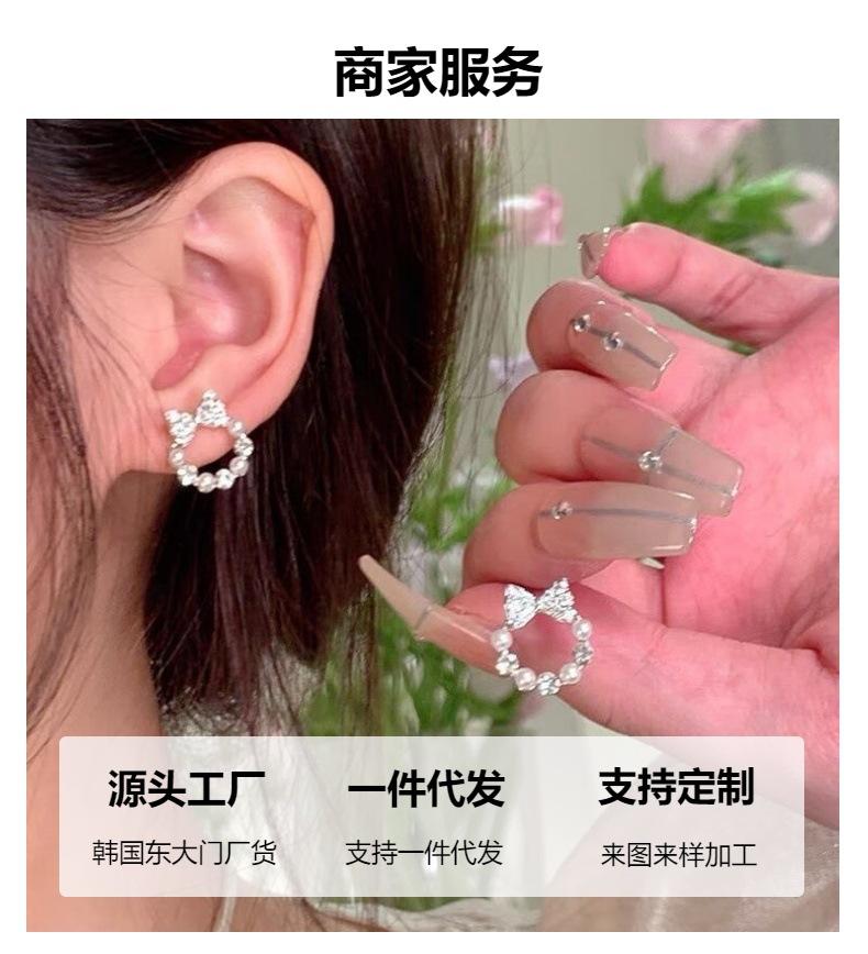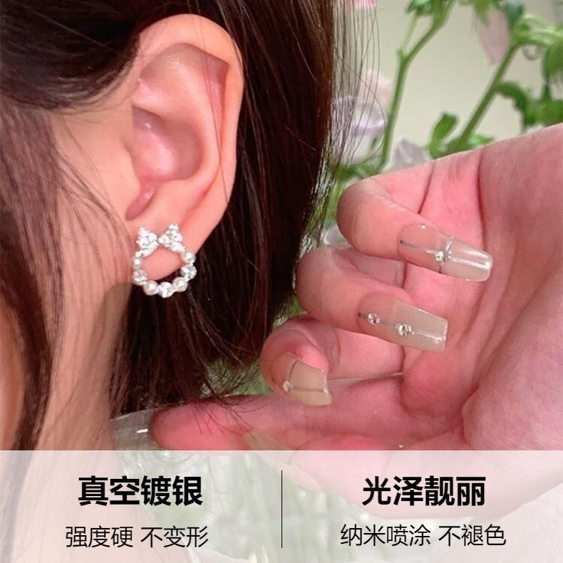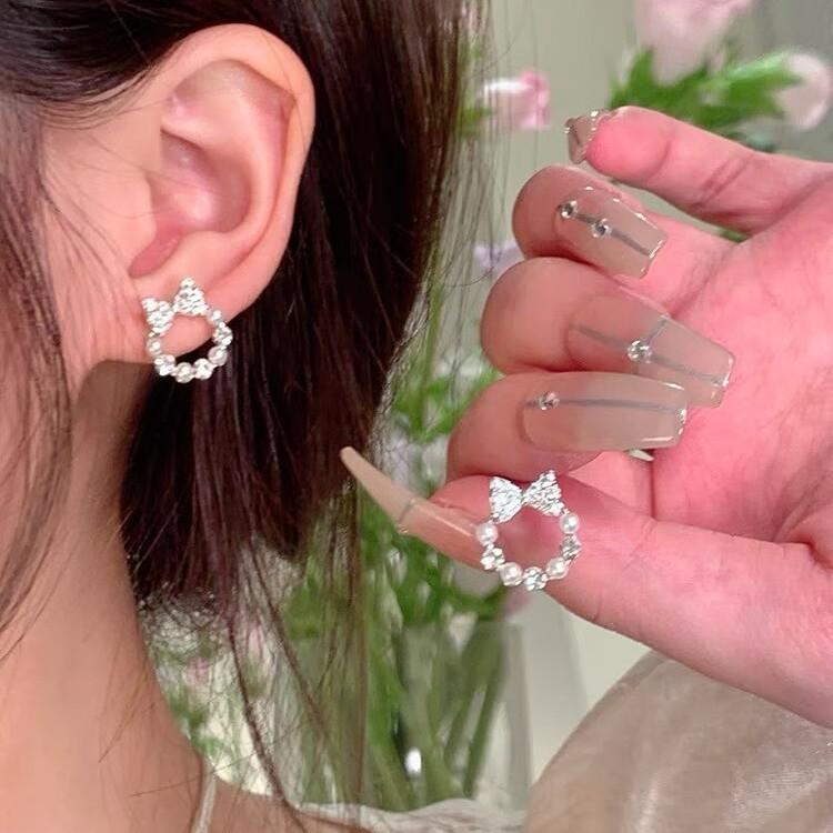 Pendientes de lazo de perla explosiva, diseño de nicho, ligeros y lujosos, con incrustaciones de diamantes y circonitas, elegantes, para mujer, 2024