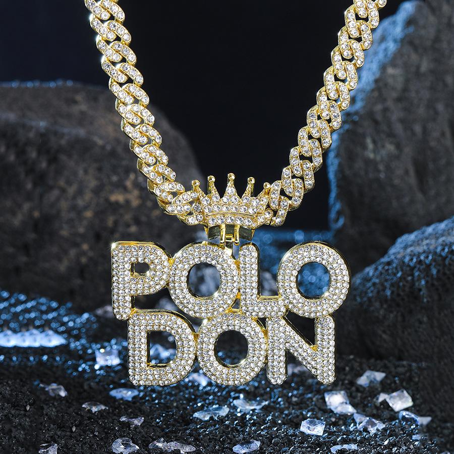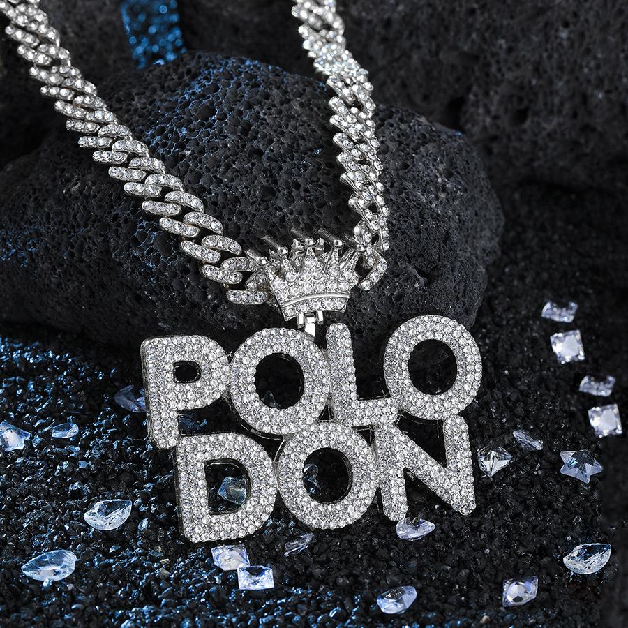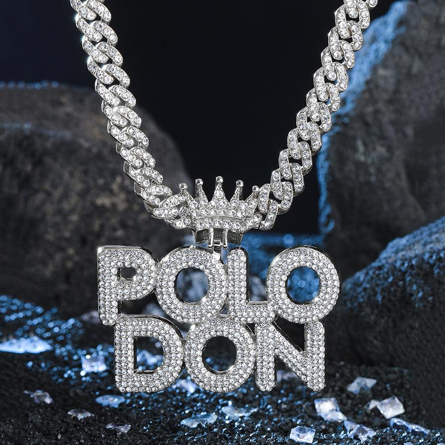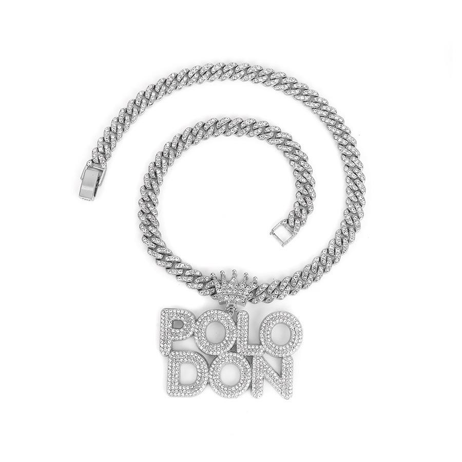 Colgante de Polodón Plateado con Letra Personalizada Aleación Diamante Accesorios Cubanos Collar Hip-Hop Más Vendido Europeo y Americano para Hombre
