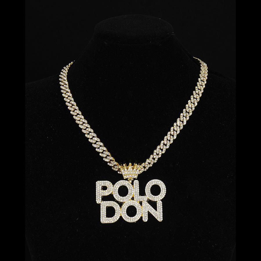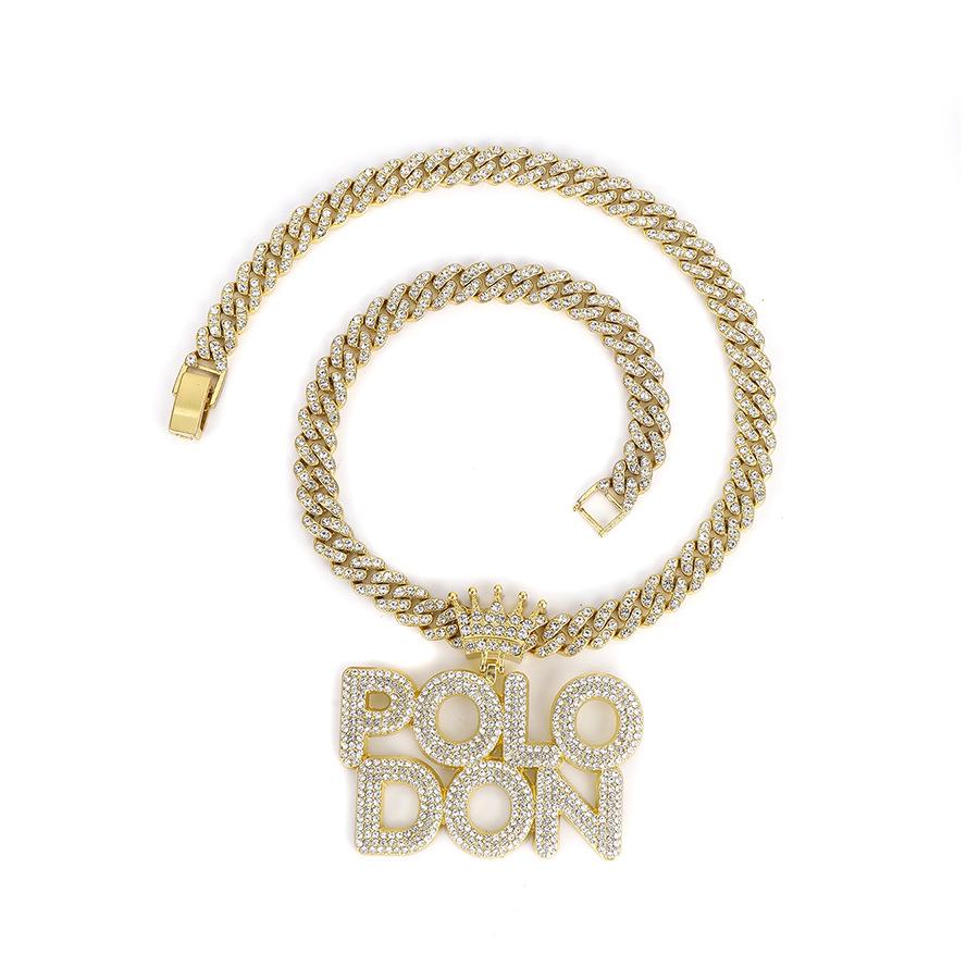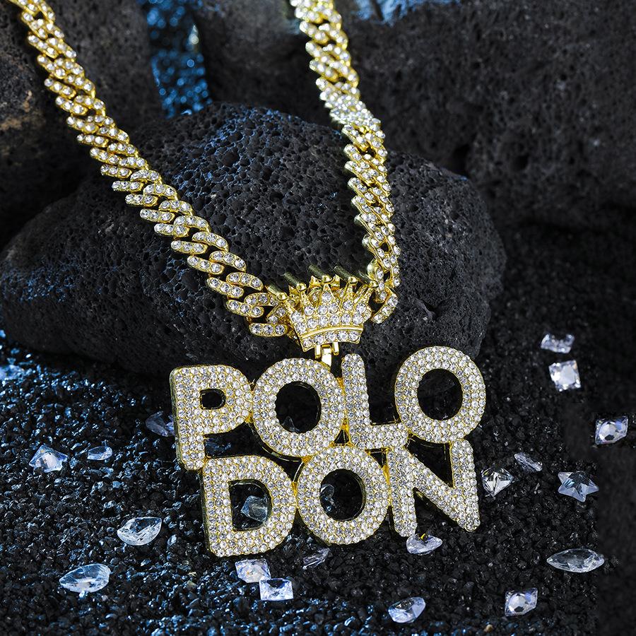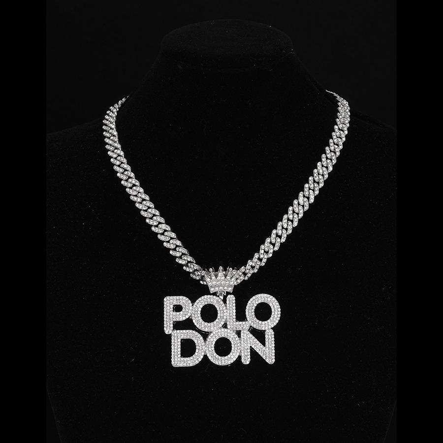 Colgante de Polodón Plateado con Letra Personalizada Aleación Diamante Accesorios Cubanos Collar Hip-Hop Más Vendido Europeo y Americano para Hombre