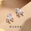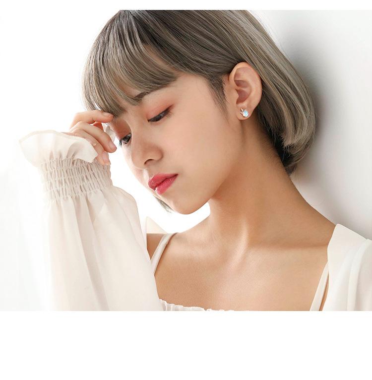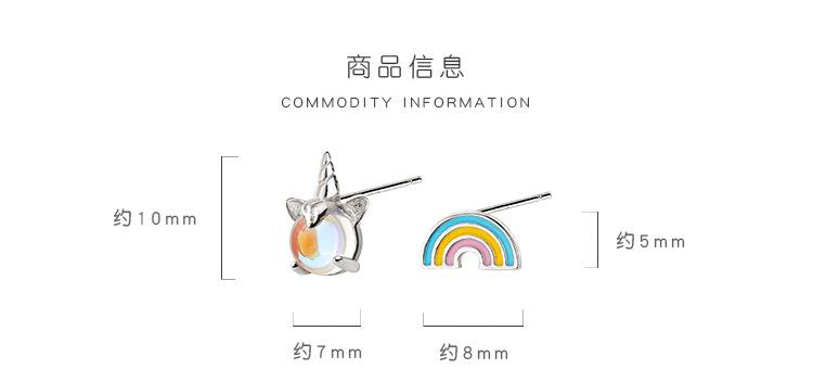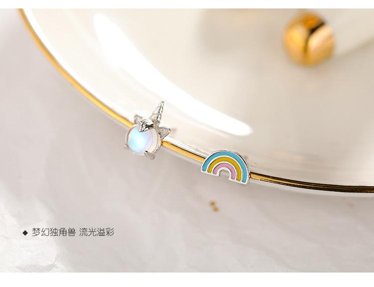 Pendientes de botón de plata de ley s925 de unicornio arcoíris, diseño asimétrico creativo, exquisitos pendientes de piedra lunar, regalo para novias