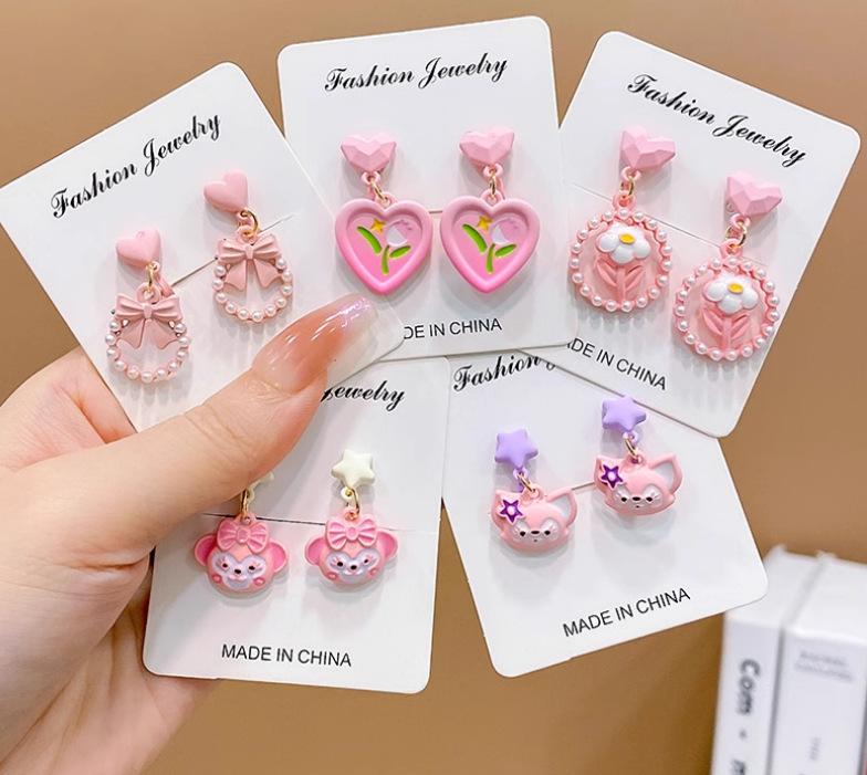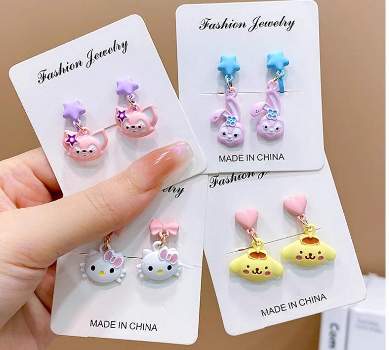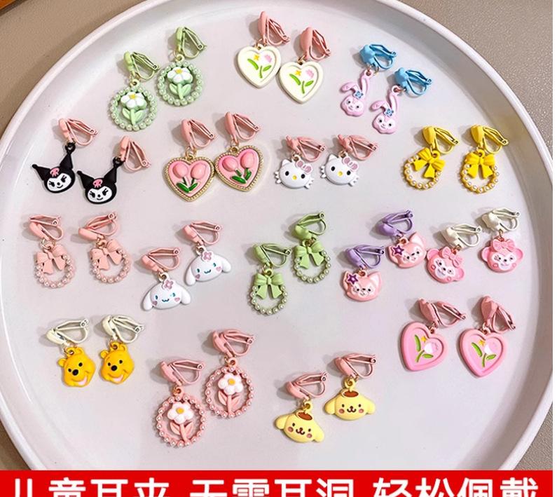 Accesorios para niños, lindos pendientes de clip para orejas de dibujos animados para mujer, joyería de verano para niñas, dulces pendientes a prueba de dolor