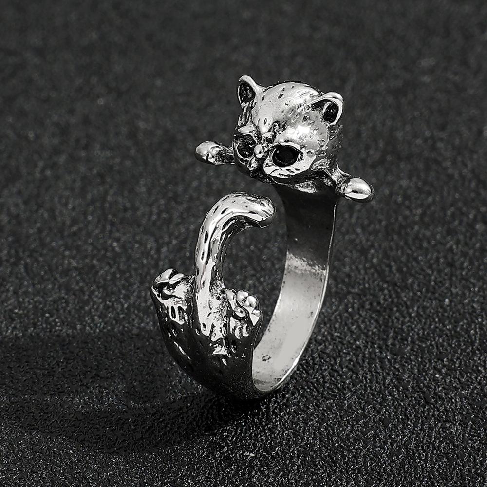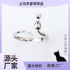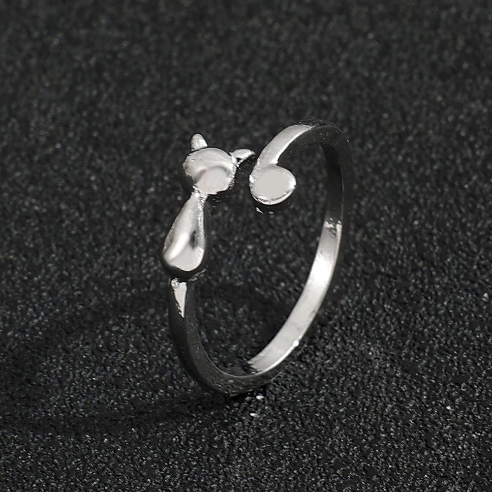 Explosiones Transfronterizas Anillo de Gatito Simple y Lindo Anillo Abierto de Orejas de Gato para Mujer Joyería