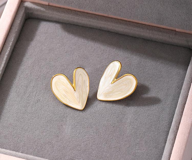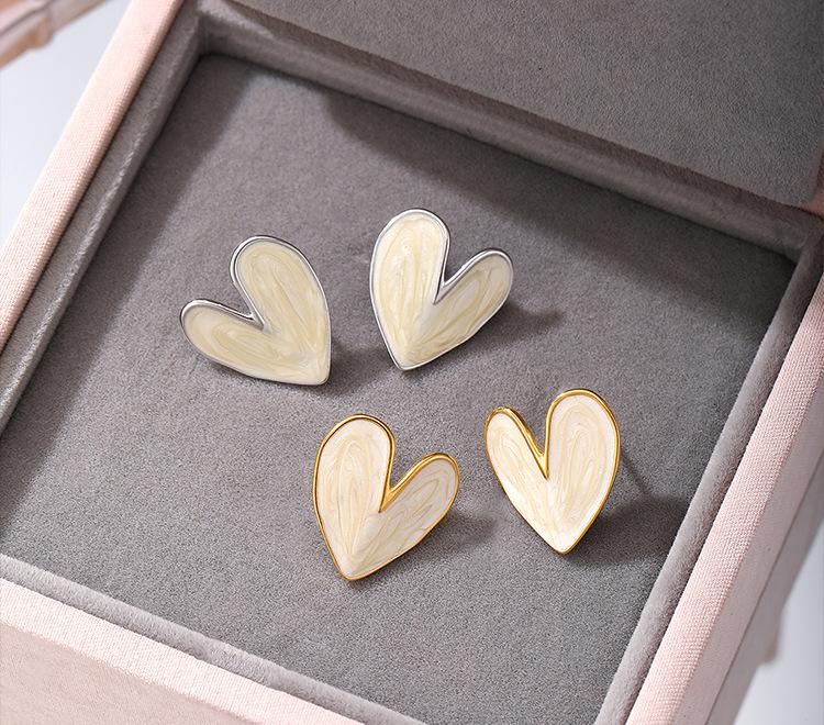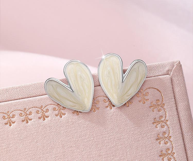 Hee goo E2027 aretes de gota de plata S925 con esmalte de amor para mujer, aretes franceses de alta gama estilo ins, aretes de personalidad estilo coreano
