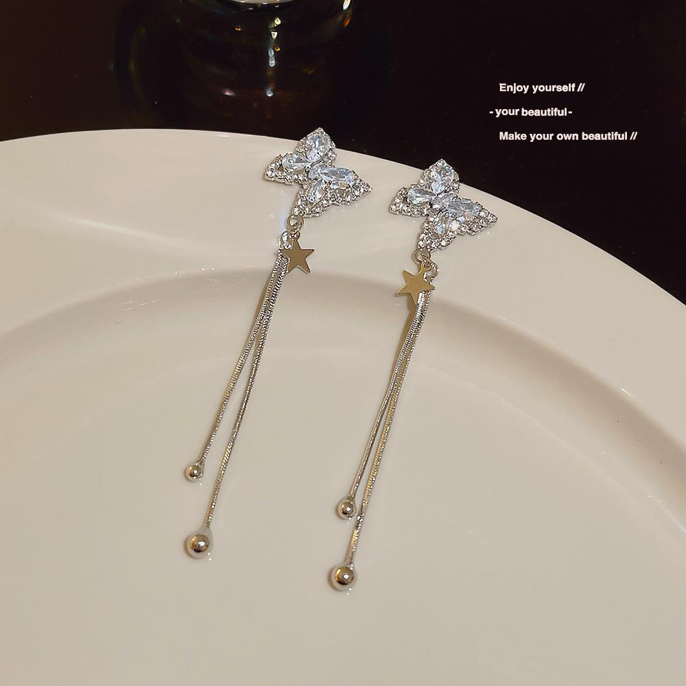 Pendientes de borla de mariposa de Corea del Sur 2025, nuevos, diseño de nicho, moda, exquisitos pendientes de viento frío para mujeres, venta al por mayor