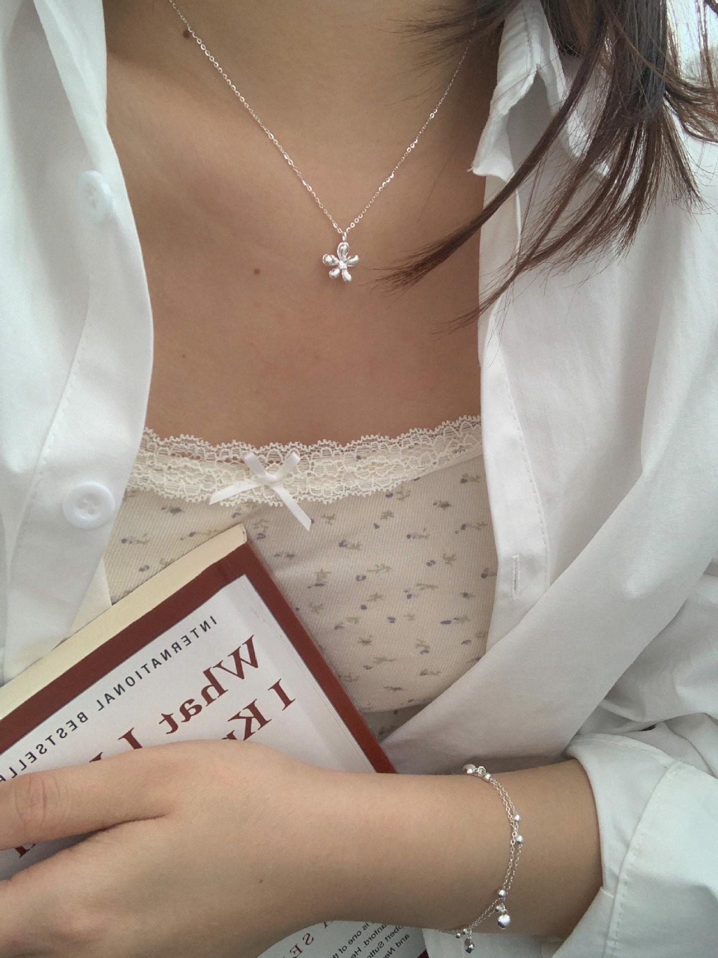Compra Collar Saina Fashion sencillo de plata de ley S925 con diseño geométrico de huevo y flores para mujer, estilo coreano, cadena de clavícula. al por mayor en Joom.pro
