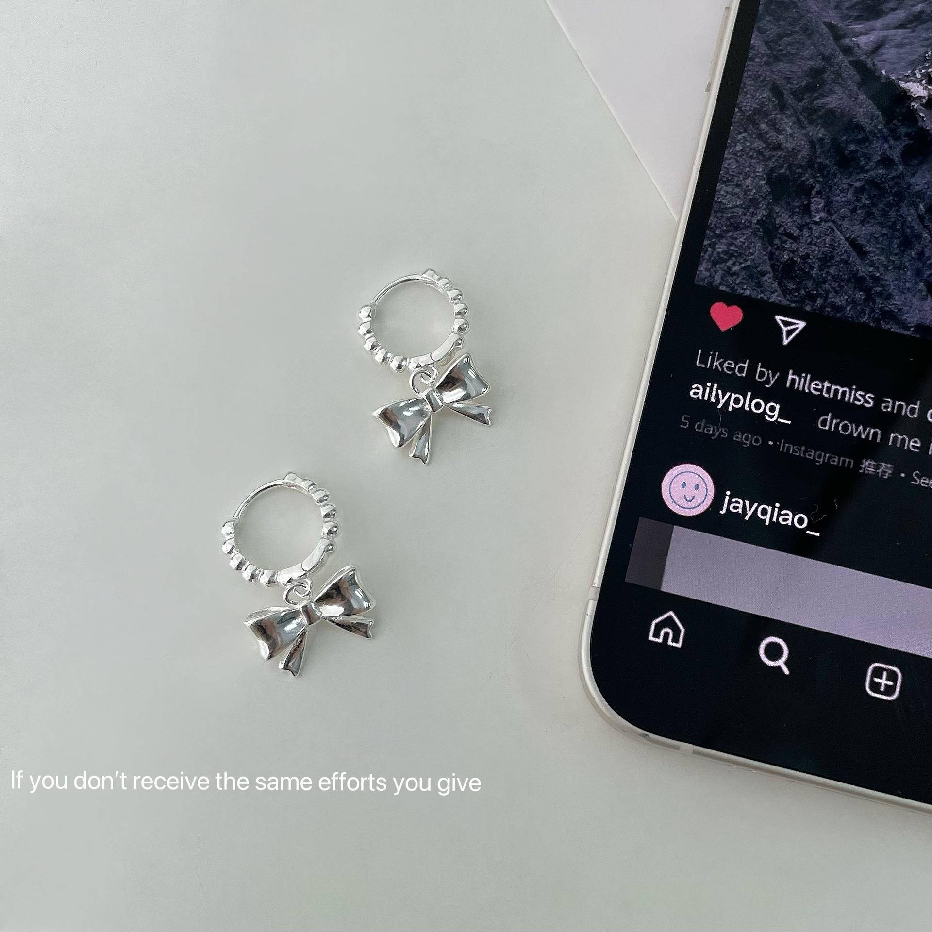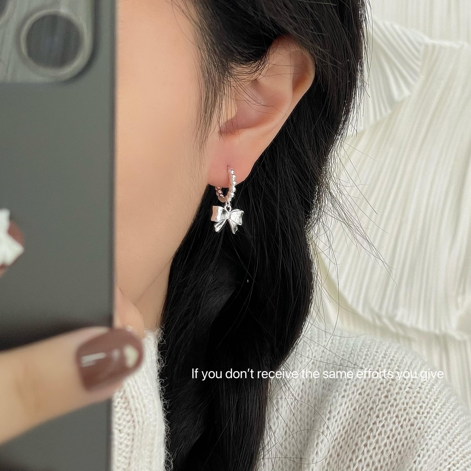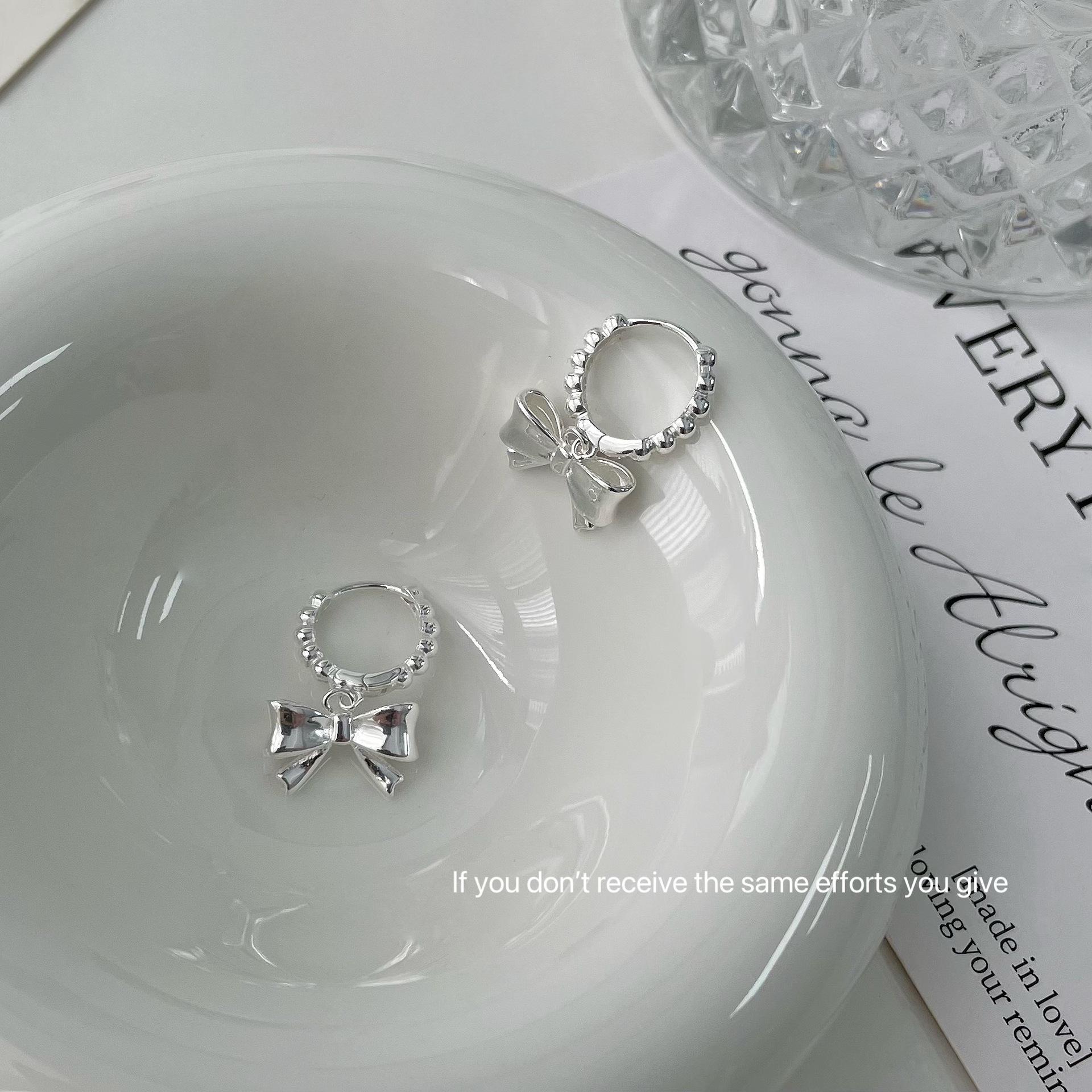 Aretes de lazo de plata esterlina S925 diseño nicho aretes dulces exquisitos tridimensionales lindos 2024 nuevo estilo caliente