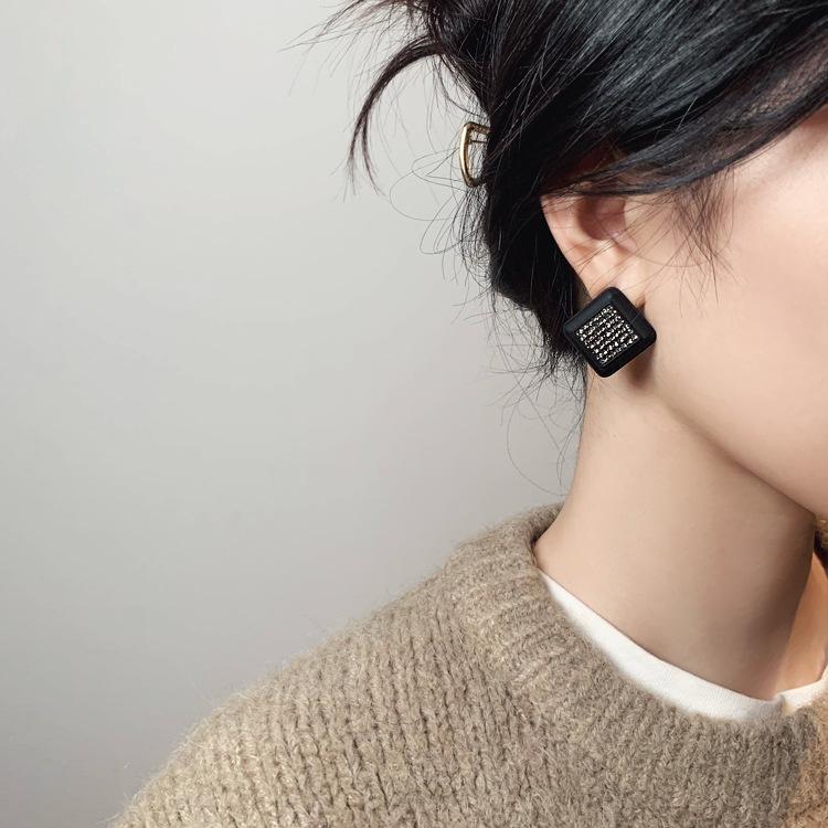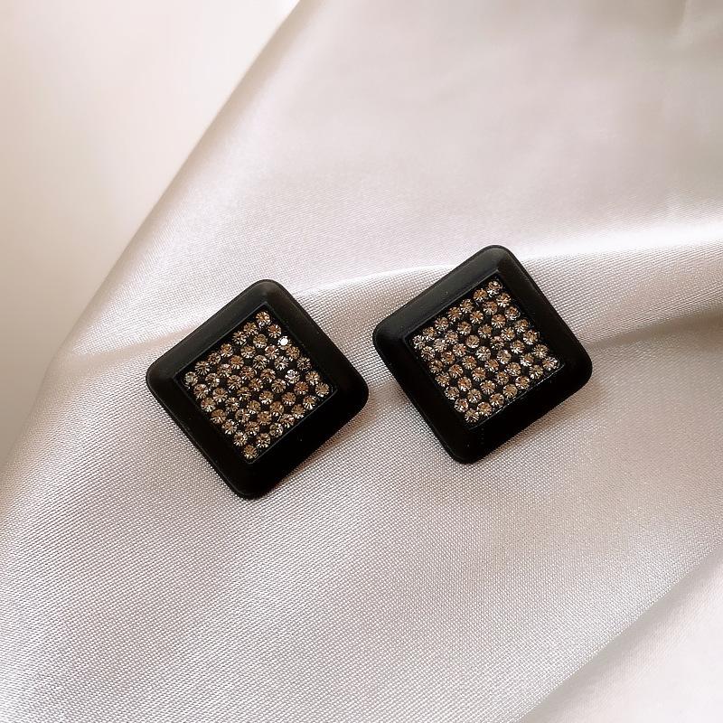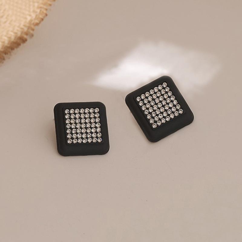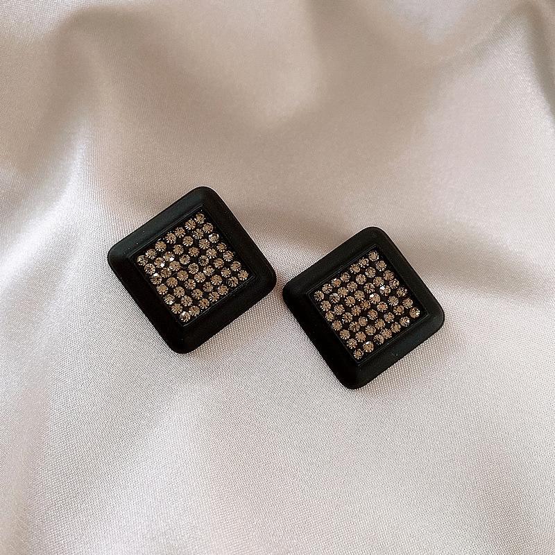 Compra Pendientes sencillos de diamantes cuadrados retro, pendientes de moda cuadrados negros, pendientes de temperamento clásico, pendientes cuadrados al por mayor en Joom.pro