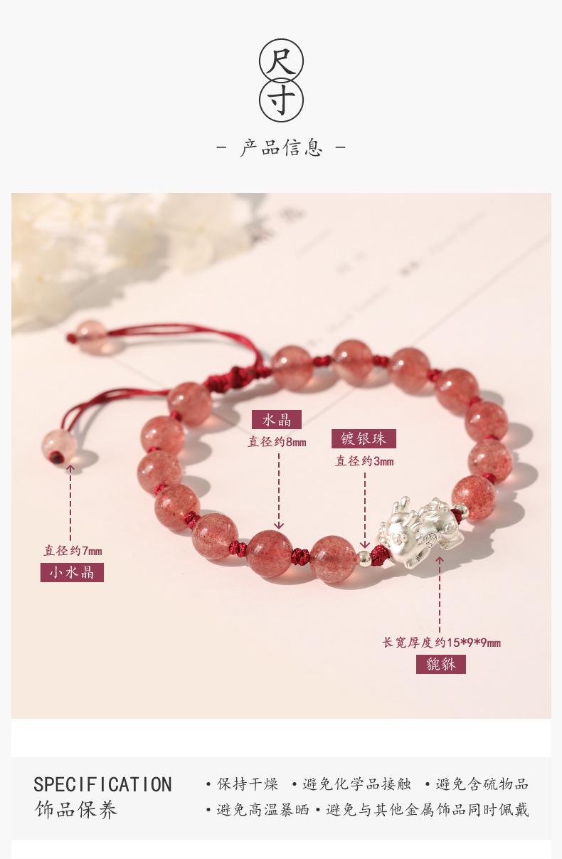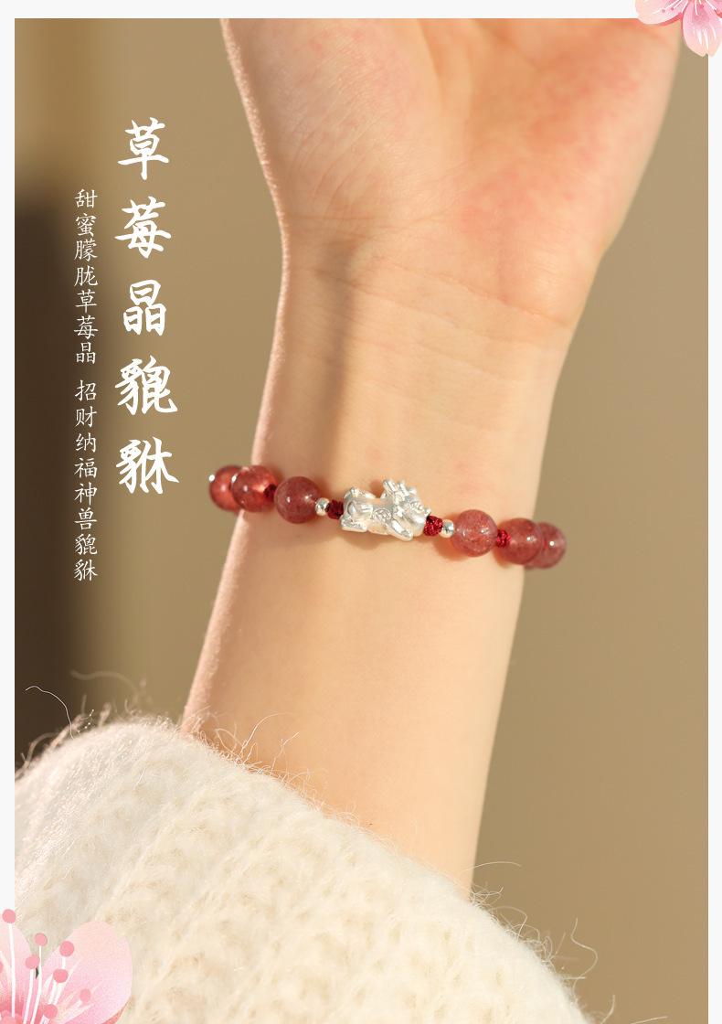 Compra Pulsera valiente de plata S925 para mujer, pulsera de cristal de fresa natural, nuevo estilo chino, cuerda de mano tejida, cuerda roja al por mayor al por mayor en Joom.pro