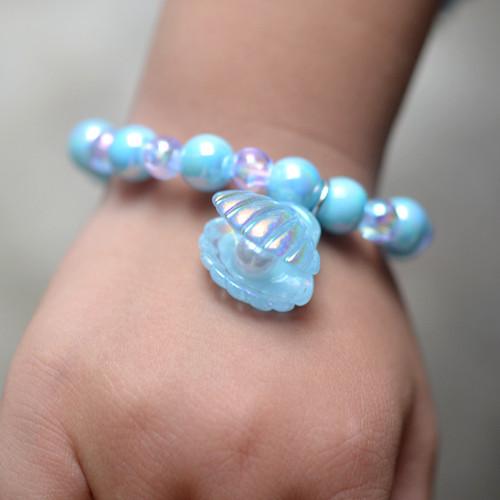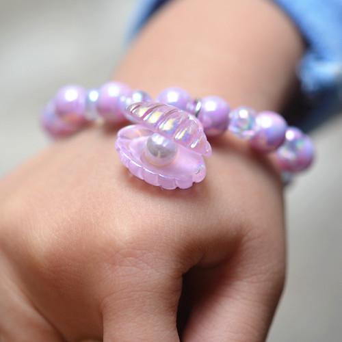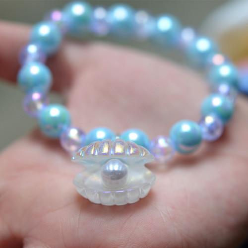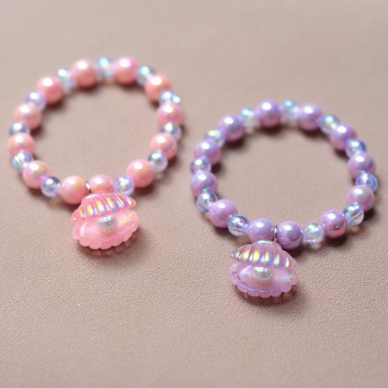 Collar de Concha de Sirena Mariposa Perla para Niños Pulsera Niña Princesa Concha Arete Clip Anillo Escama de Pez Set
