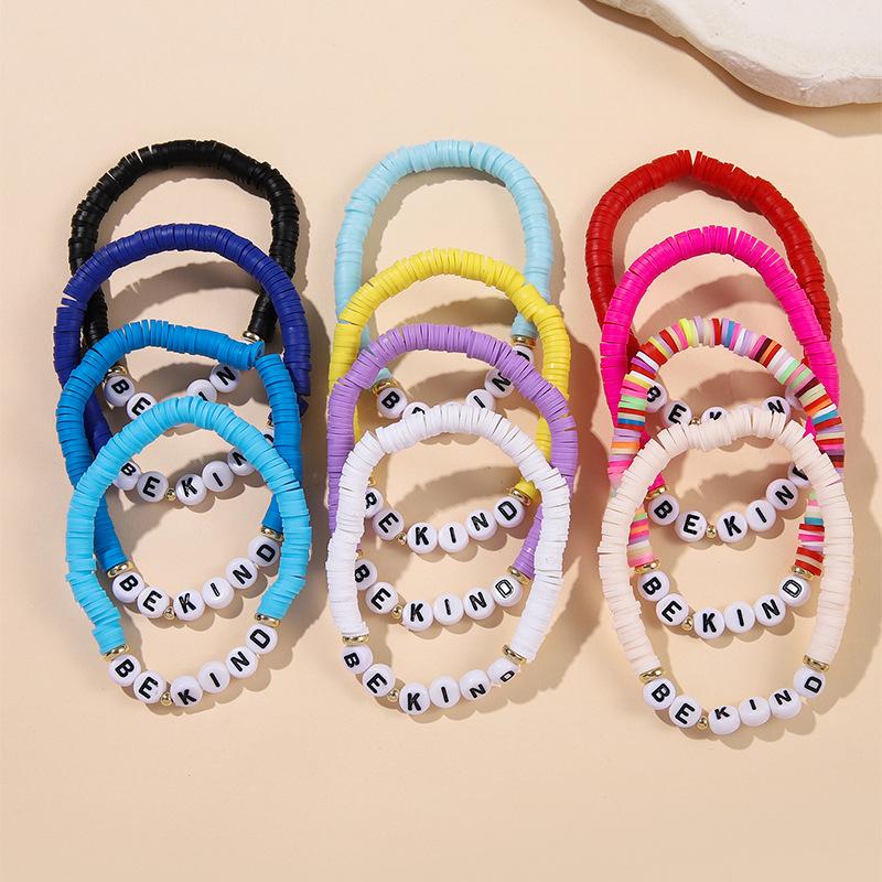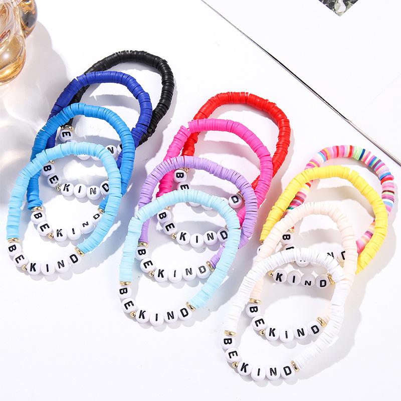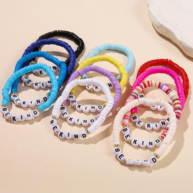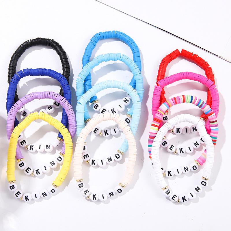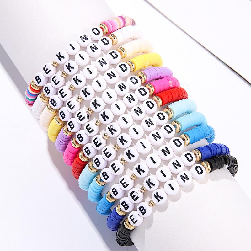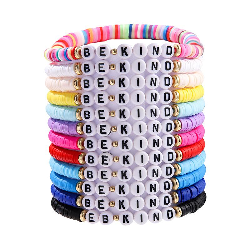Pulsera Colorida de Venta Caliente Europea y Americana Pulsera Amistosa con Letras Inglesas Pulsera Bohemia de Cerámica Blanda 12 piezas