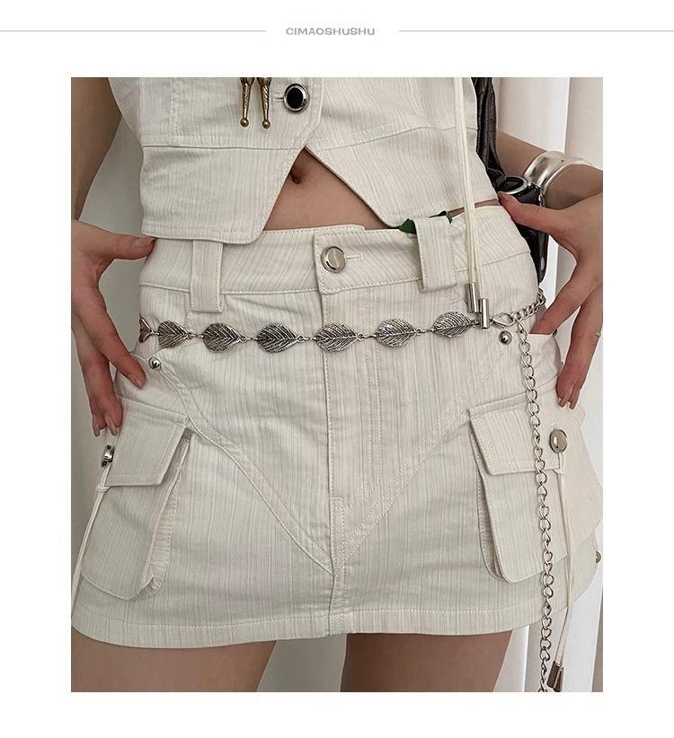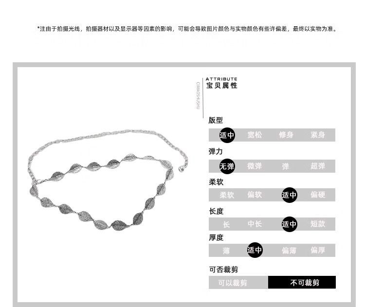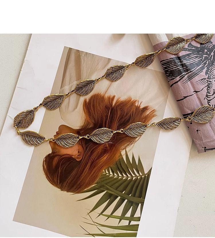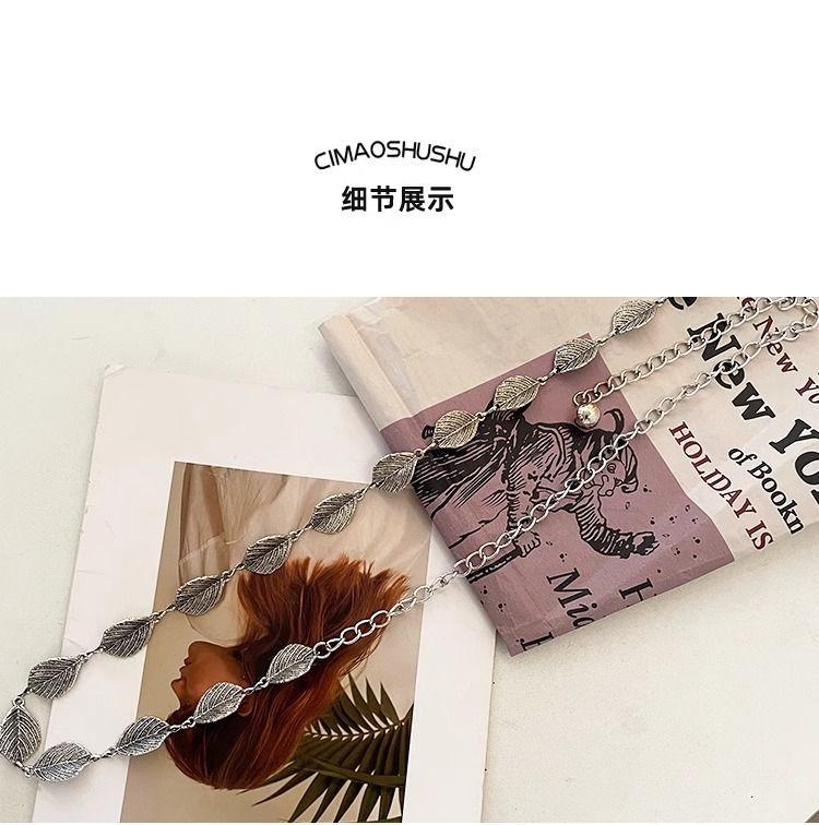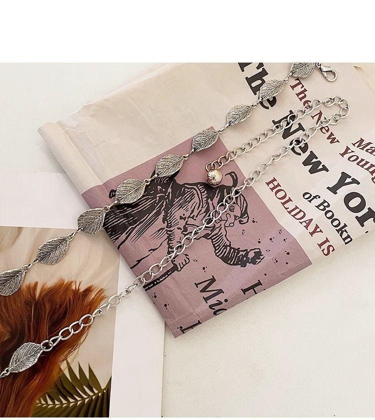 Compra Cadena de cintura retro de metal para mujer, plateada, combinable con todo, decoración de hojas de alta gama, estilo étnico, pantalones cortos vaqueros, cinturón estilo coreano al por mayor en Joom.pro