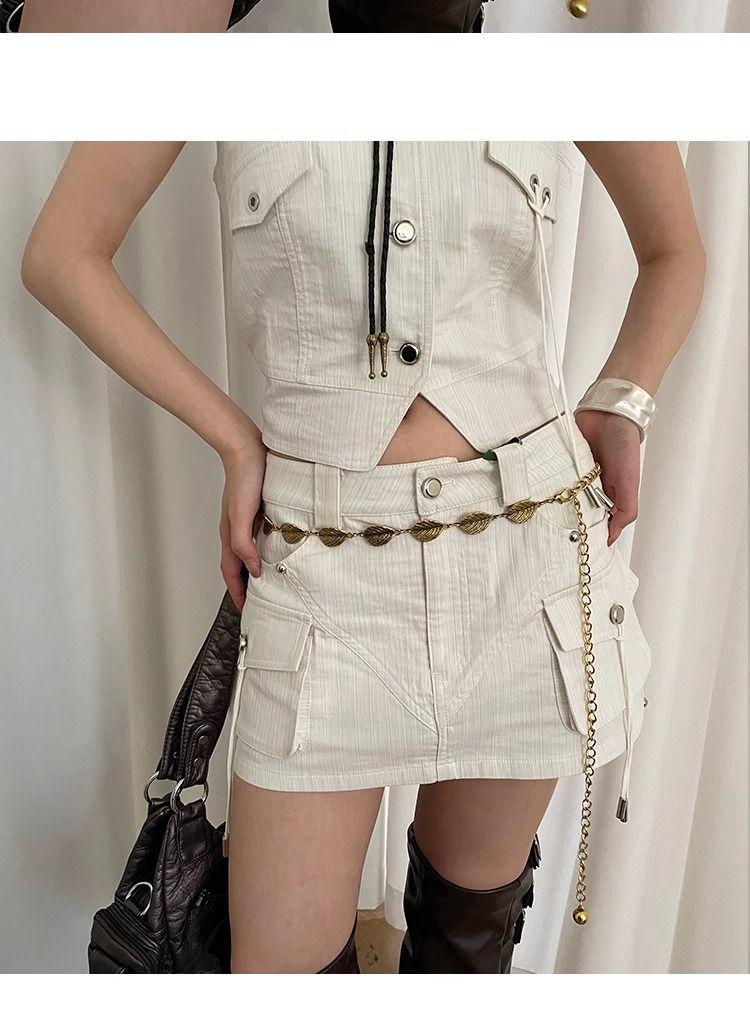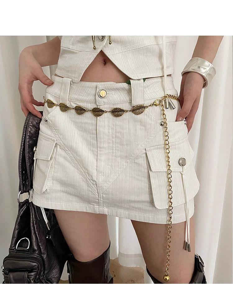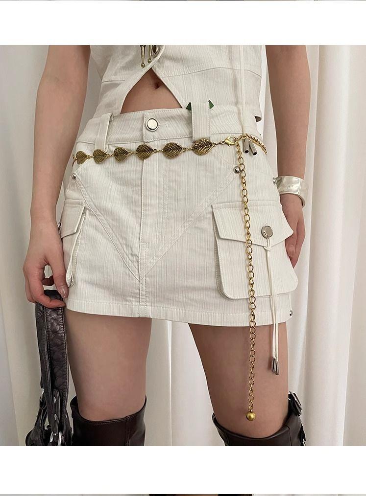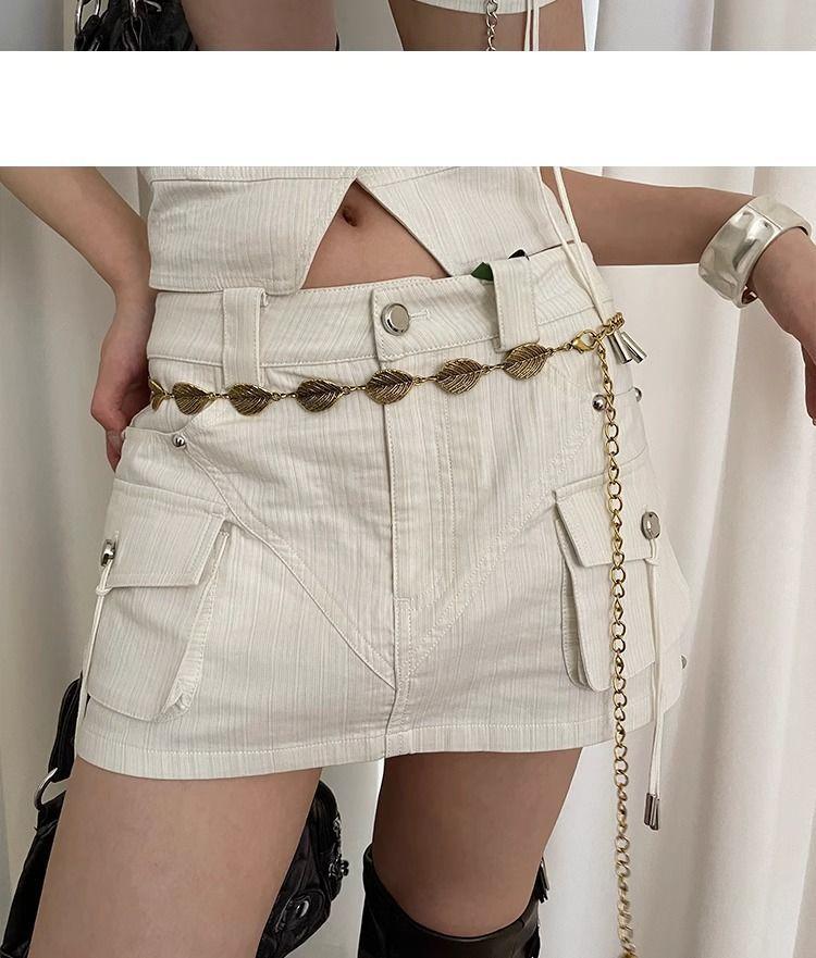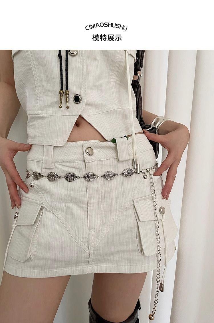 Compra Cadena de cintura retro de metal para mujer, plateada, combinable con todo, decoración de hojas de alta gama, estilo étnico, pantalones cortos vaqueros, cinturón estilo coreano al por mayor en Joom.pro