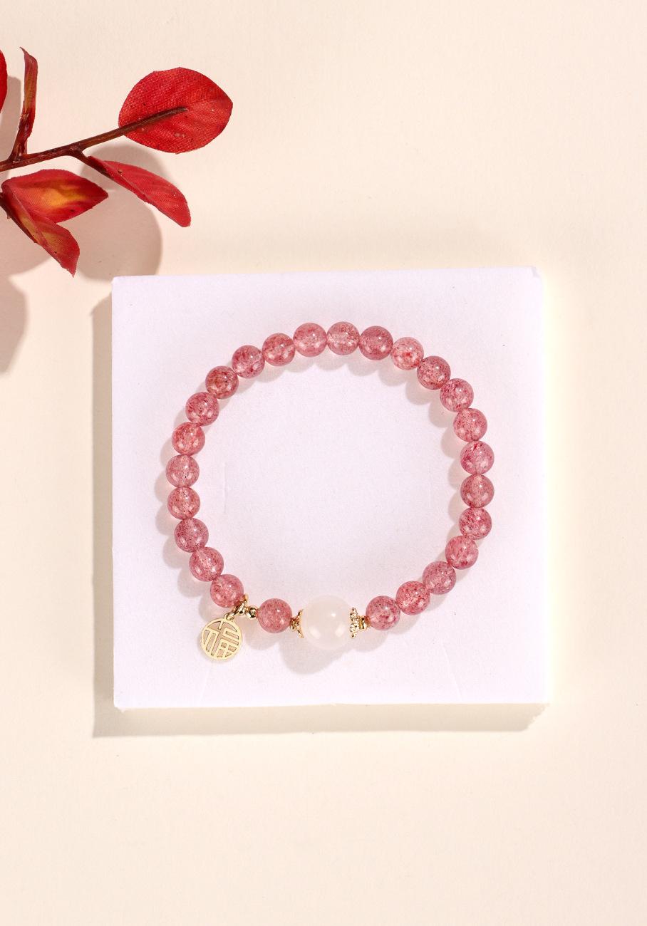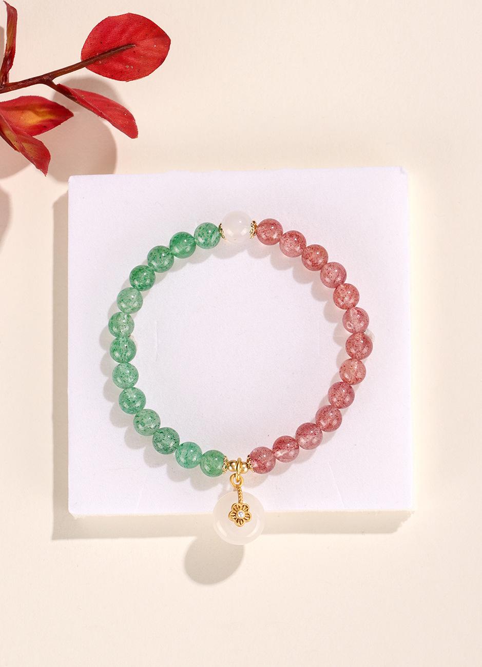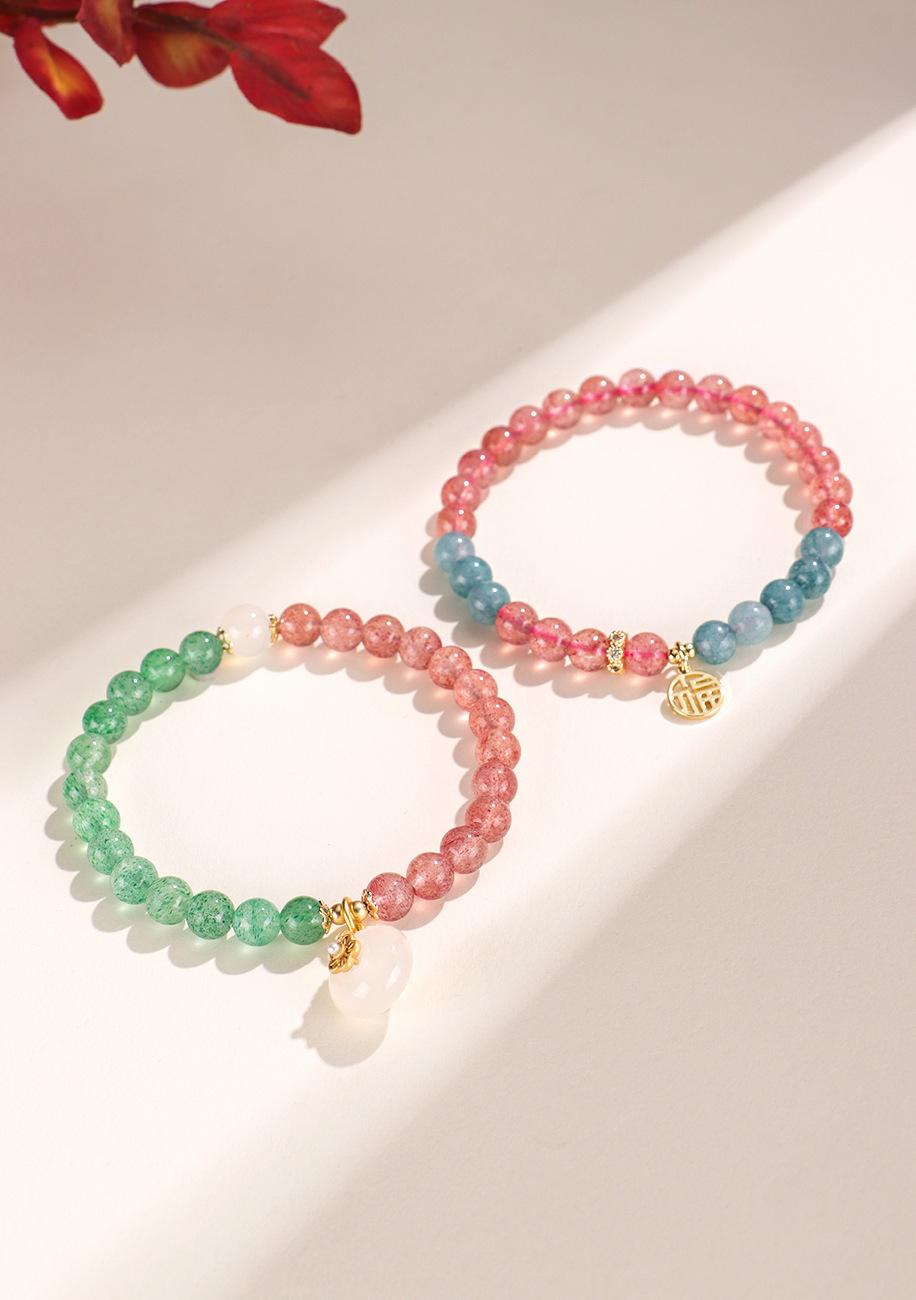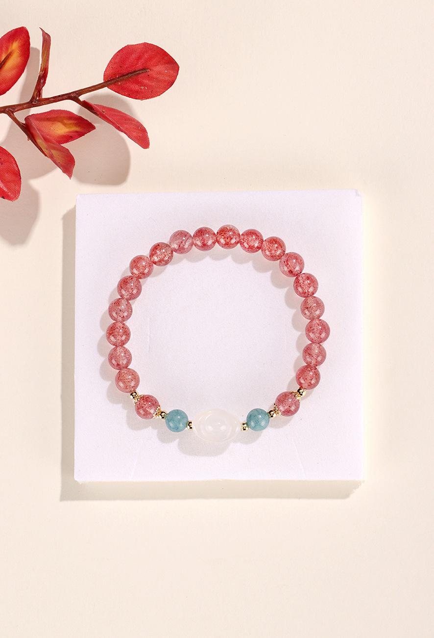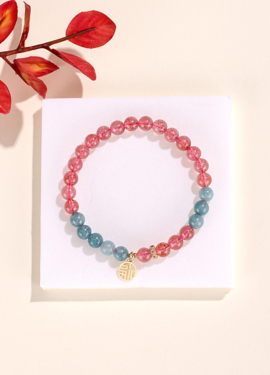 Natural Strawberry Crystal Azure Agate Fu Brand Bracelet