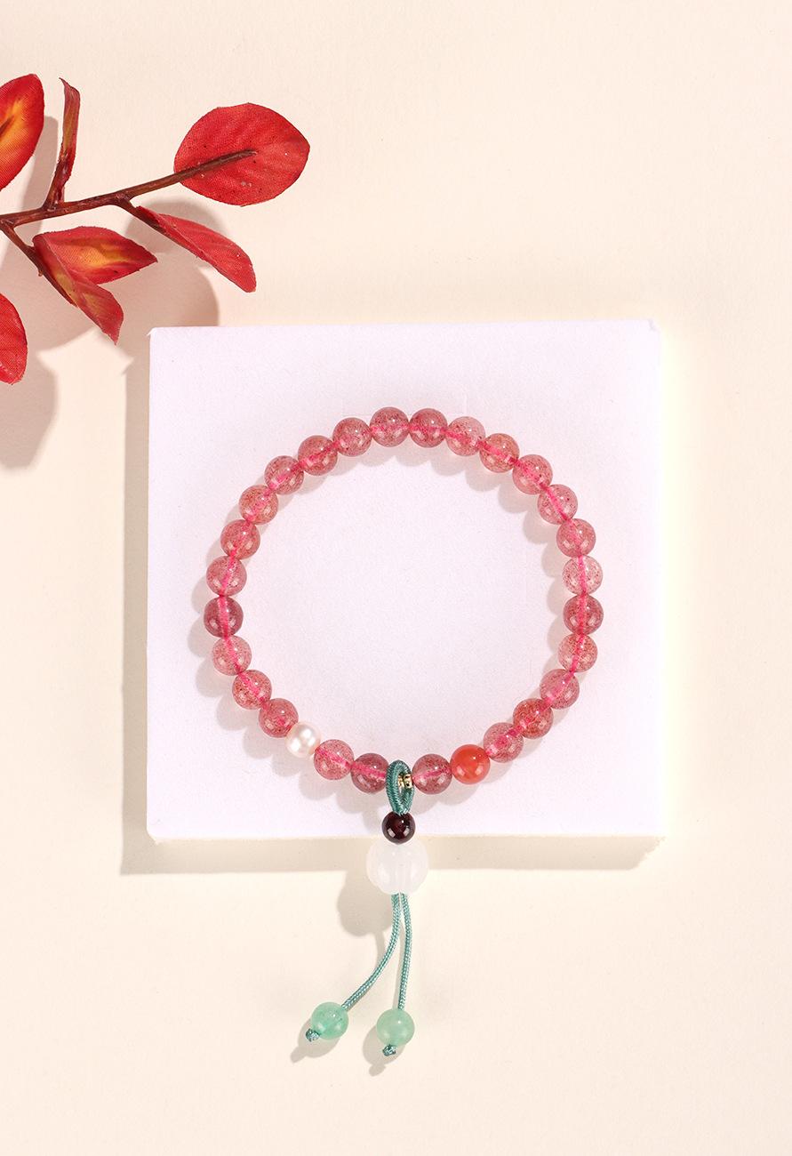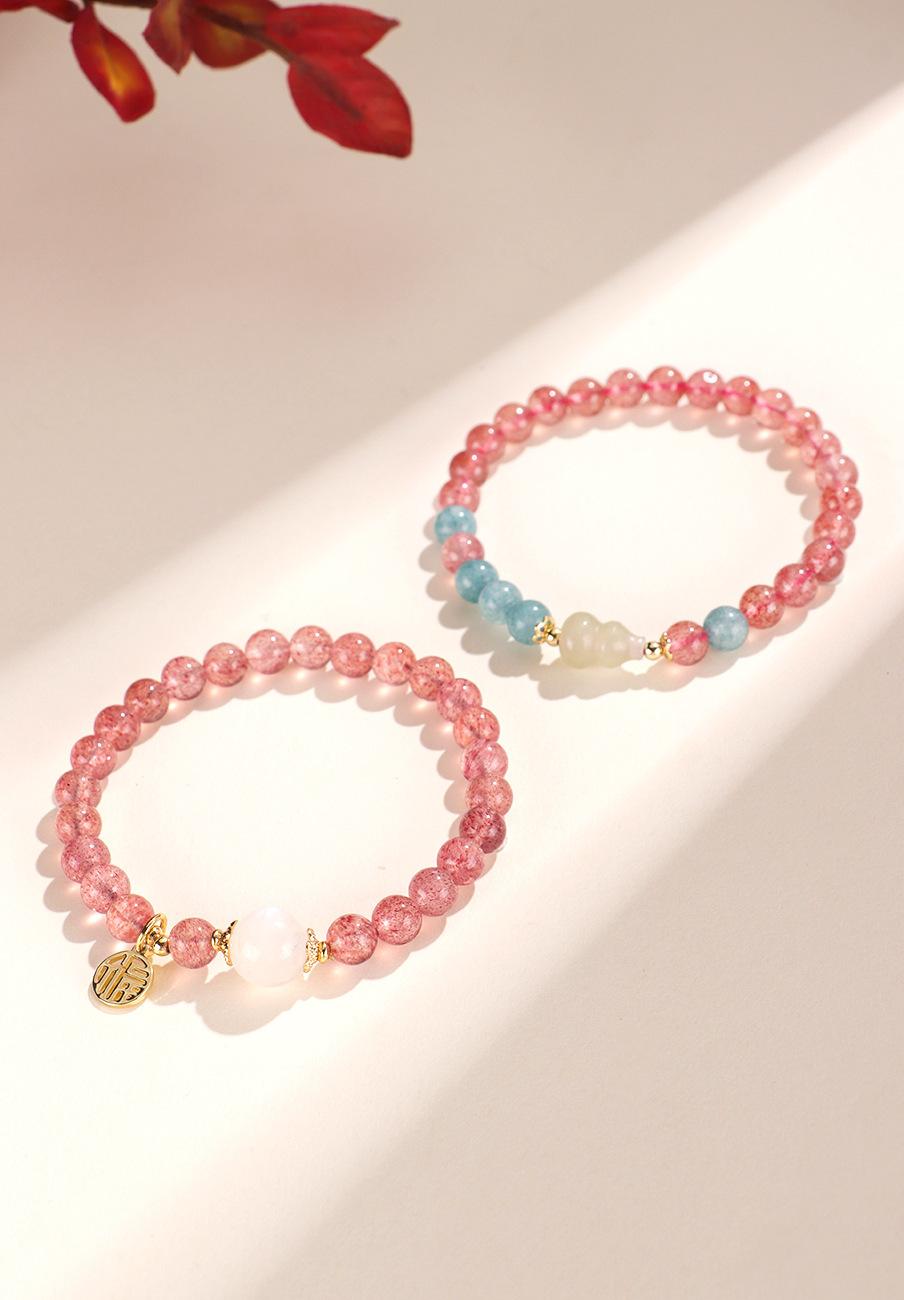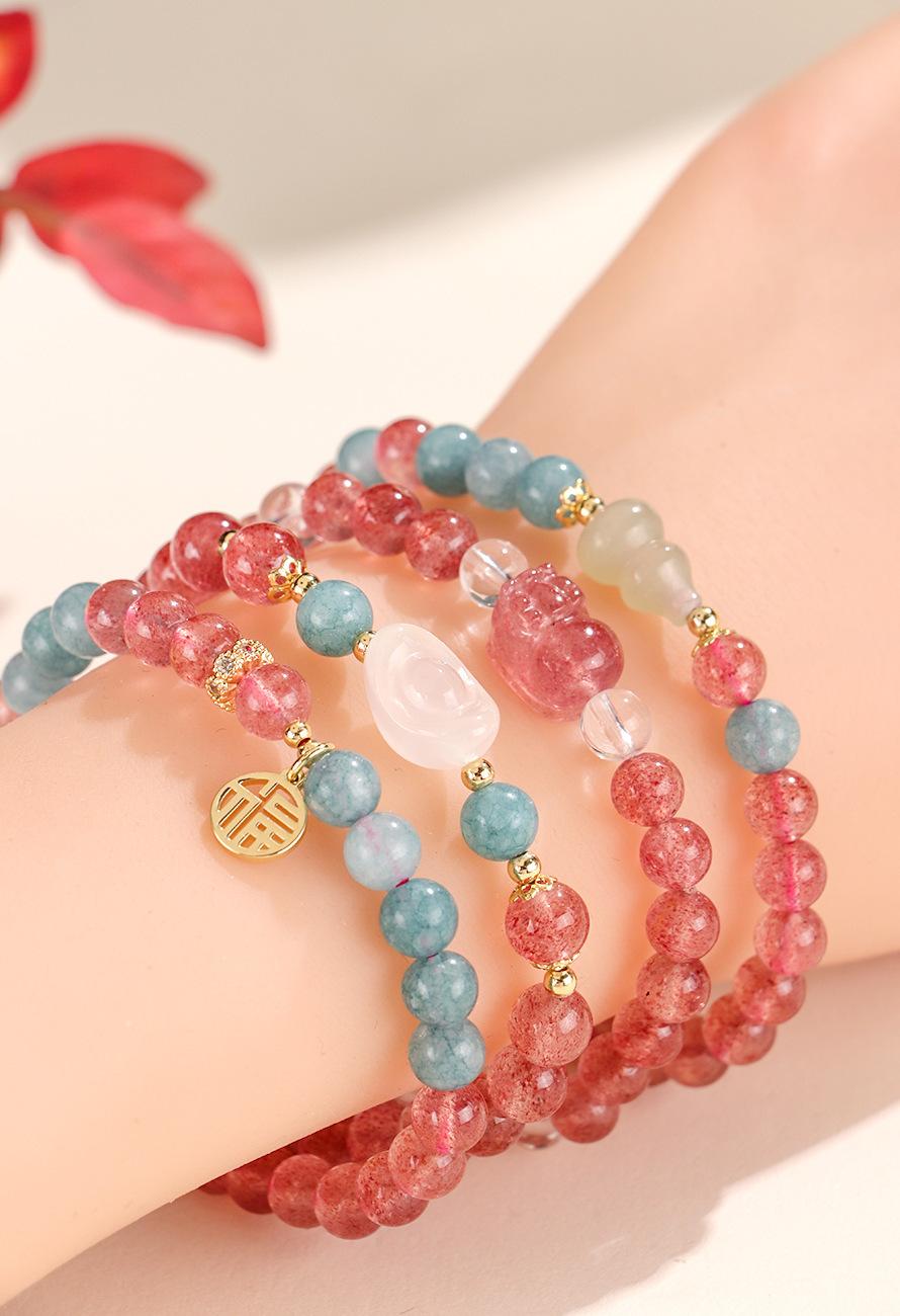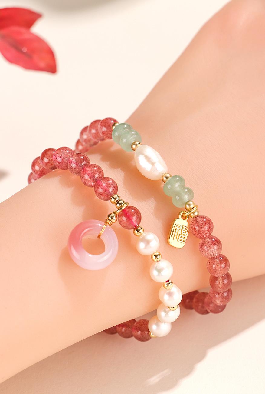 Strawberry crystal azure agate white crystal freshwater pearl aventurine gourd gold silk south