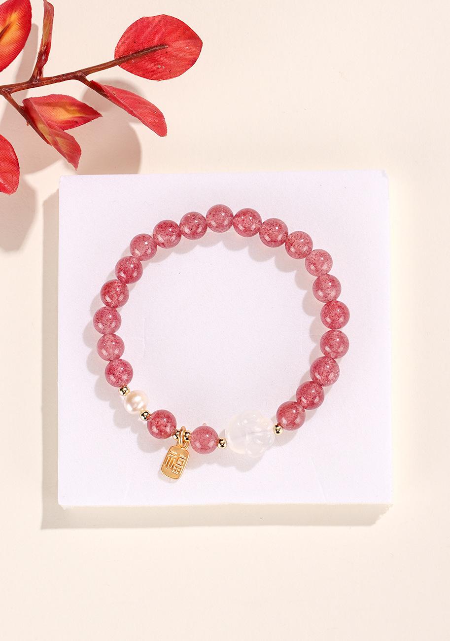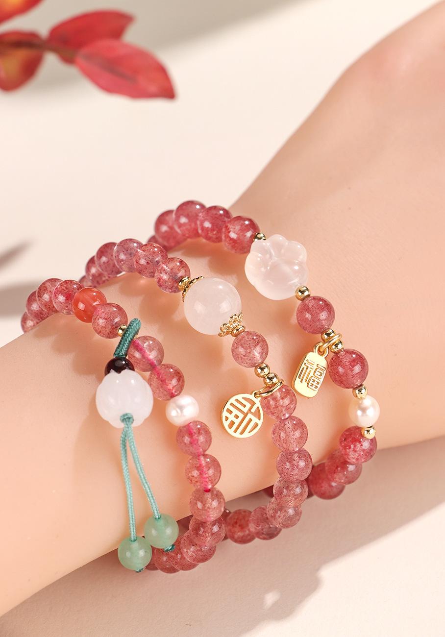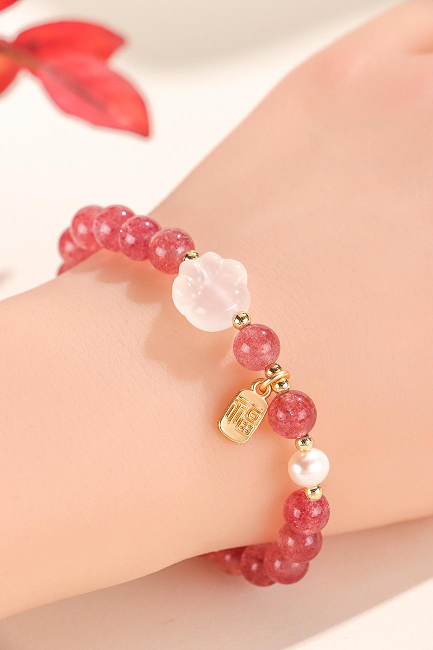Natural Strawberry Crystal Agate Cat Claw Fu Brand Bracelet
