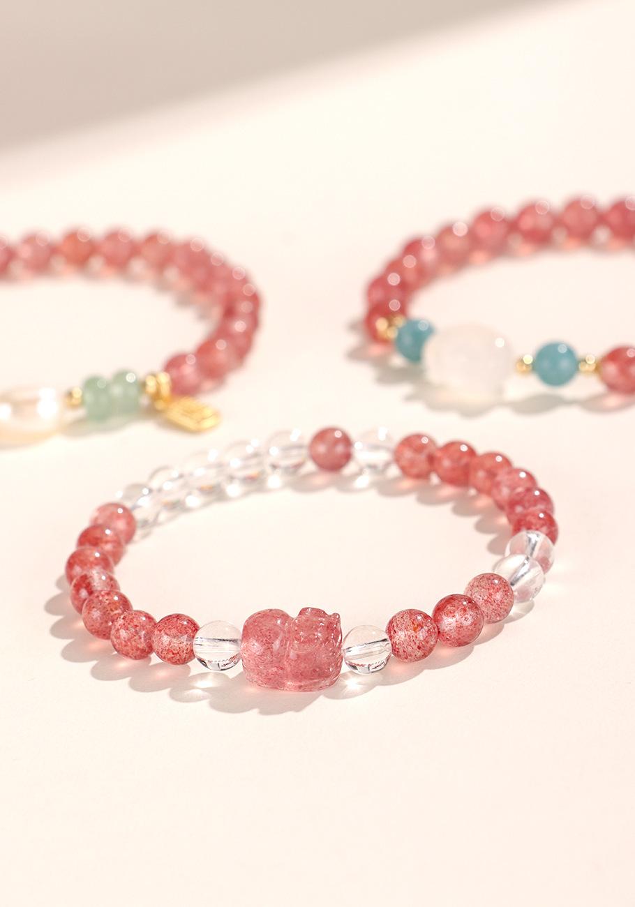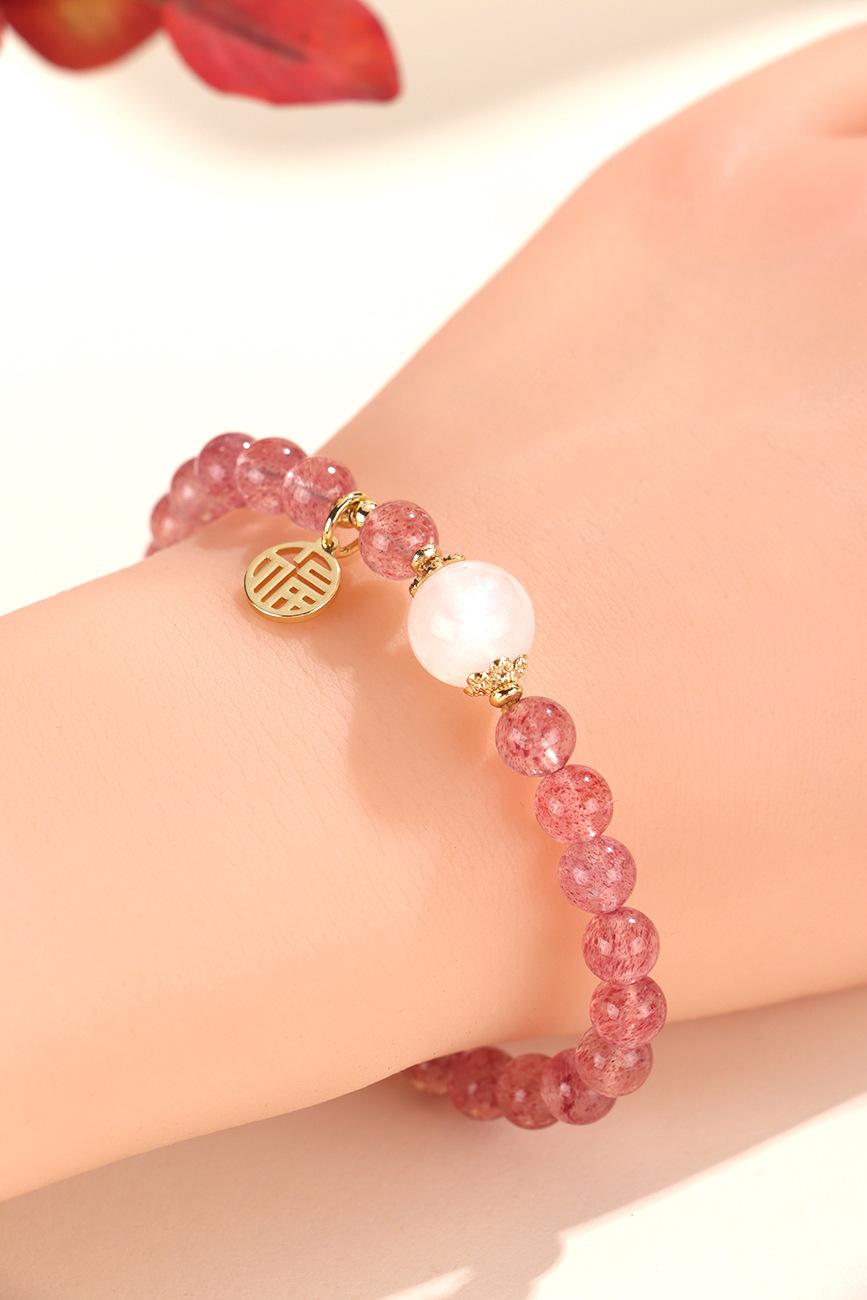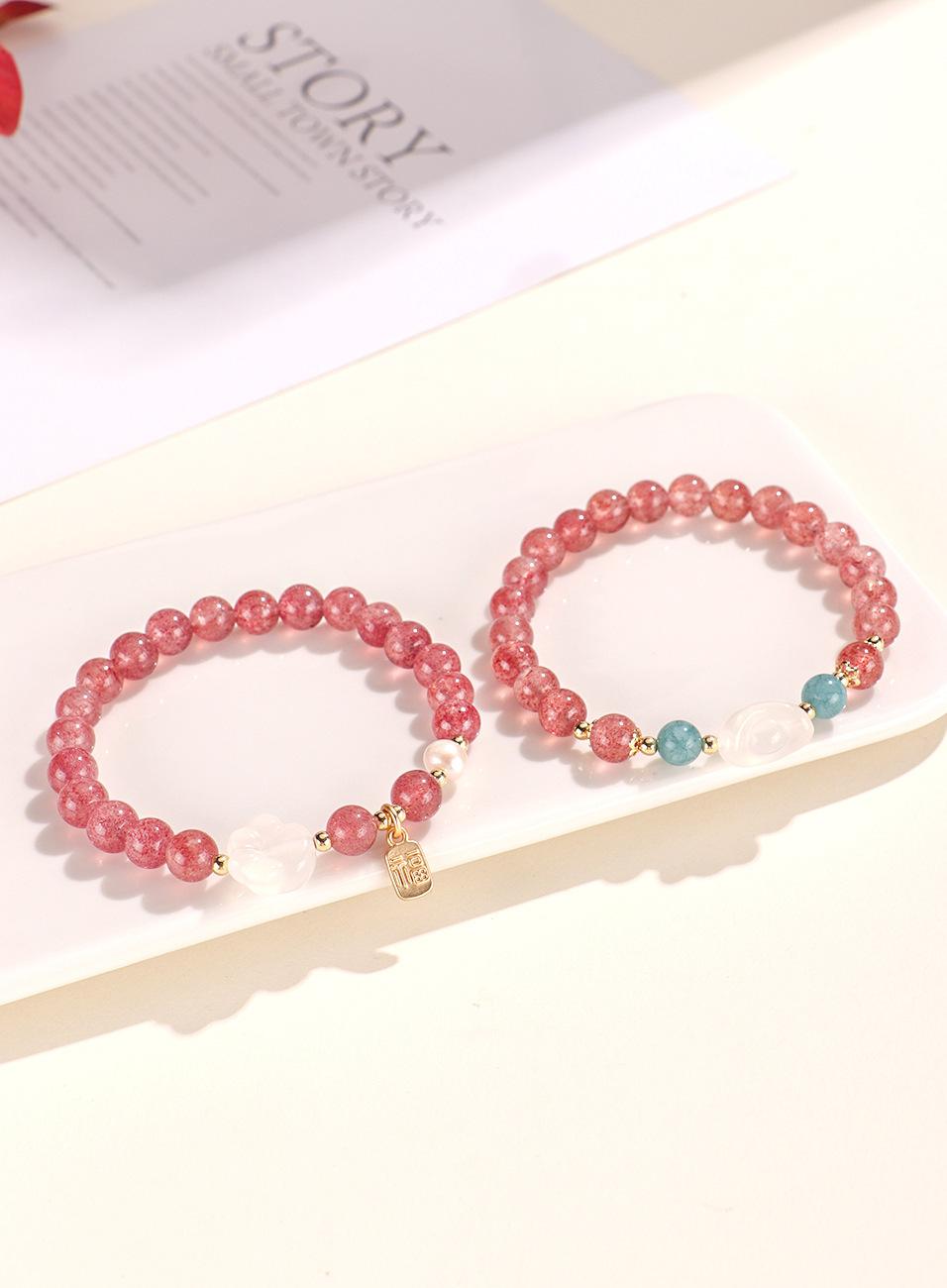 Natural Strawberry Crystal Agate Cat Claw Fu Brand Bracelet