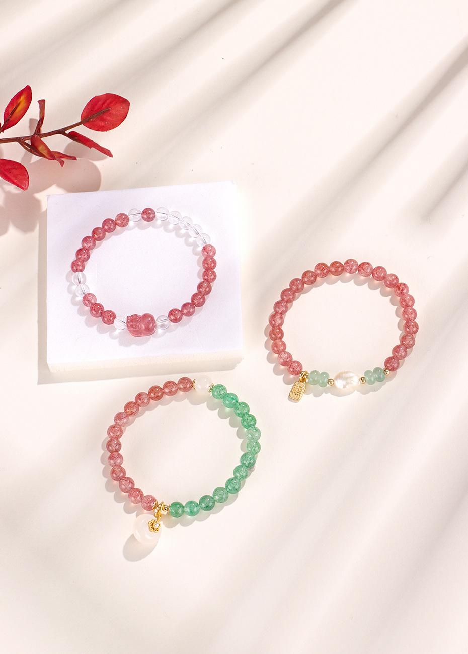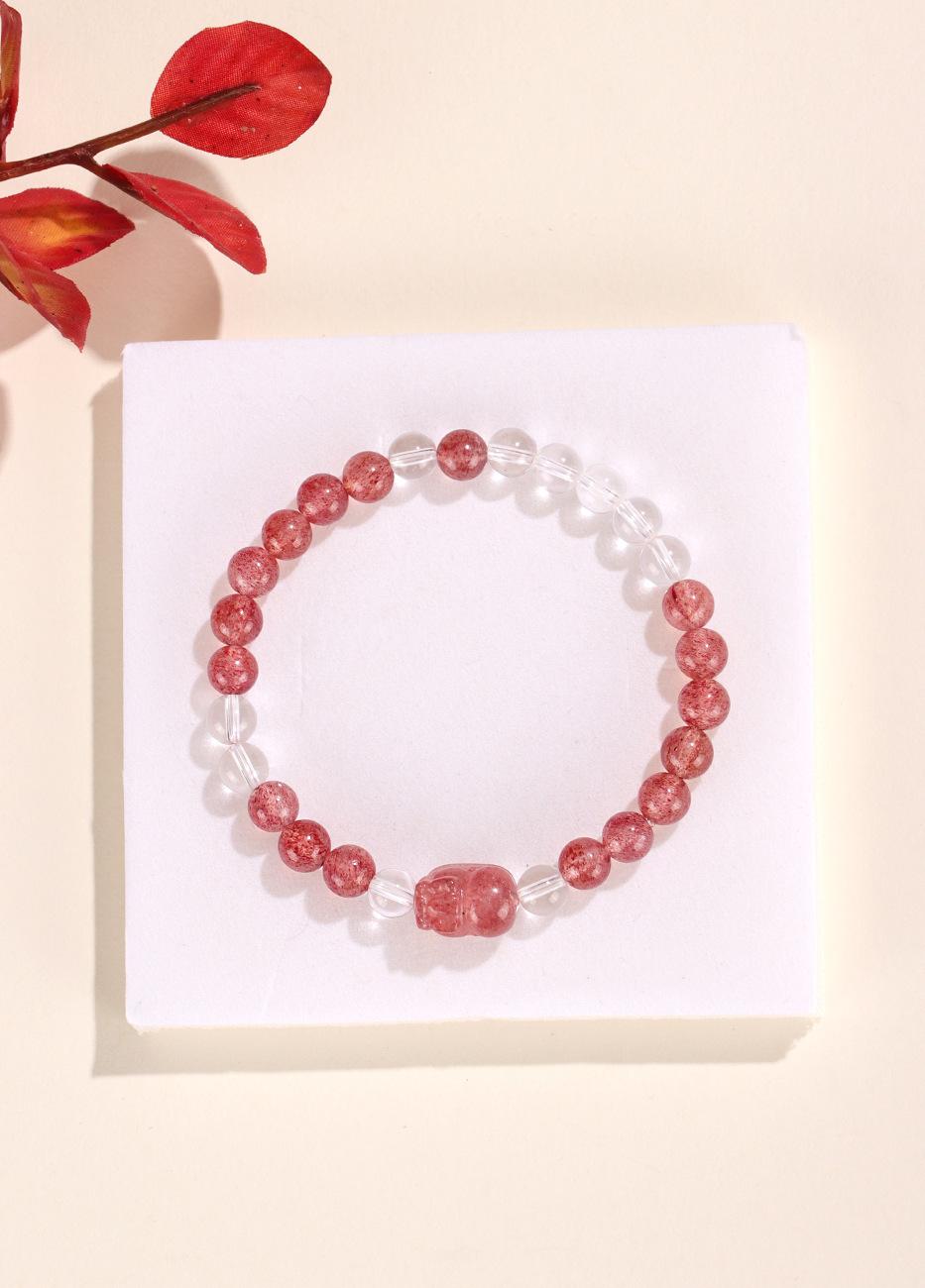 Natural white crystal strawberry crystal Pixiu bracelet, Natural Strawberry Crystal Freshwater Pearl Salt Sour...