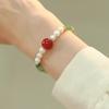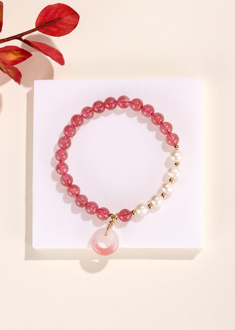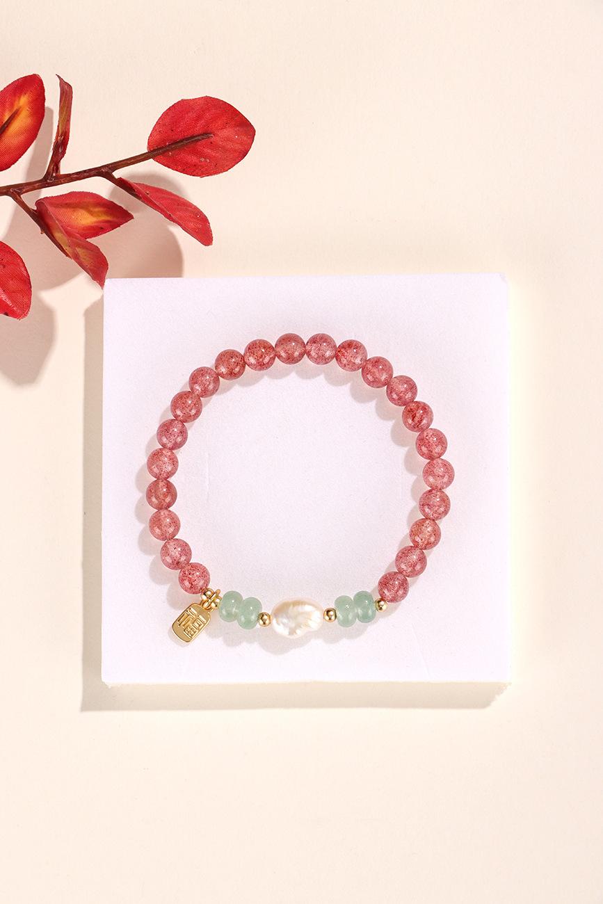 Natural Strawberry Crystal Aventurine Freshwater Pearl Fu Brand Bracelet