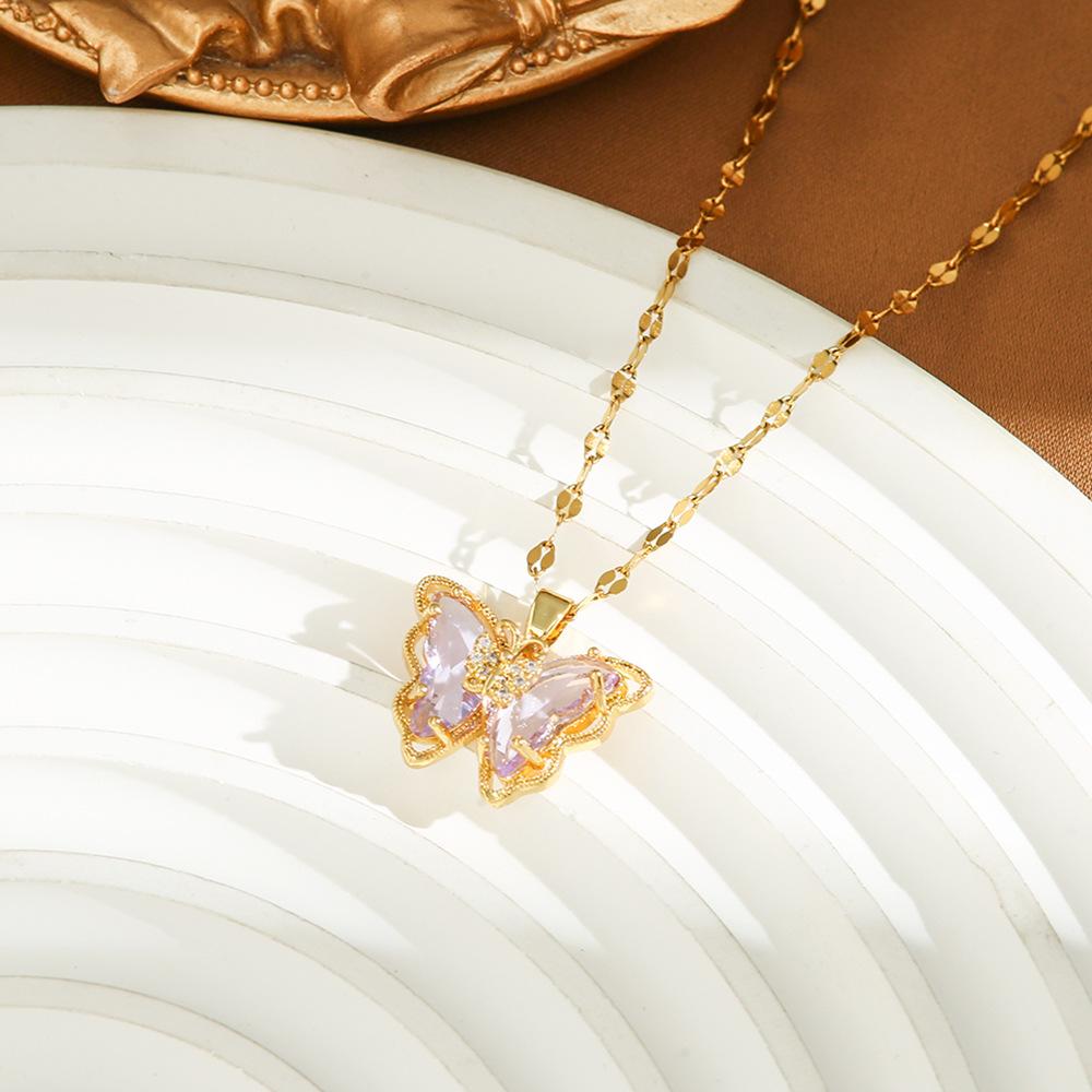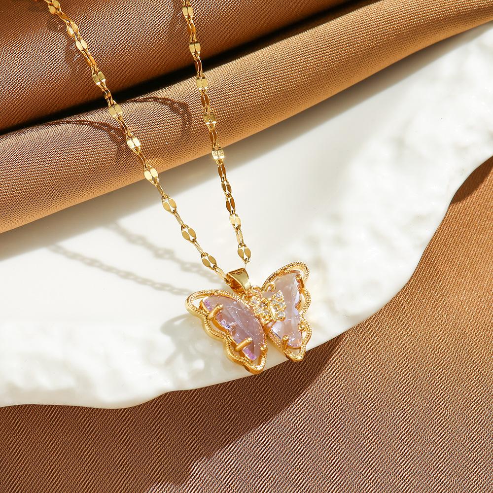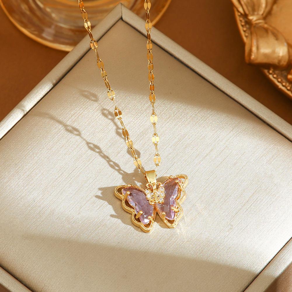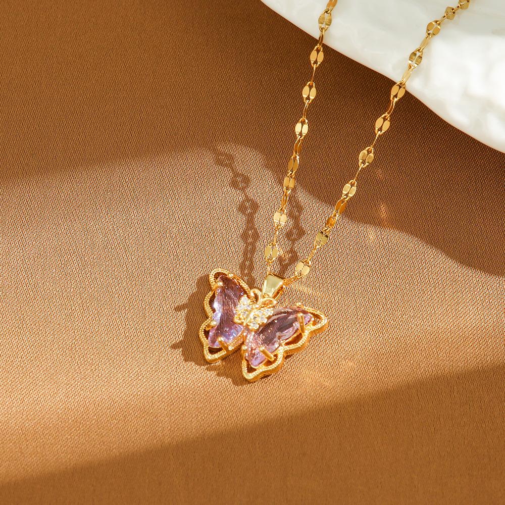 [Acero de titanio] Collar de mariposa para mujer, chapado en oro real de 18 quilates, cadena de clavícula exquisita, cadena de cuello, fabricante al por mayor.
