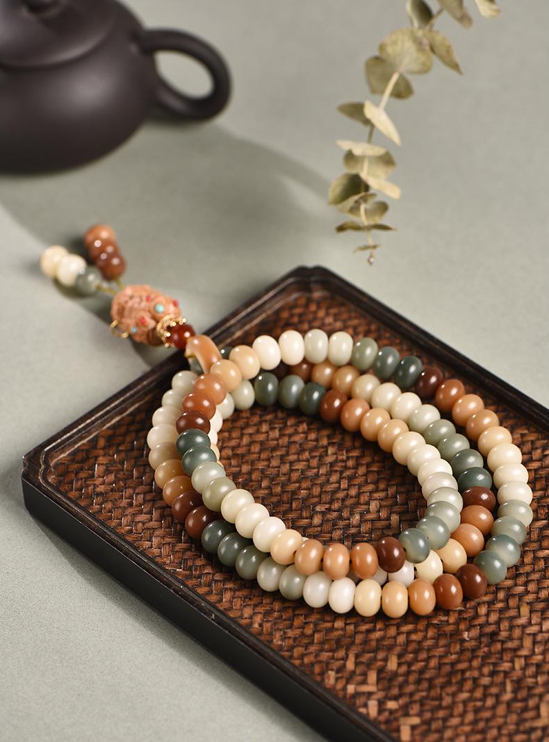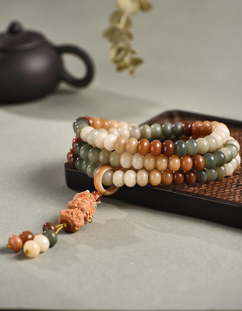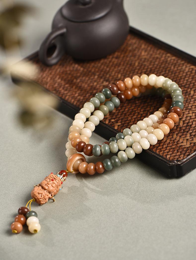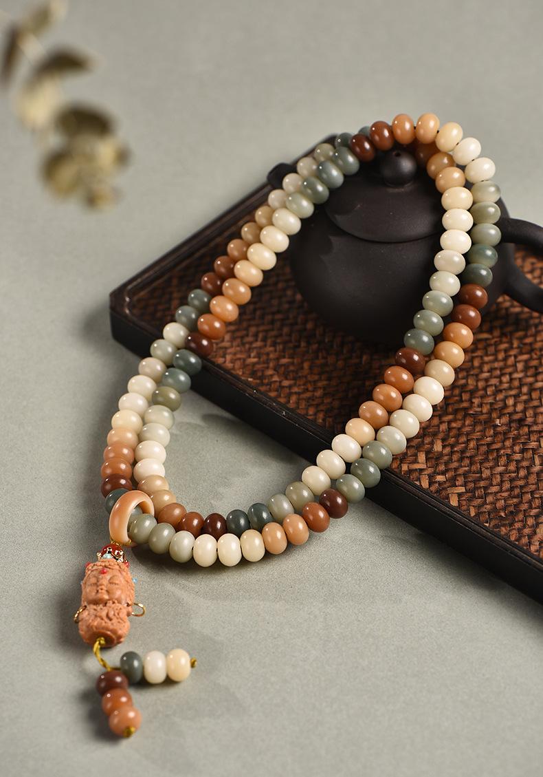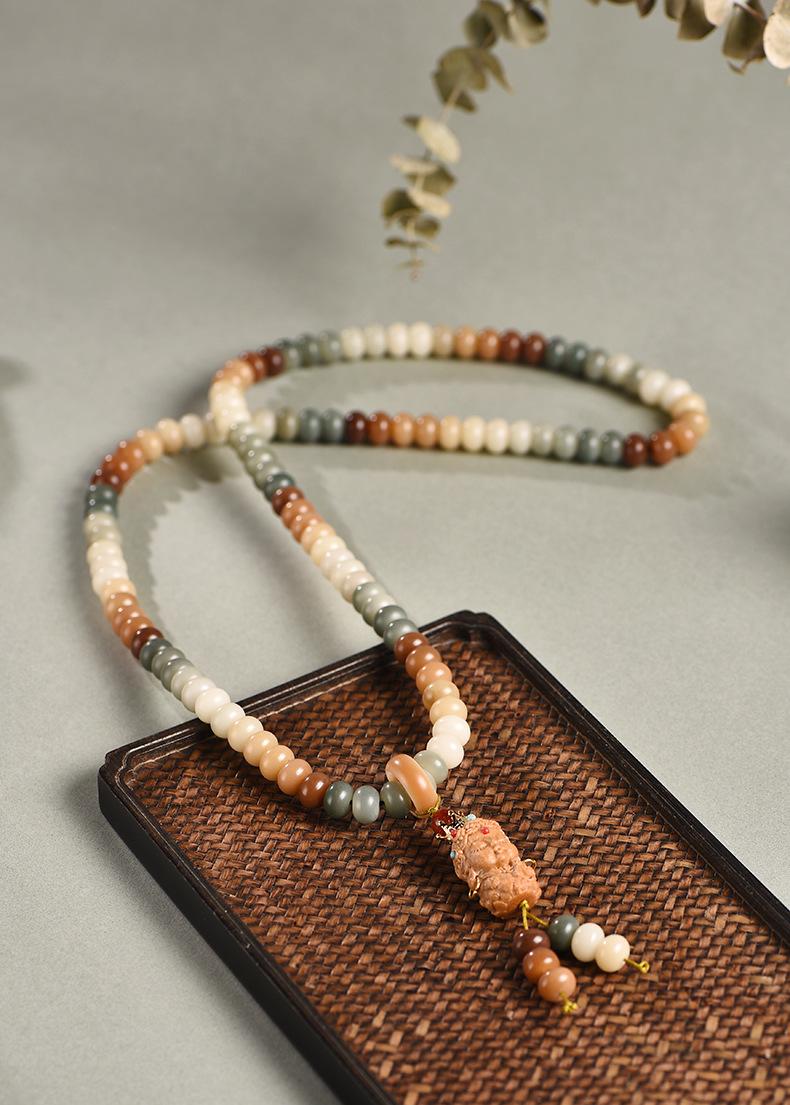 Pulsera de Raíz de Bodhi de Jade Blanco 108 Cambio Gradual Madre Cuello Colgante Cuentas de Buda Dobao Rosario Pulsera Femenina Masculina DIY Wen Play