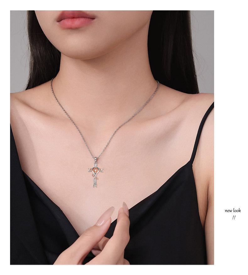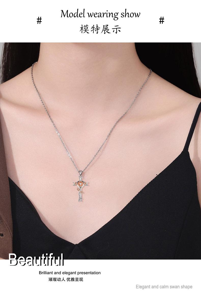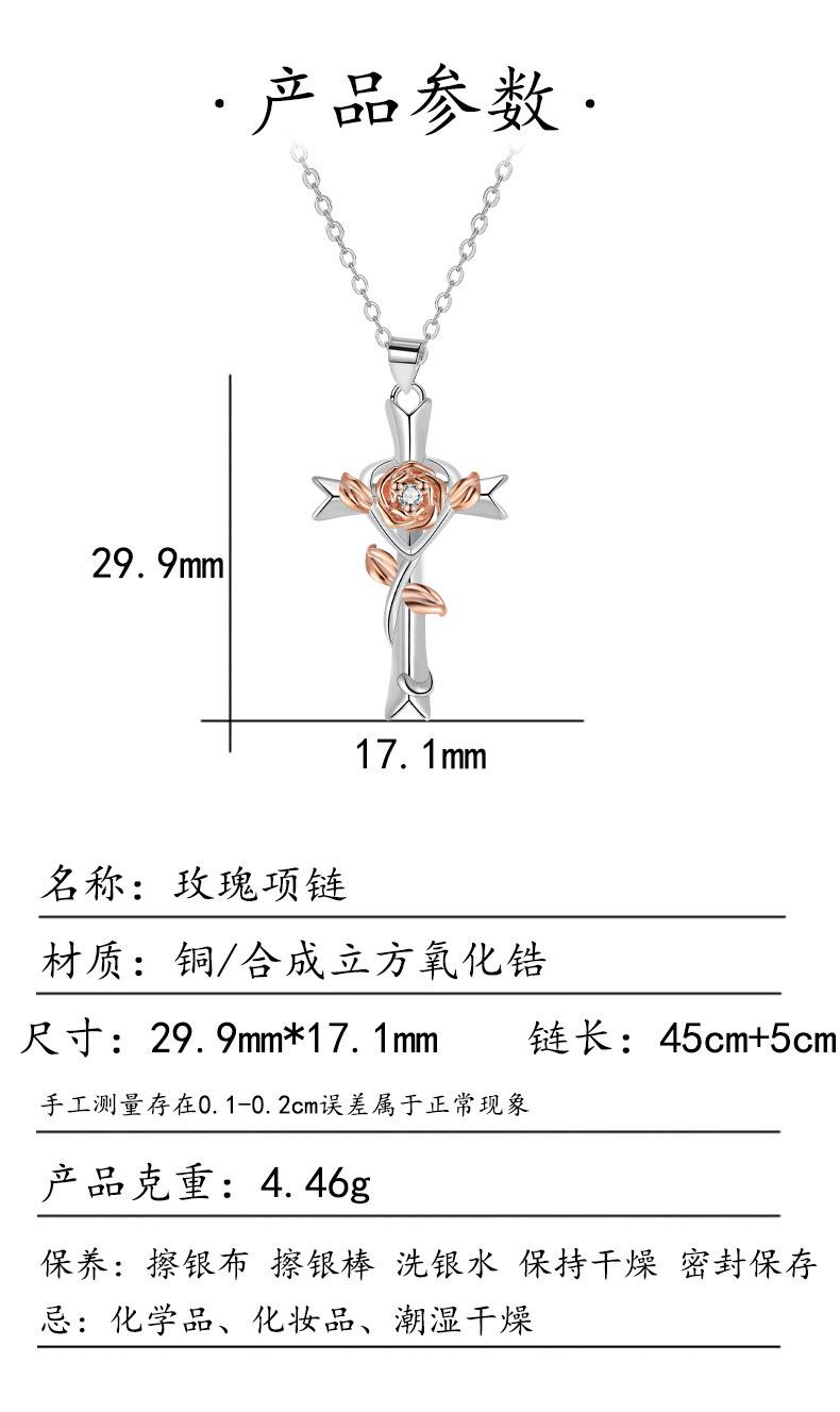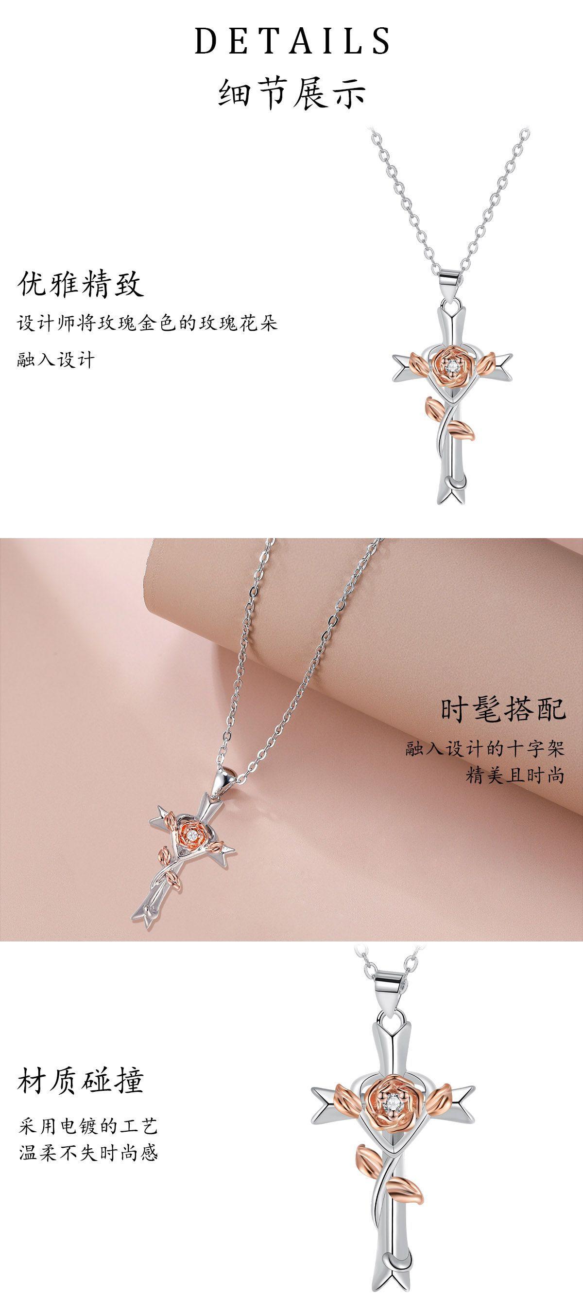 Collar Popular Transfronterizo Ka Manqi para Mujer Amazon Aliexpress Joyería Más Vendida Cruz Rosa Regalo de Joyería