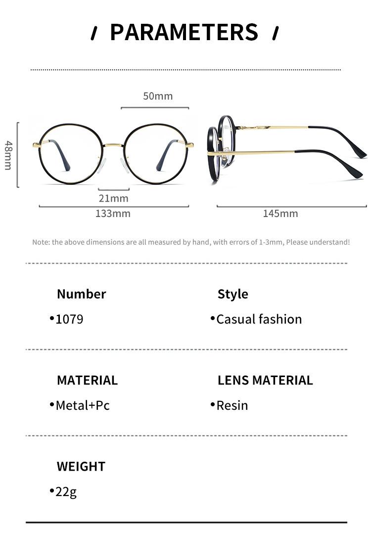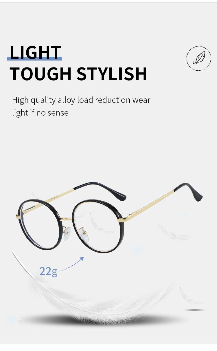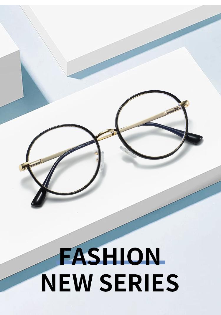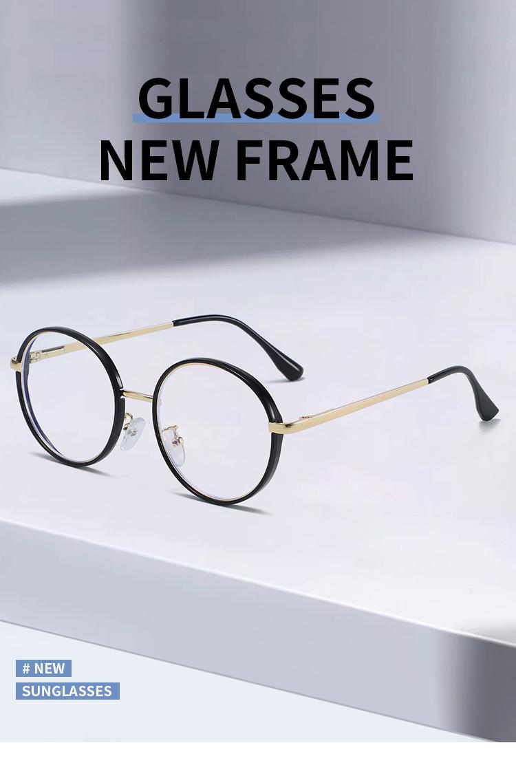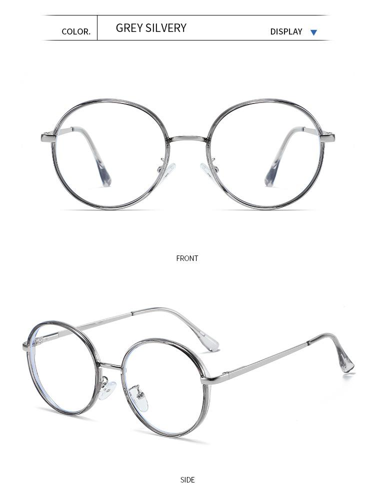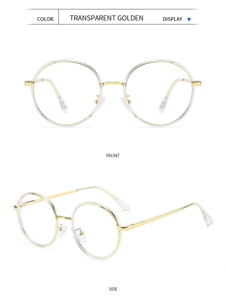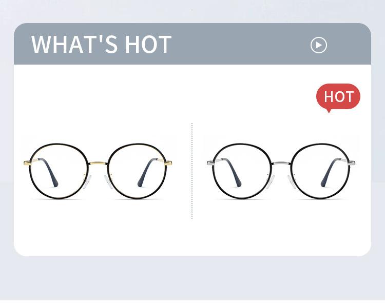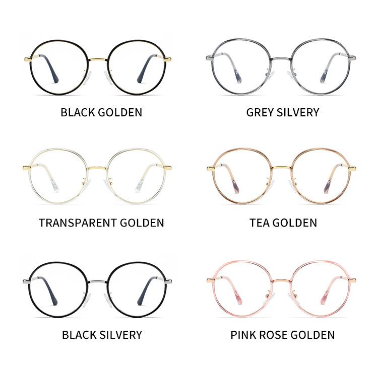 Nuevo marco grande de metal redondo, espejo plano anti-luz azul, adelgazante, marco de gafas de aspecto simple, los estudiantes pueden combinar el grado de marco de gafas