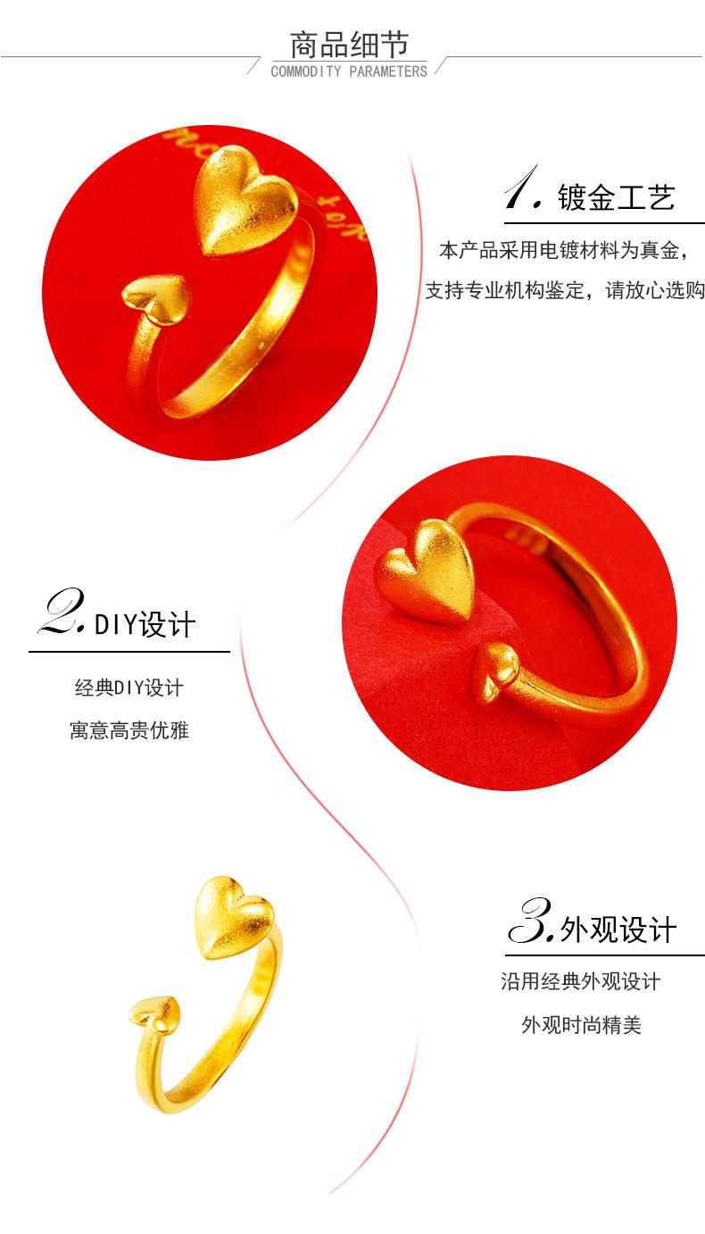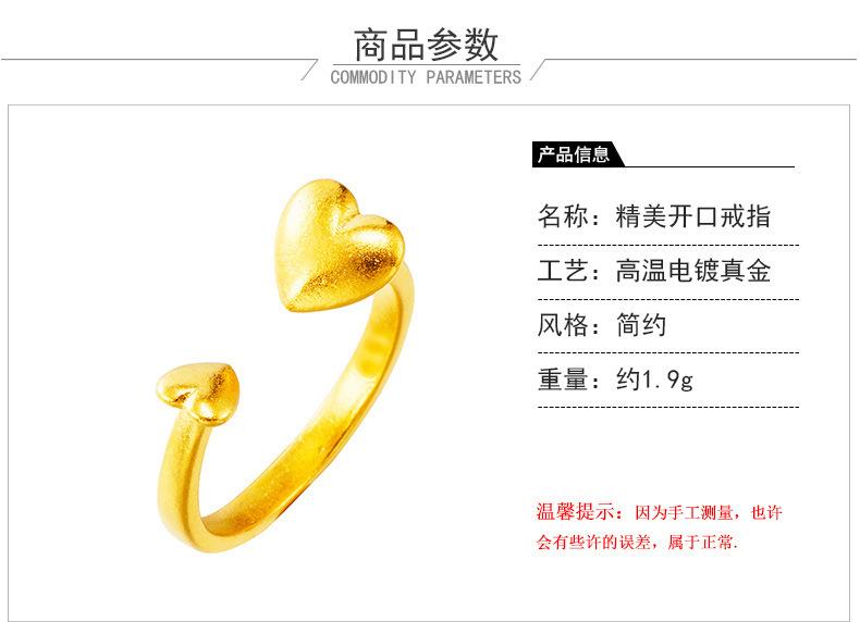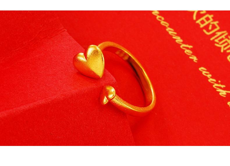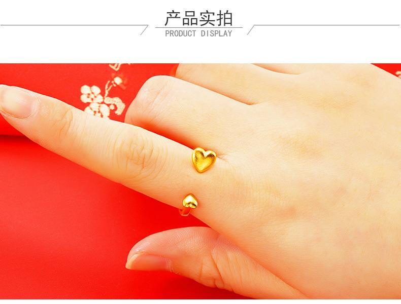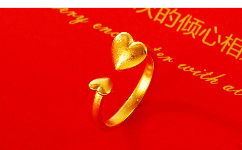 Anillo de mujer con doble apertura en oro de Vietnam y arena, chapado en cobre, imitación de oro de 24 quilates, con corazón de melocotón.