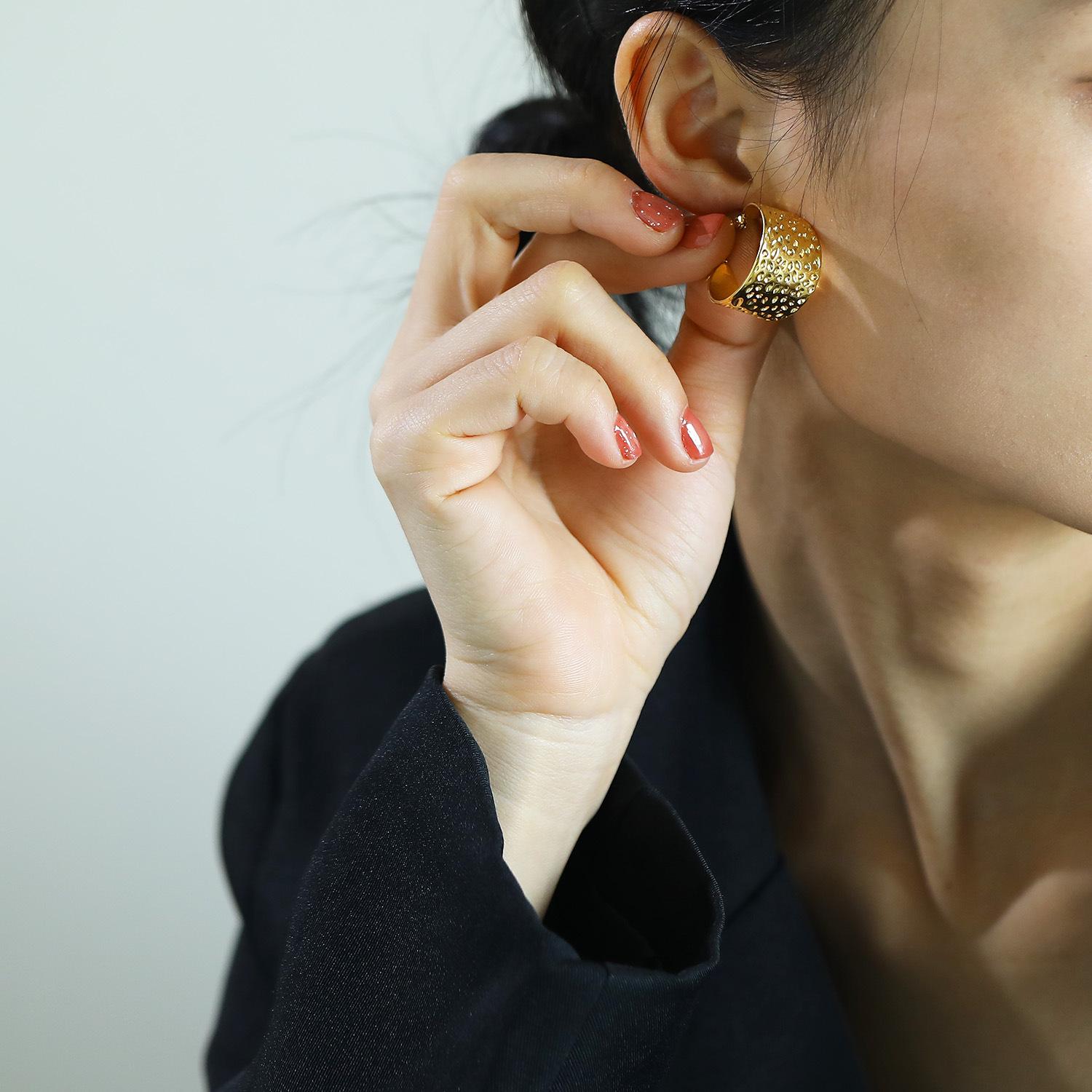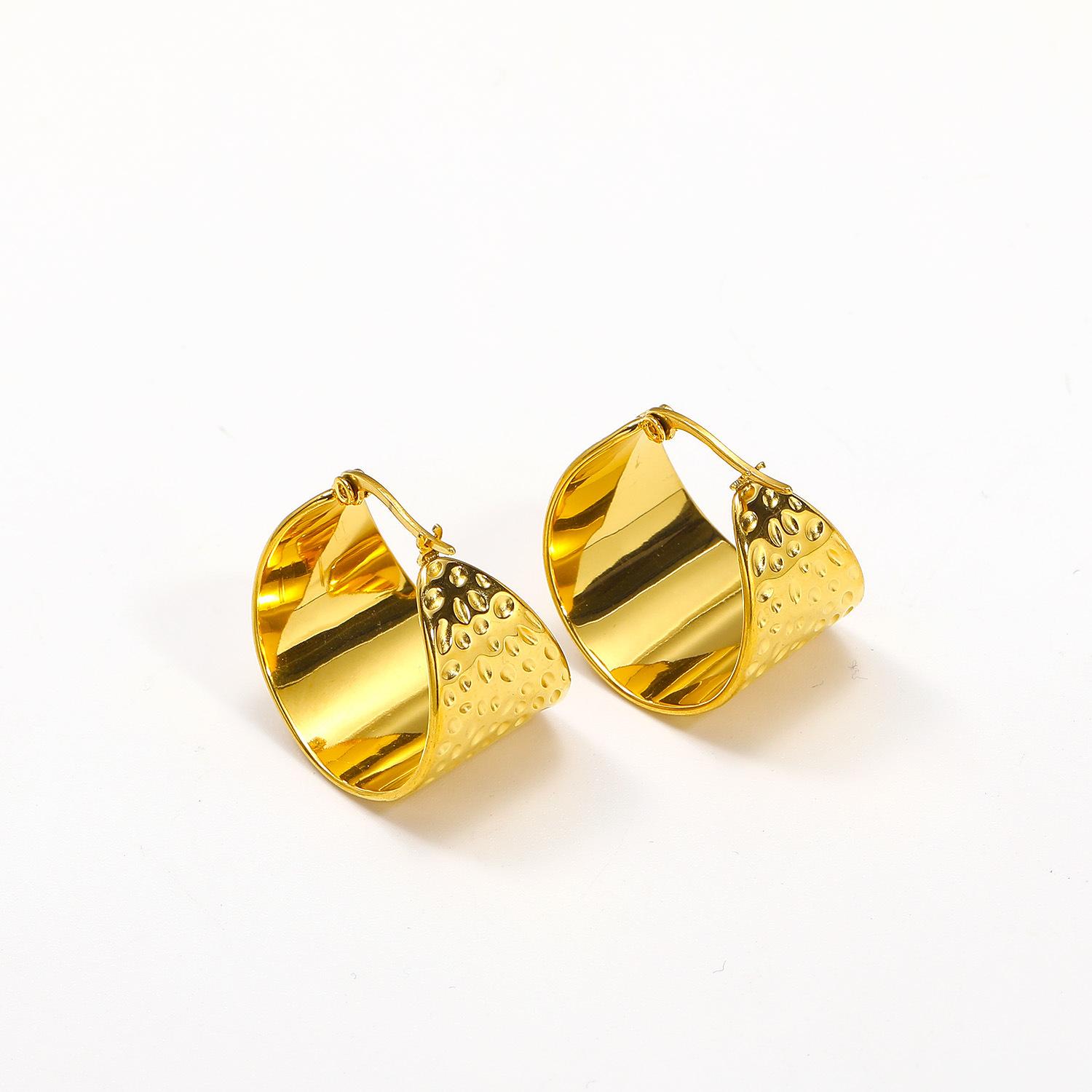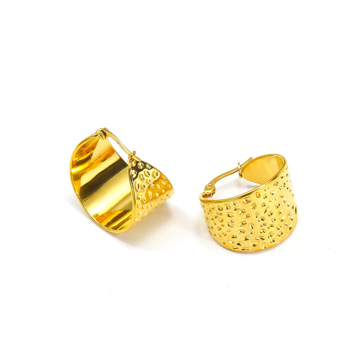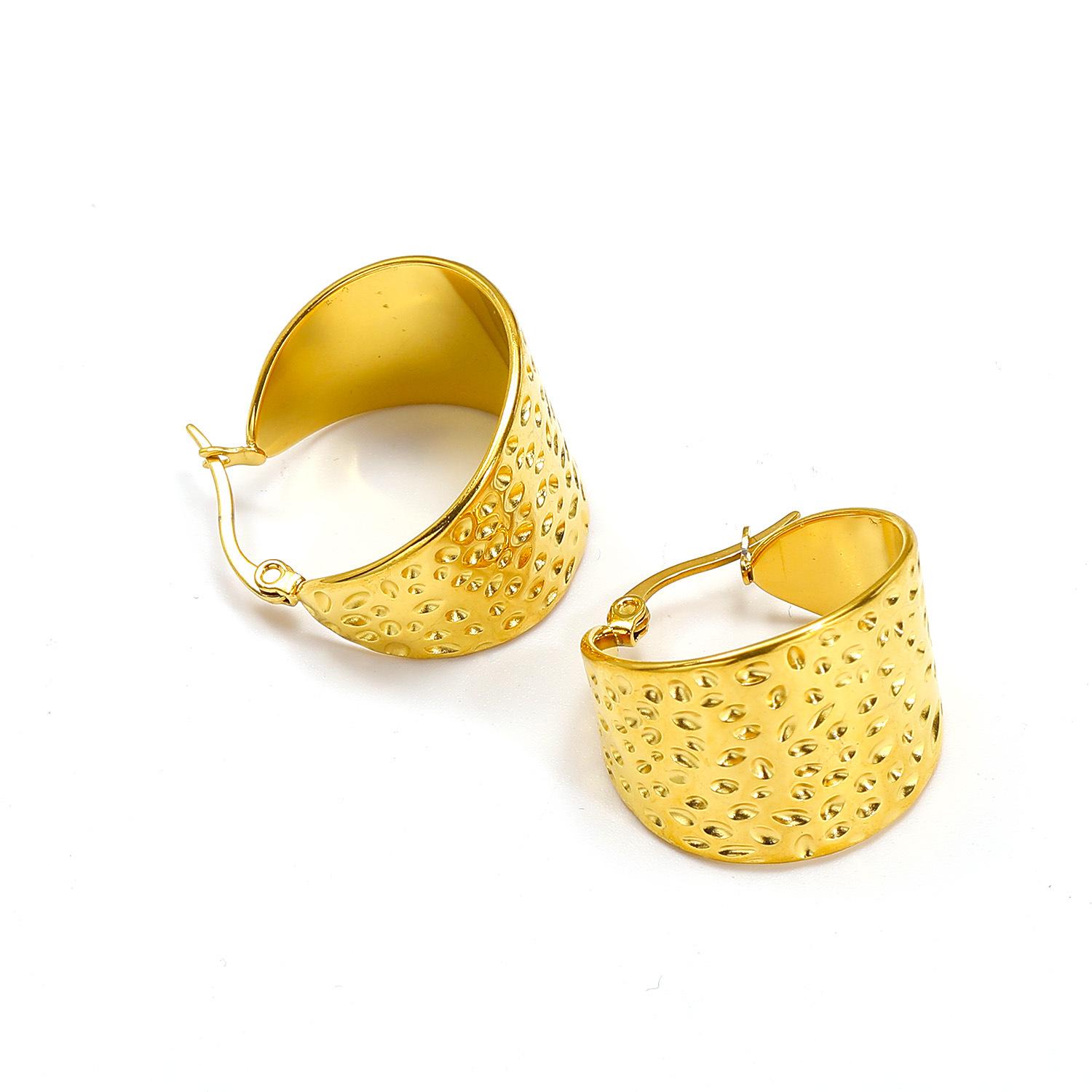 Pendientes de acero inoxidable con textura de superficie cóncava-convexa y cara ancha, estilo Ins transfronterizo europeo y americano, pendientes de moda para mujer que combinan con todo.