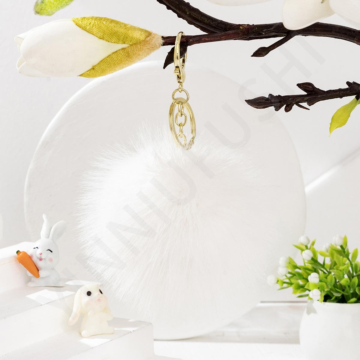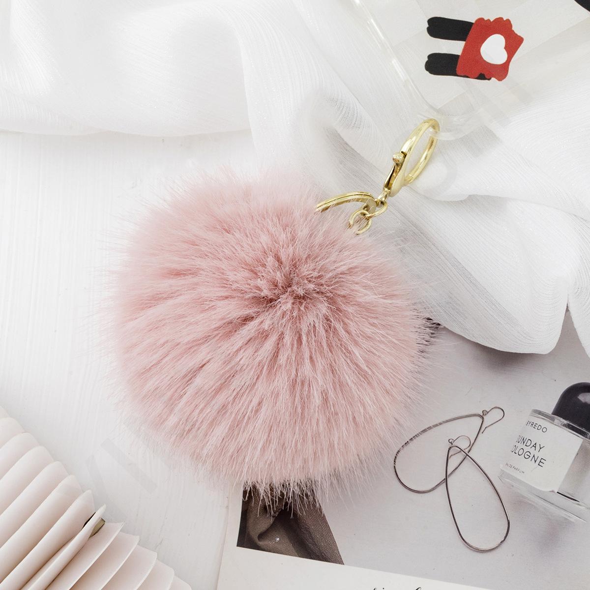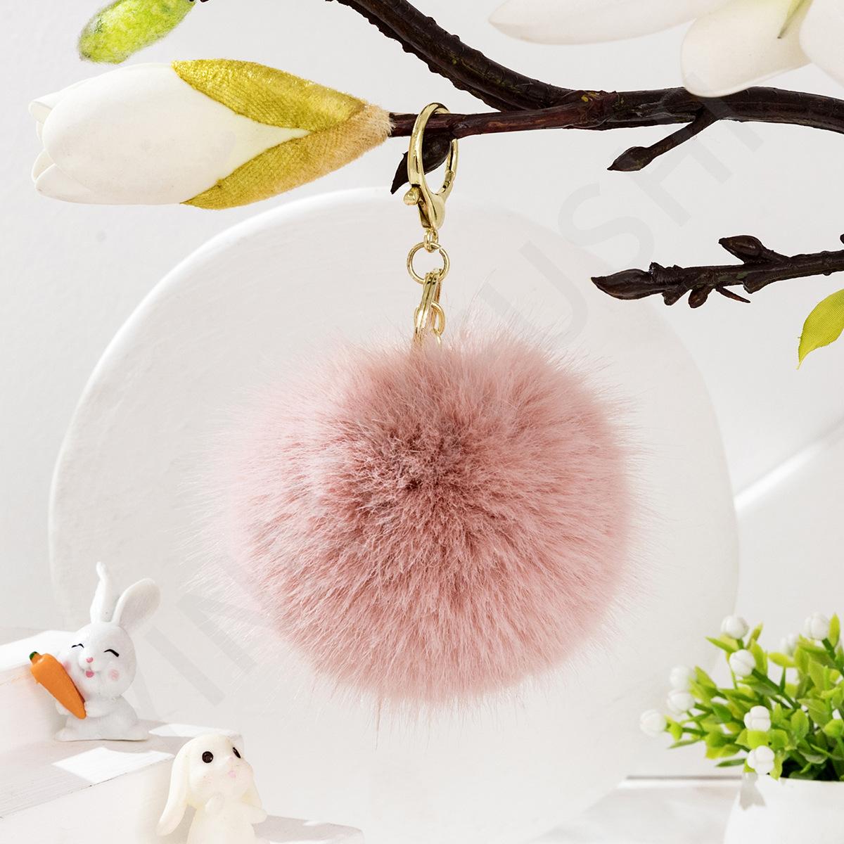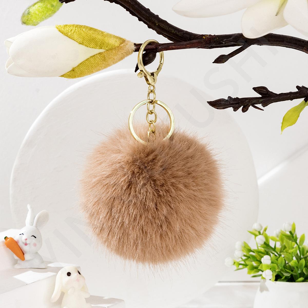 Nuevo llavero con forma de bola de pelo de conejo Rex de imitación, bonito colgante de bola de pelo artificial para llave de coche, disponible en stock.