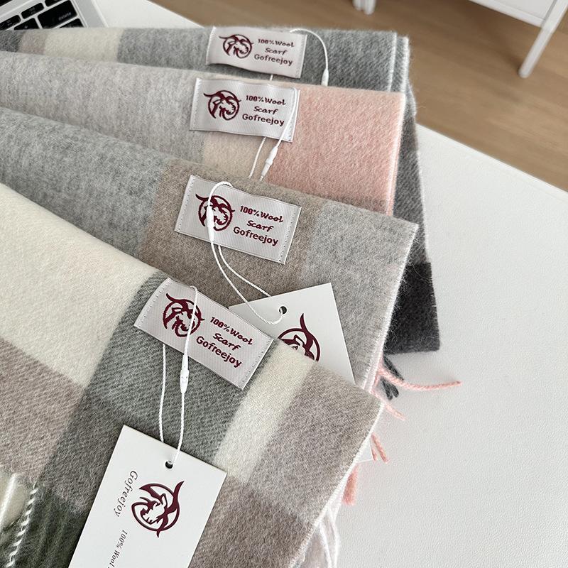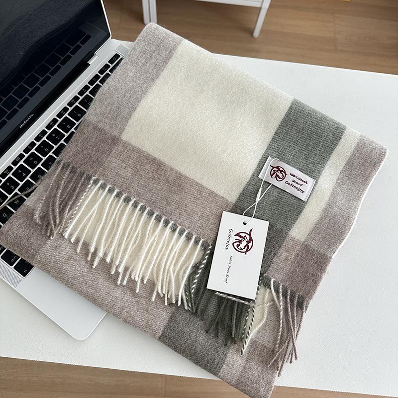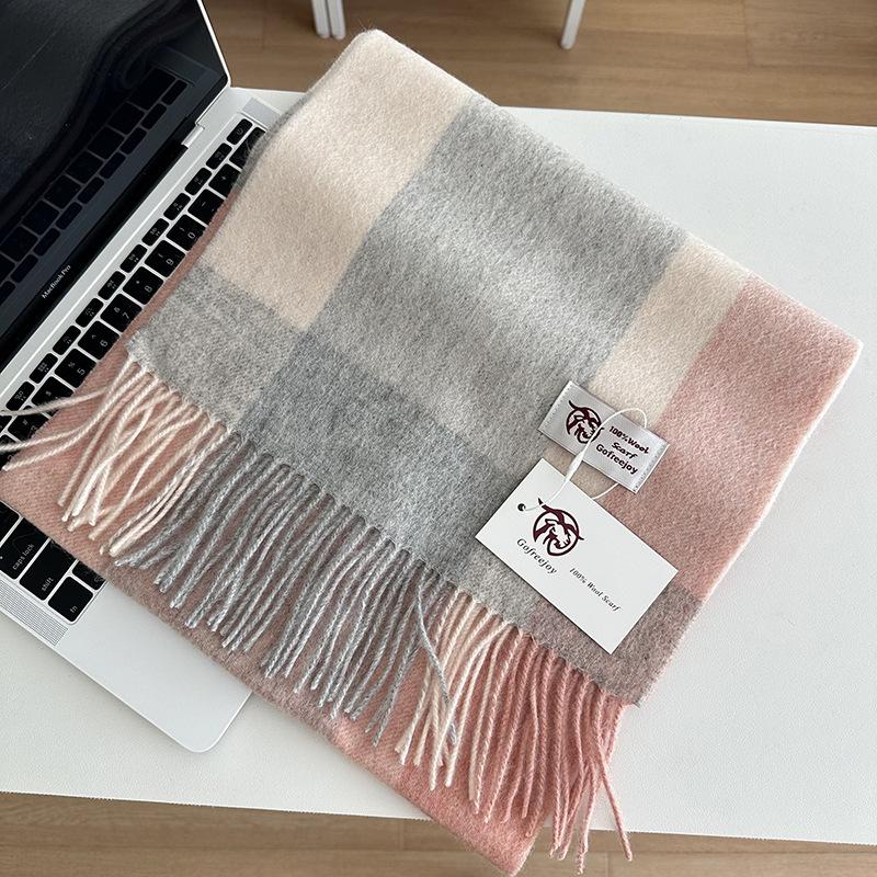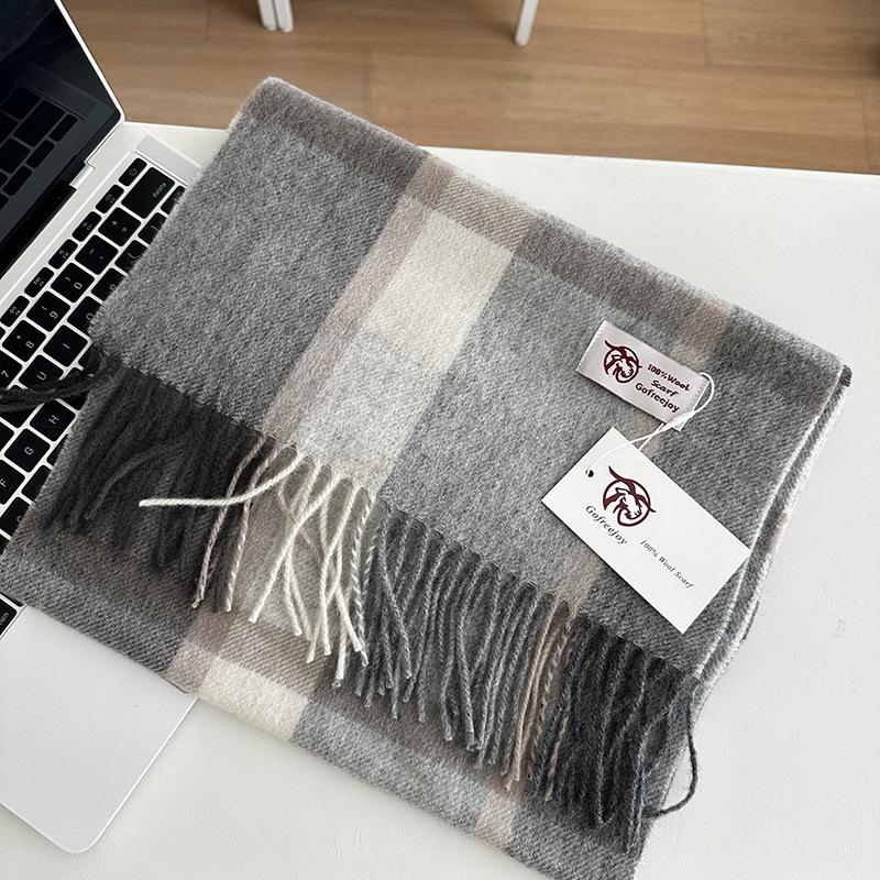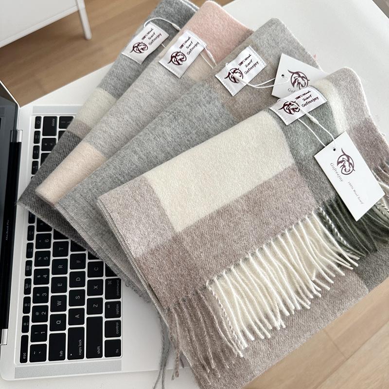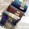 Bufanda grande de lana australiana a cuadros con borlas a juego para parejas, cálida y con contraste de color, chal de regalo de alta gama para hombres.