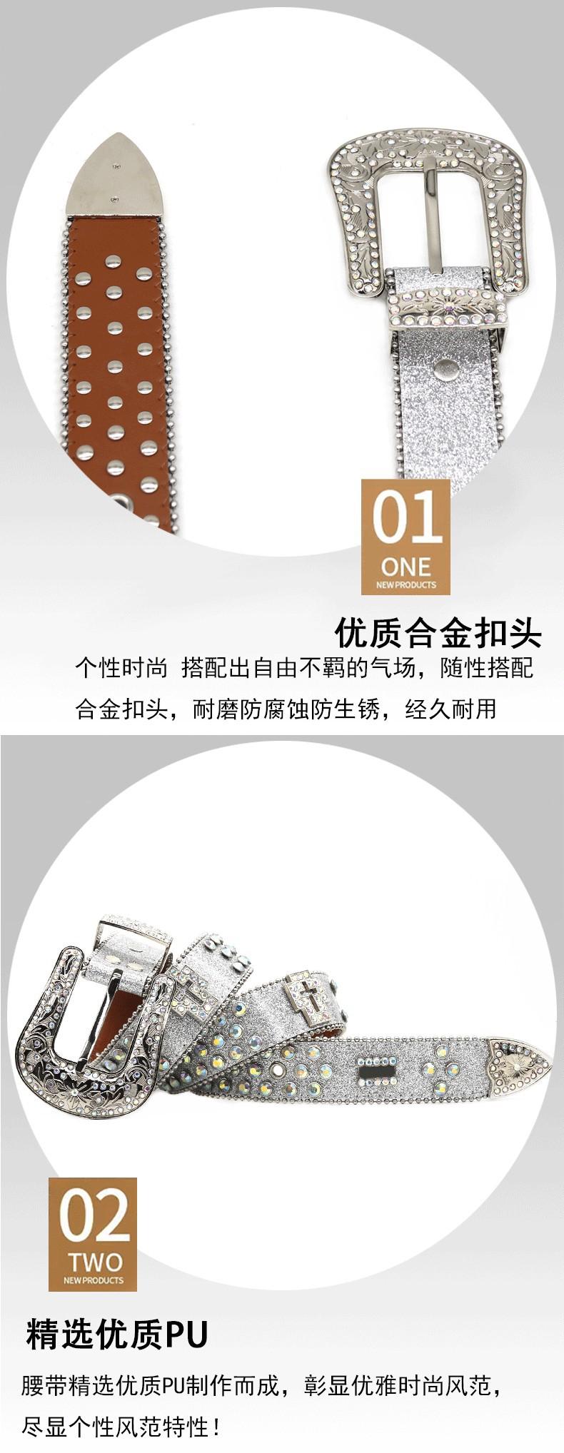 Cinturón de pedrería transfronterizo para hombre con incrustaciones de cinturón de diamante completo hip-hop punk personalidad viento moderno cinturón ancho mujer ventas directas de fábrica