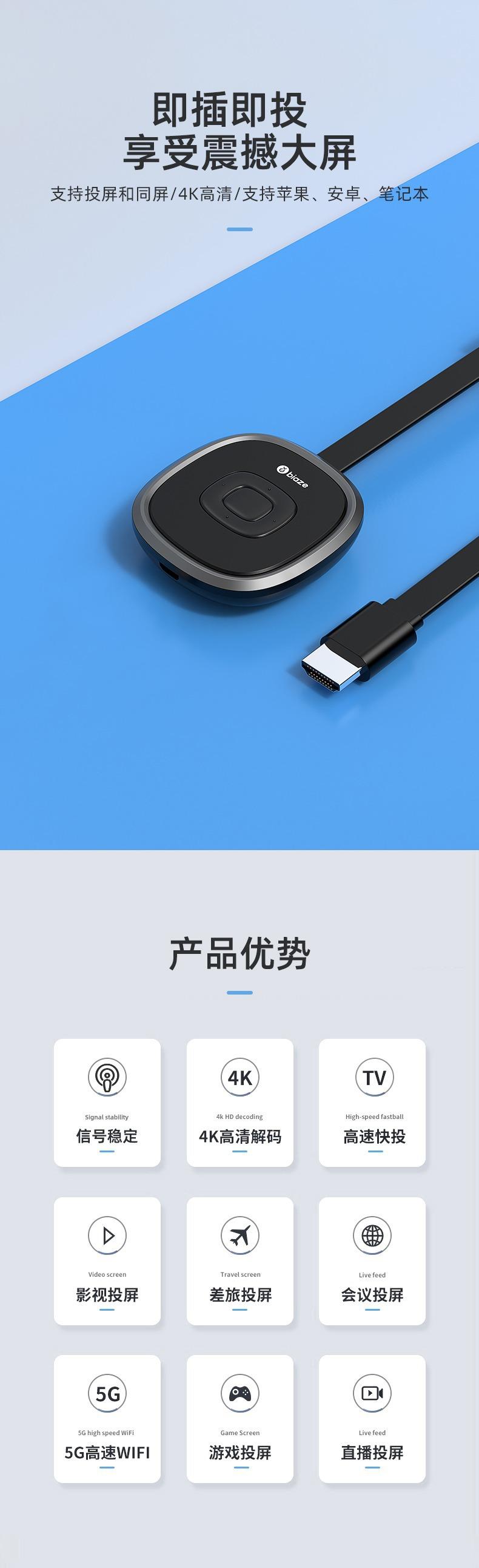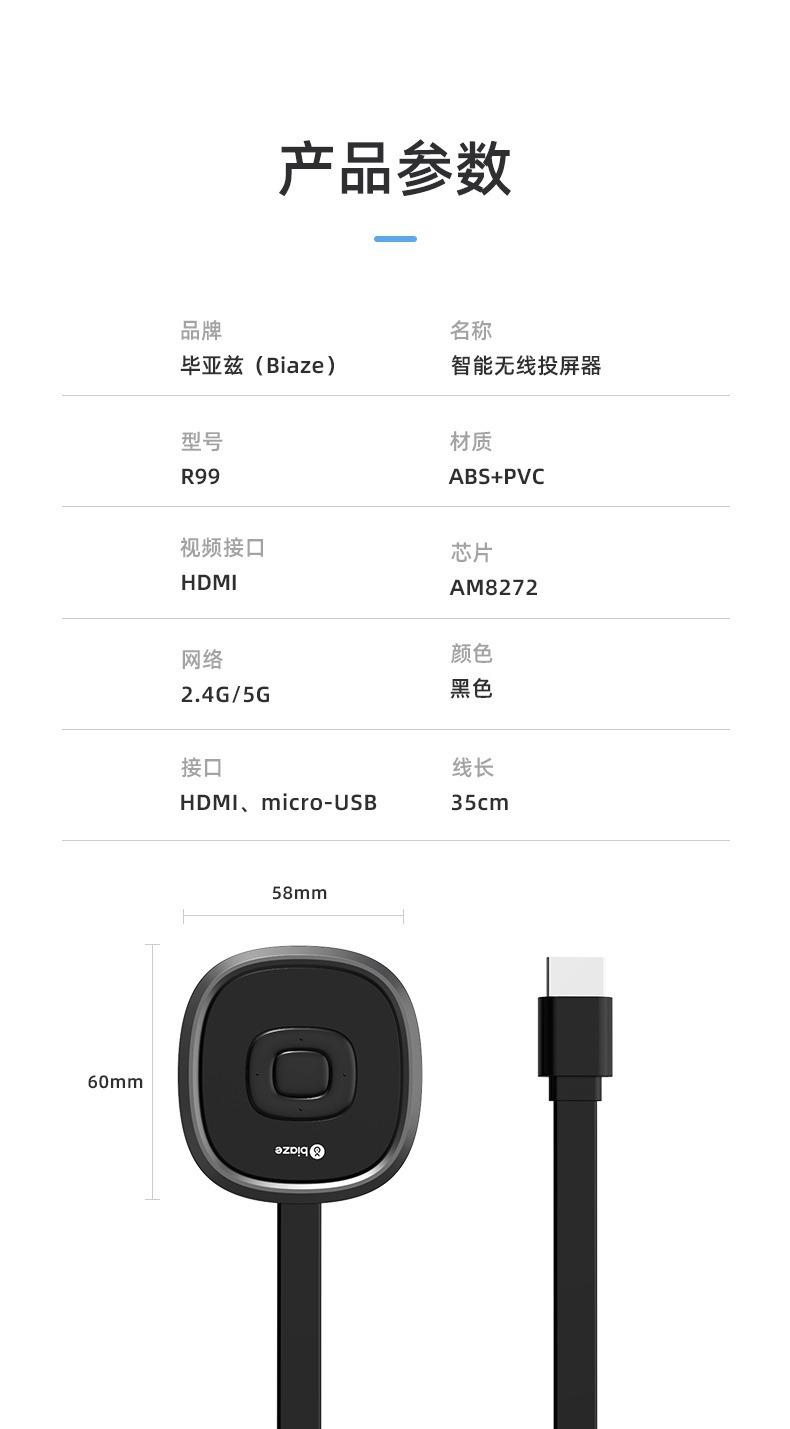 Proyector de Pantalla Inalámbrico Biaz TV Convertidor de Pantalla de Inicio Proyector Universal para Coche 4Khdmi5G