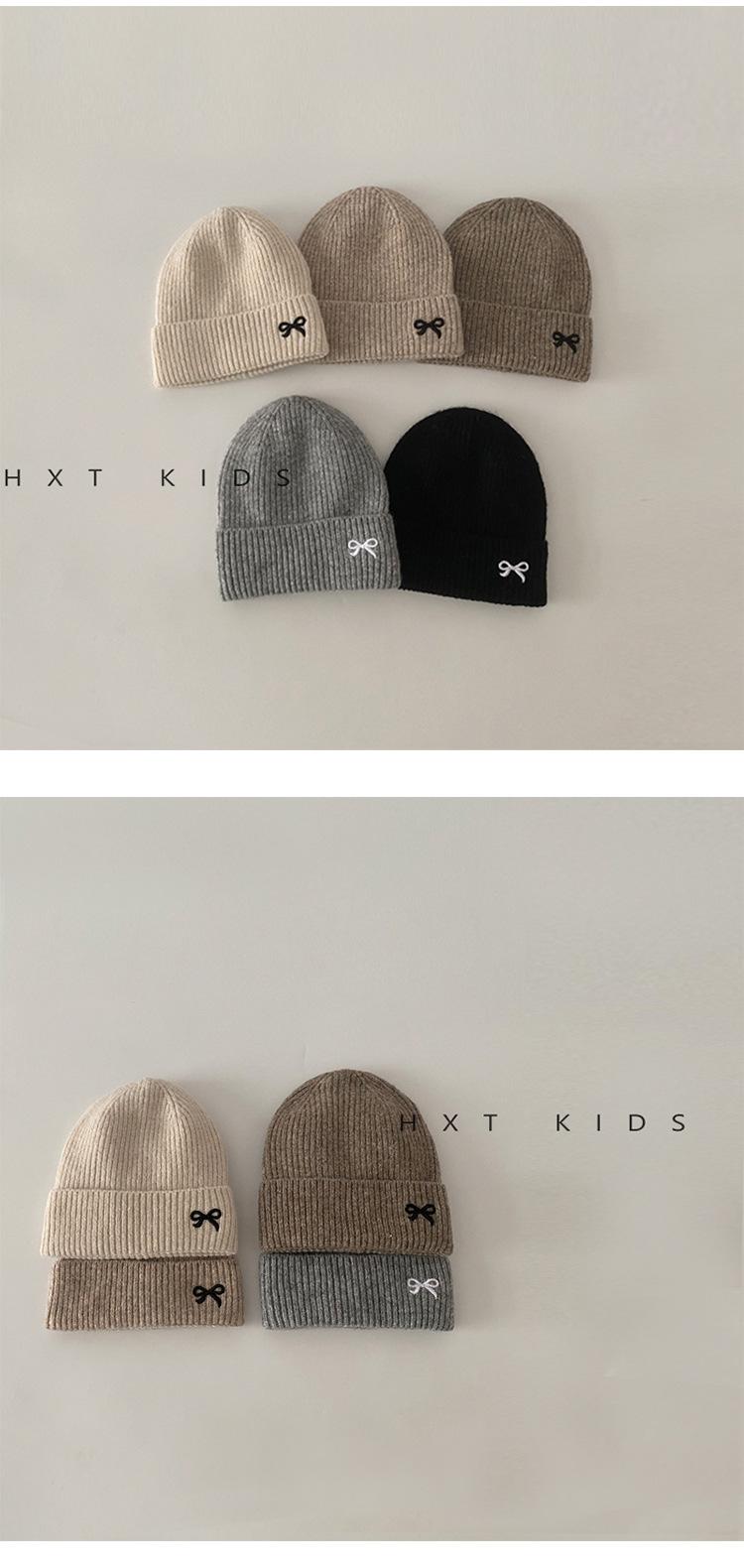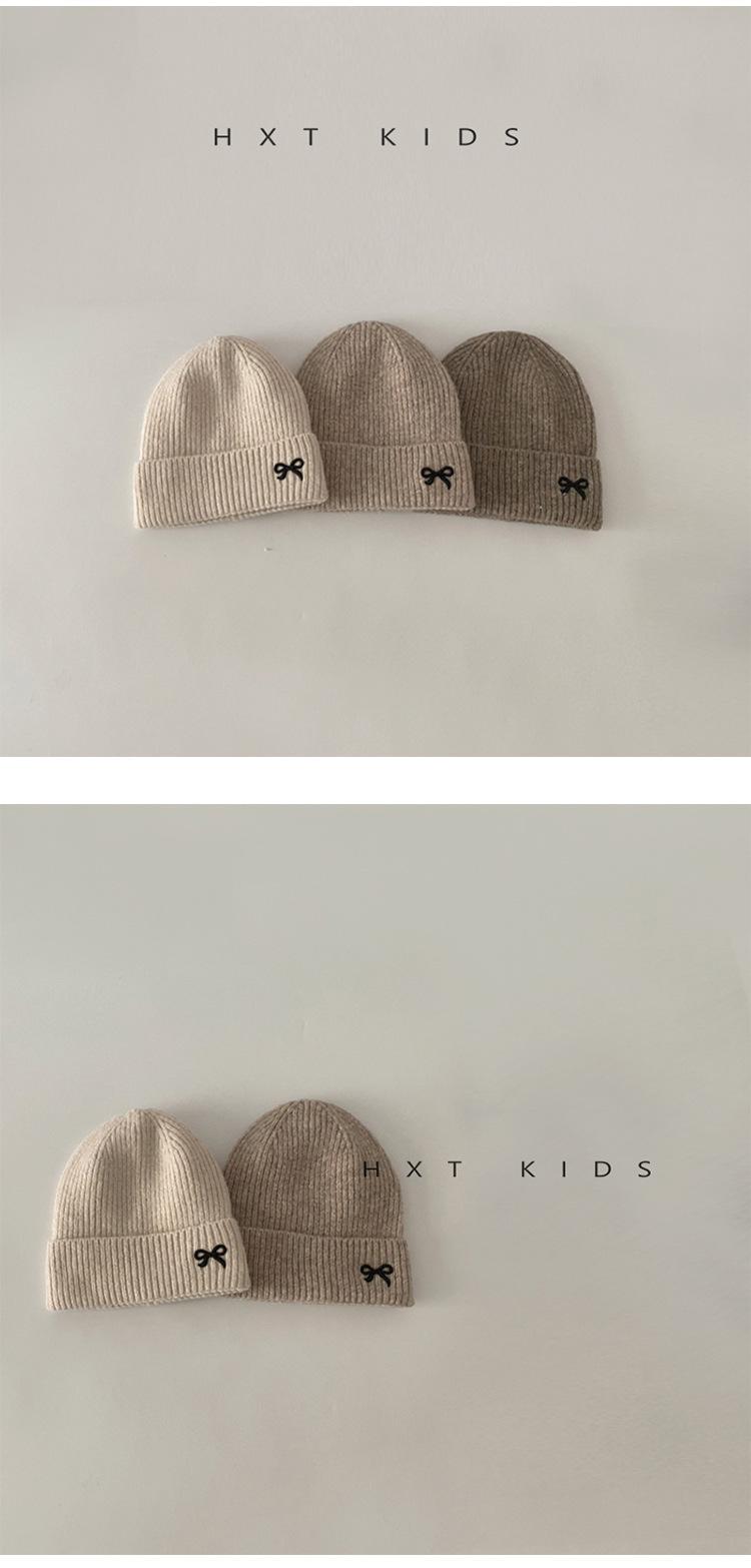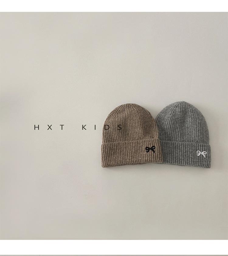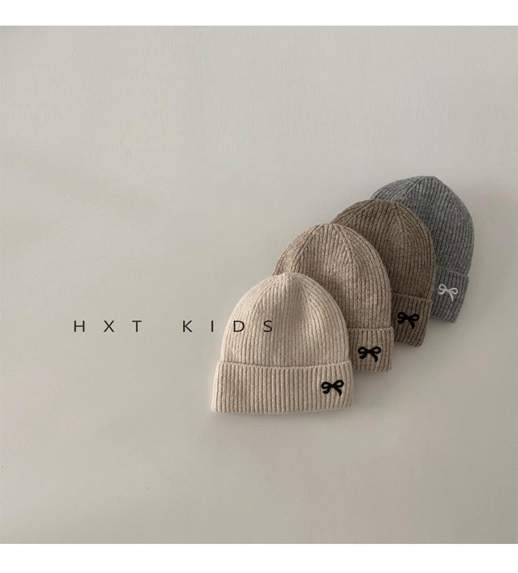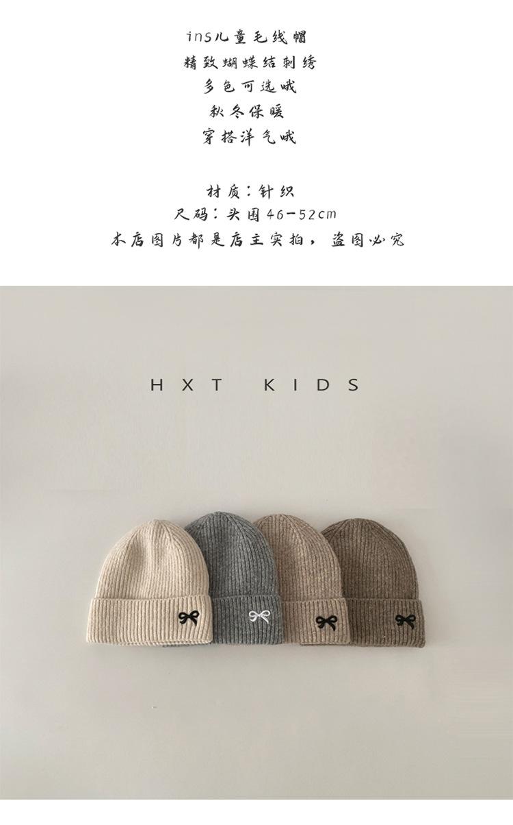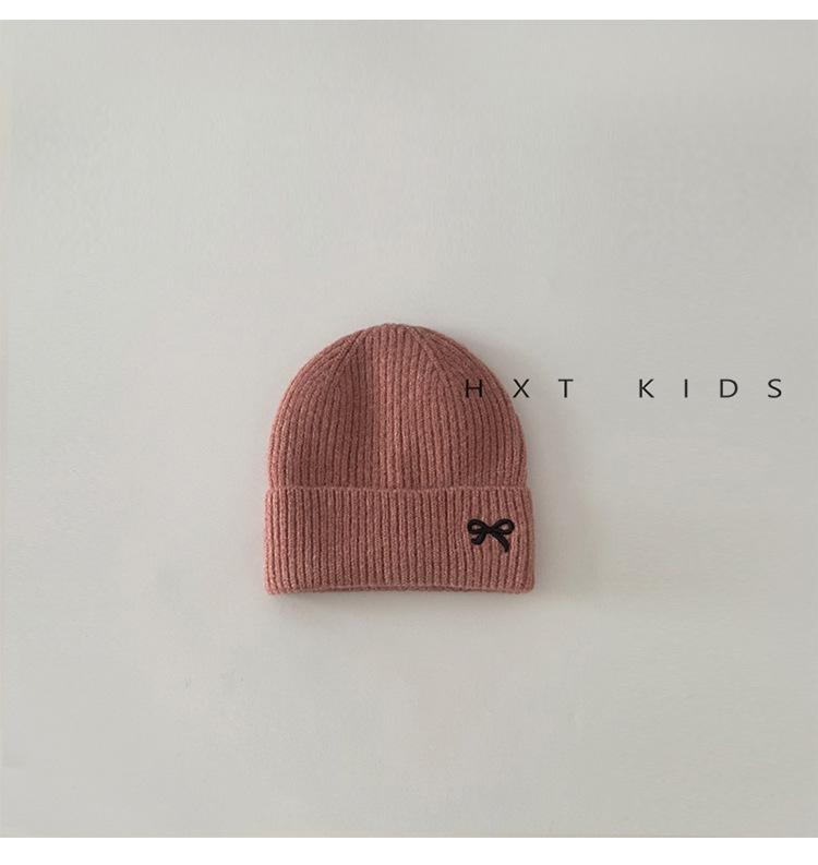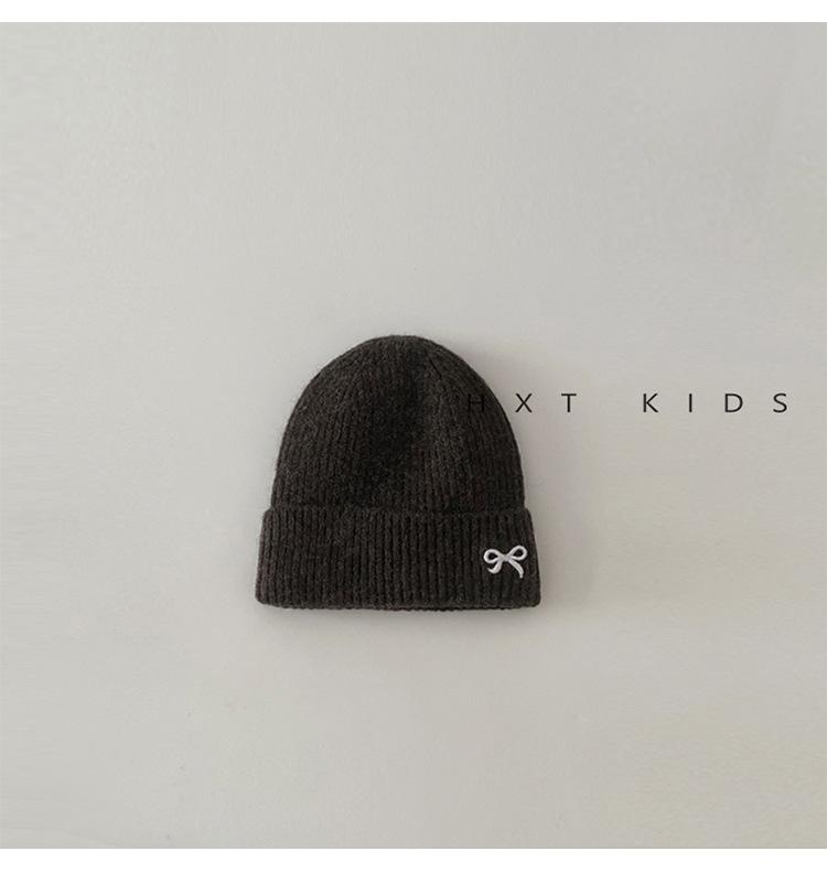 Gorro de Lana para Niños Otoño e Invierno Estilo Extranjero Lazo Etiqueta Pequeña Bordado Pulóver Gorro de Punto Moda Infantil Ropa de Bebé Gorro