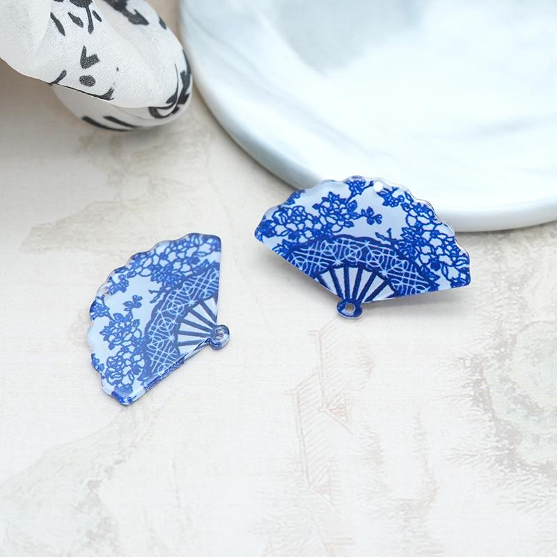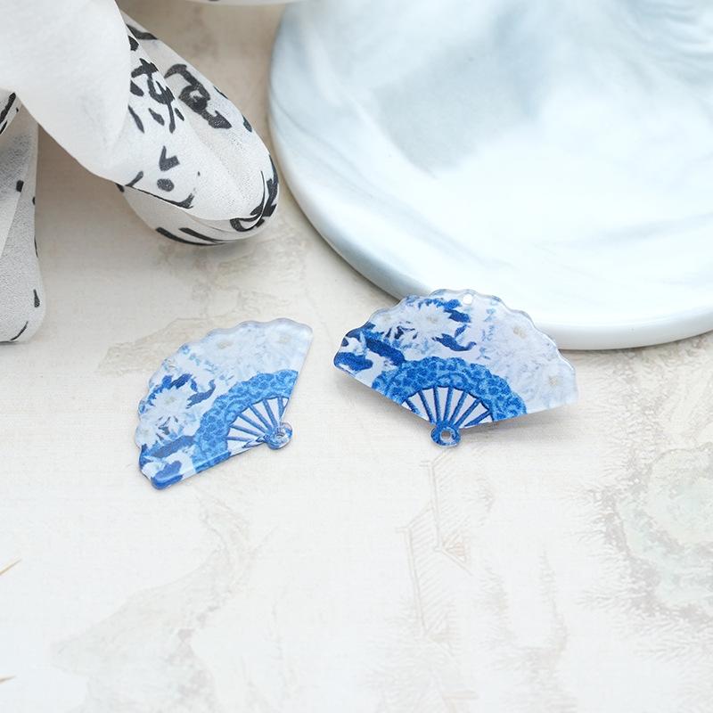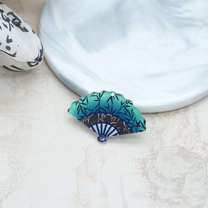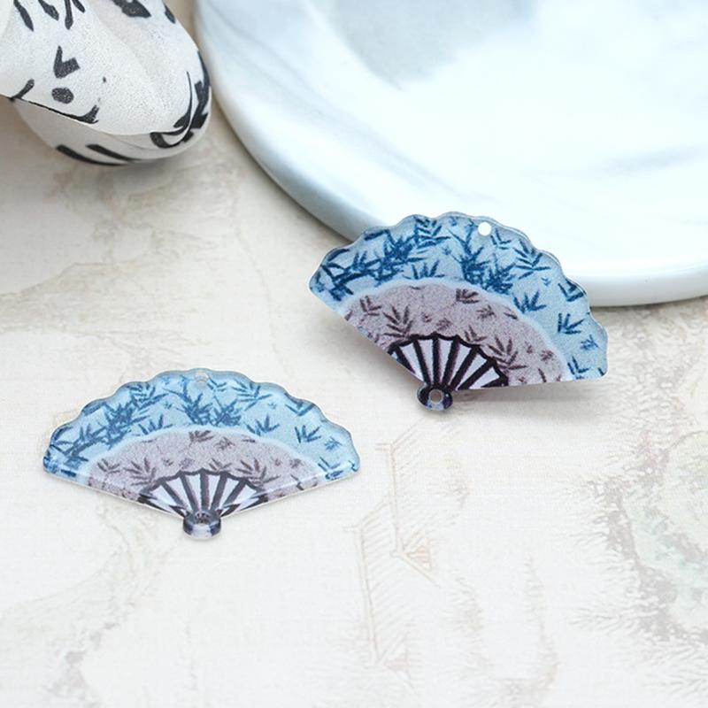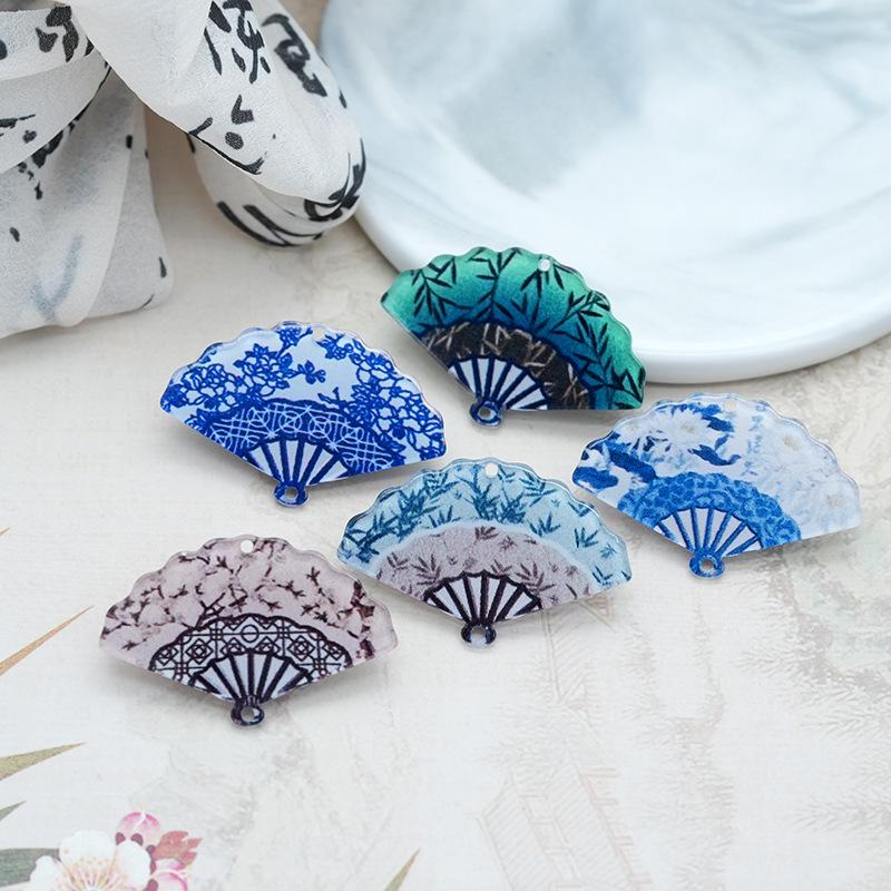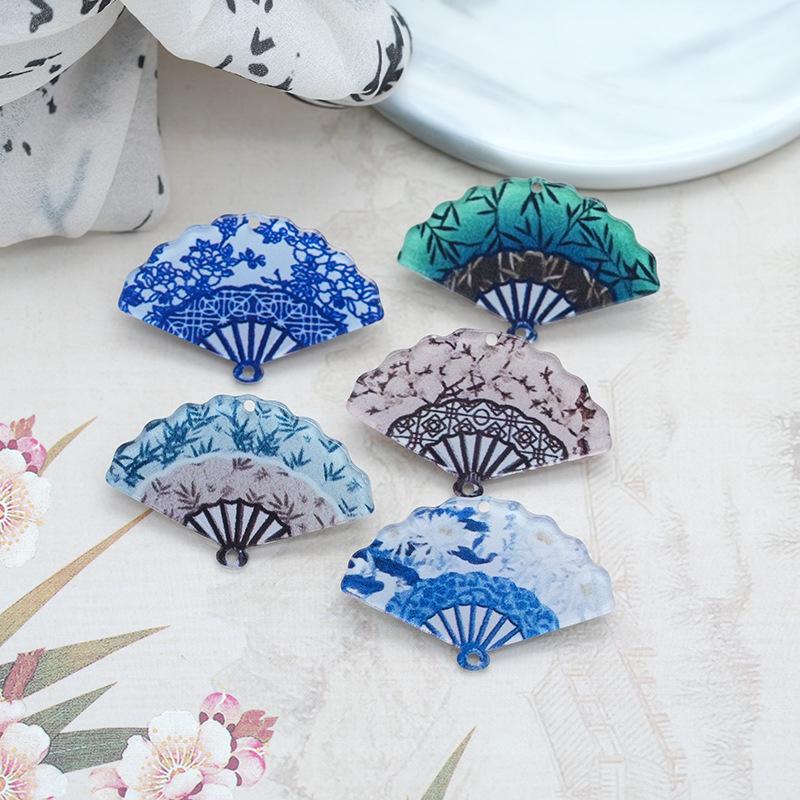 Compra Ventilador de techo de doble agujero con impresión a doble cara, estilo chino retro, accesorios de bricolaje, pulsera colgante de abanico hecha a mano de acrílico, novedad de verano al por mayor en Joom.pro