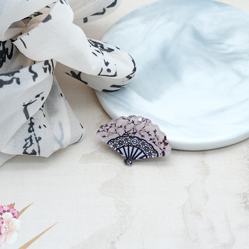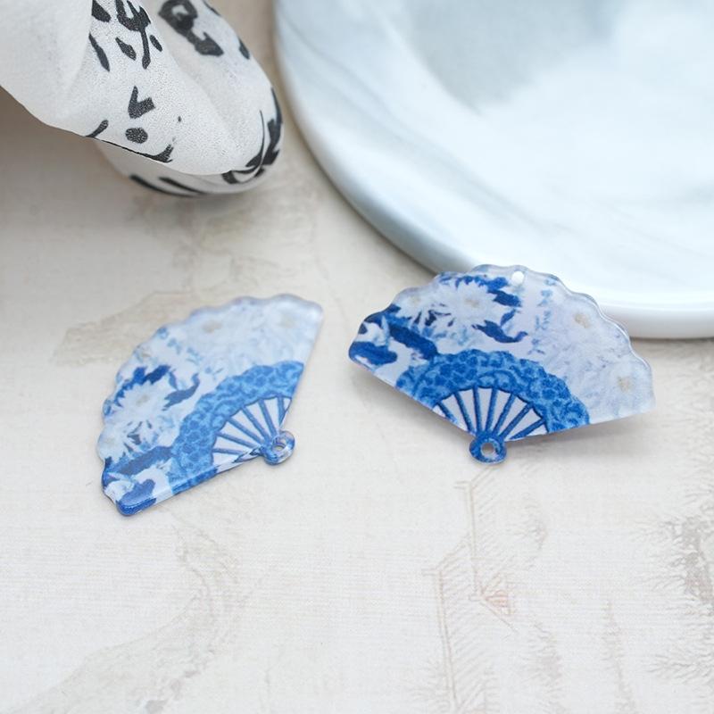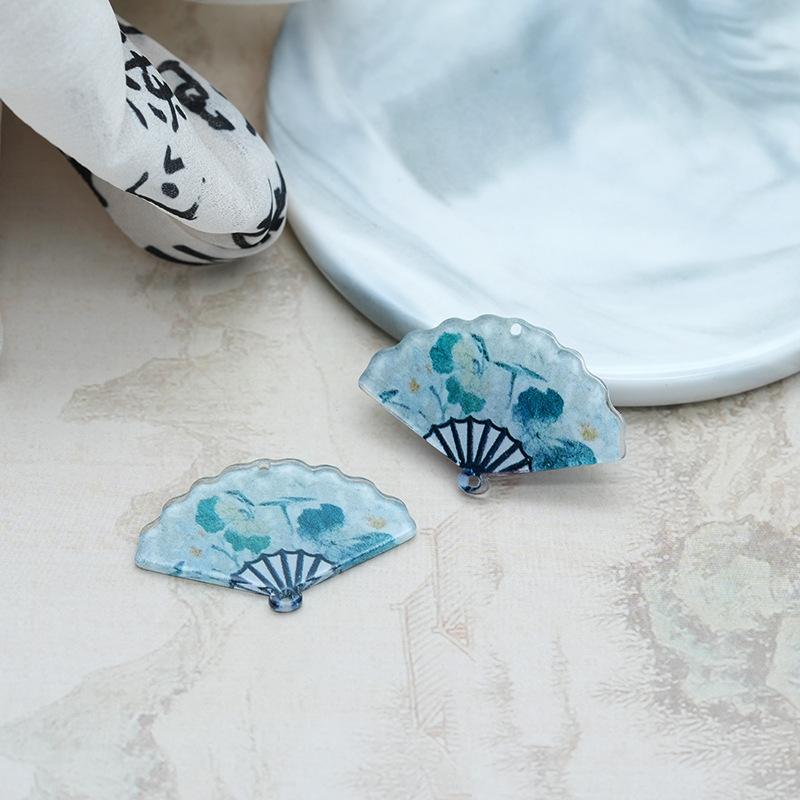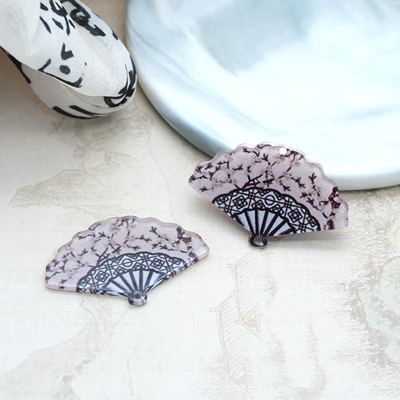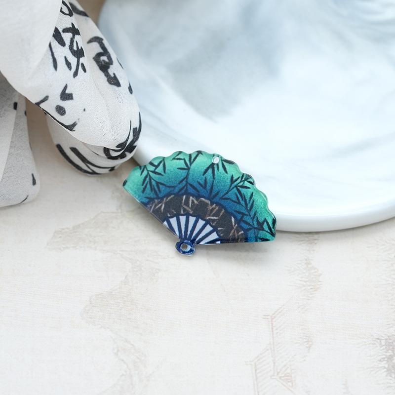Ventilador de techo de doble agujero con impresión a doble cara, estilo chino retro, accesorios de bricolaje, pulsera colgante de abanico hecha a mano de acrílico, novedad de verano