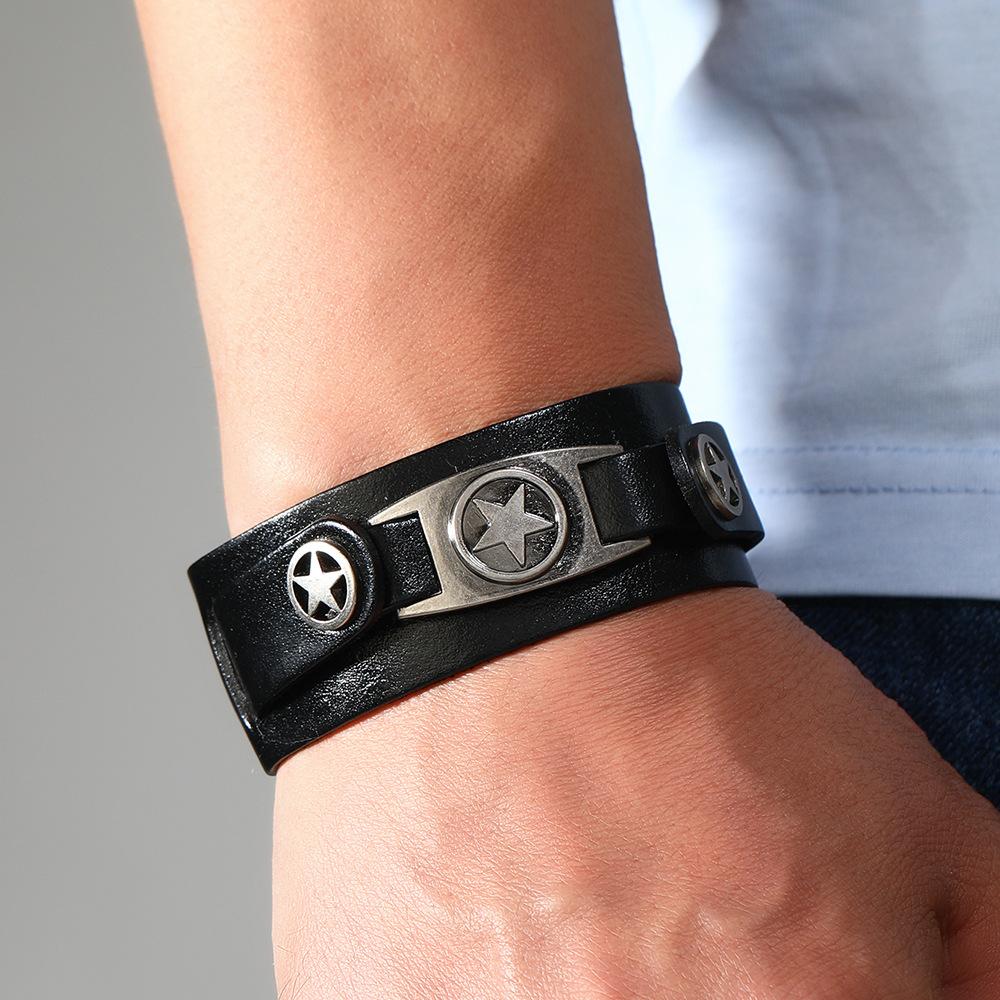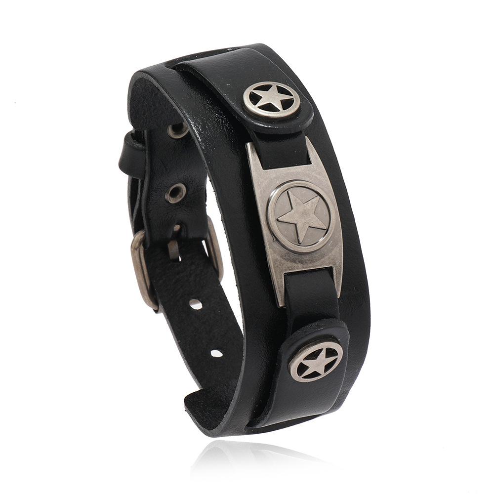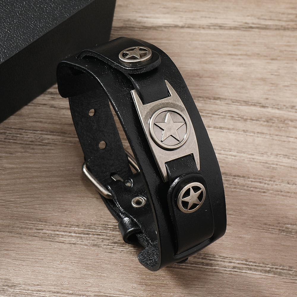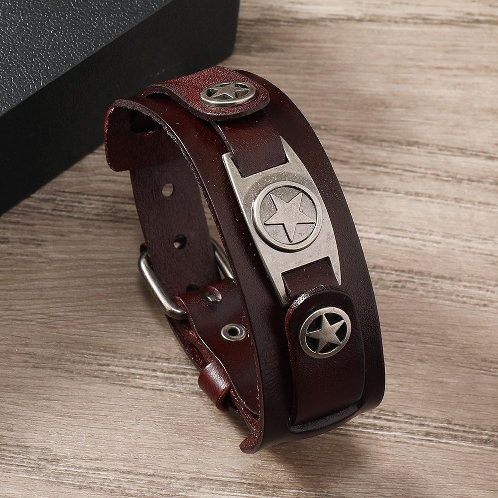 Nueva pulsera de cuero con accesorios de estrella de aleación vintage punk para hombre, venta directa de fábrica de joyería transfronteriza europea y americana