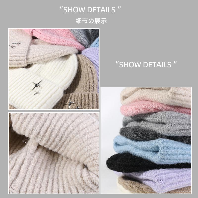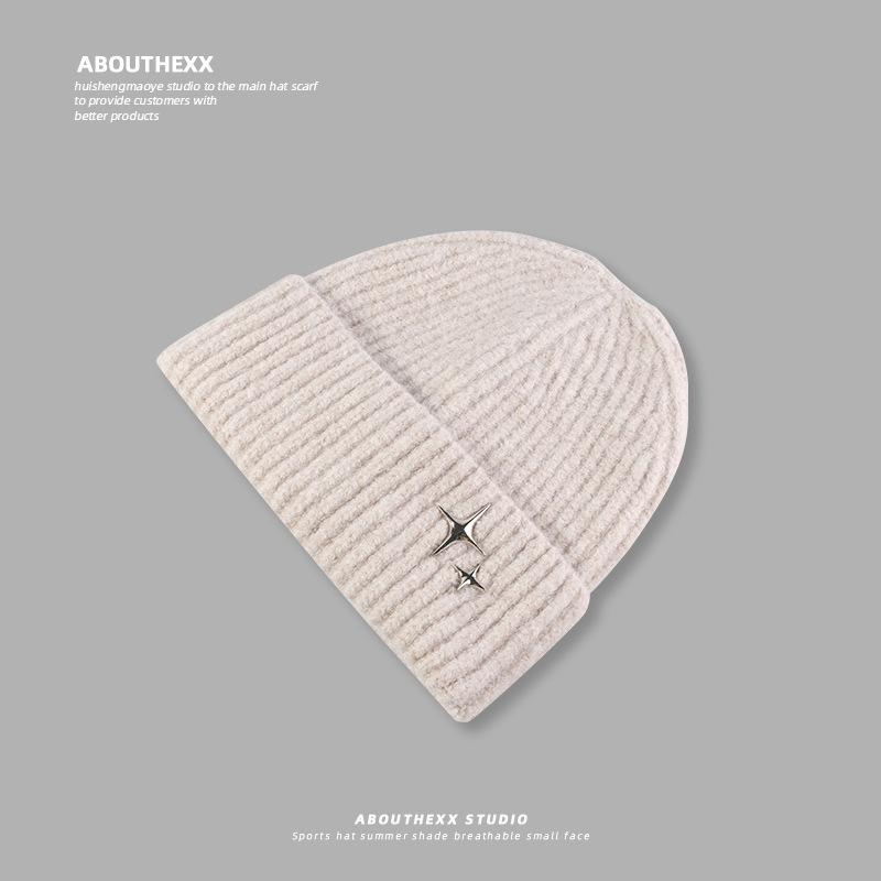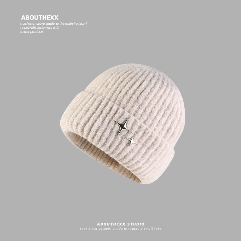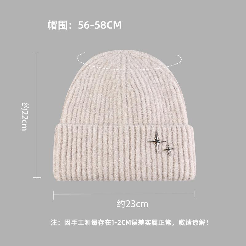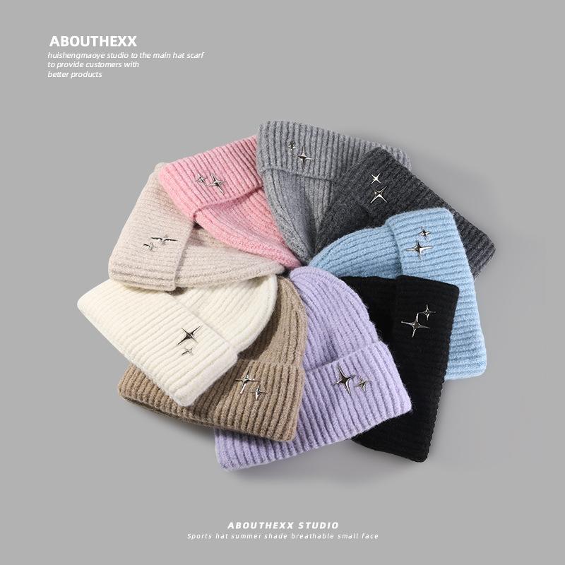 Gorro de lana para mujer, para otoño e invierno, grande, combinable, cálido, con protección para los oídos, para el frío facial, con estrellas pequeñas decorativas, de punto para hombre.